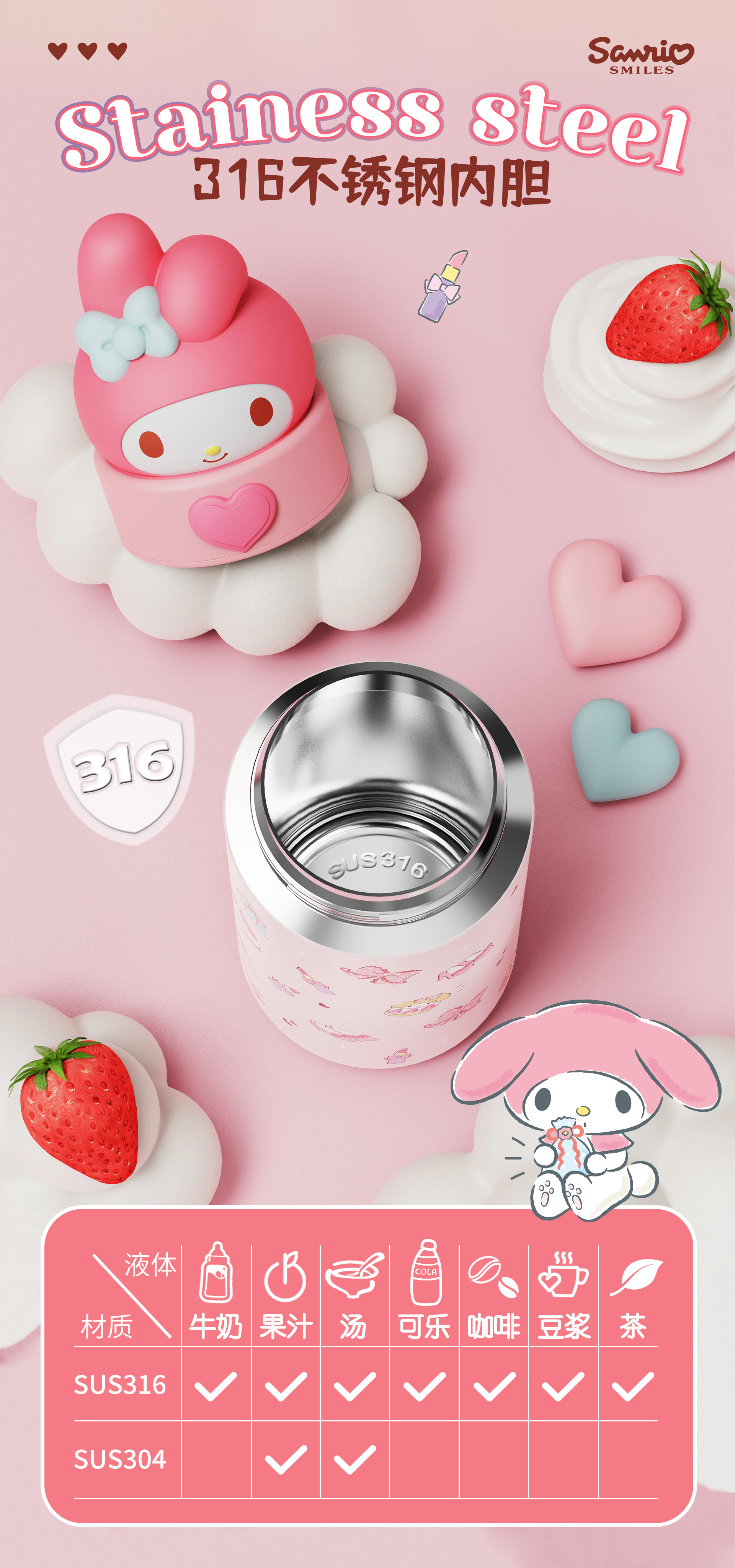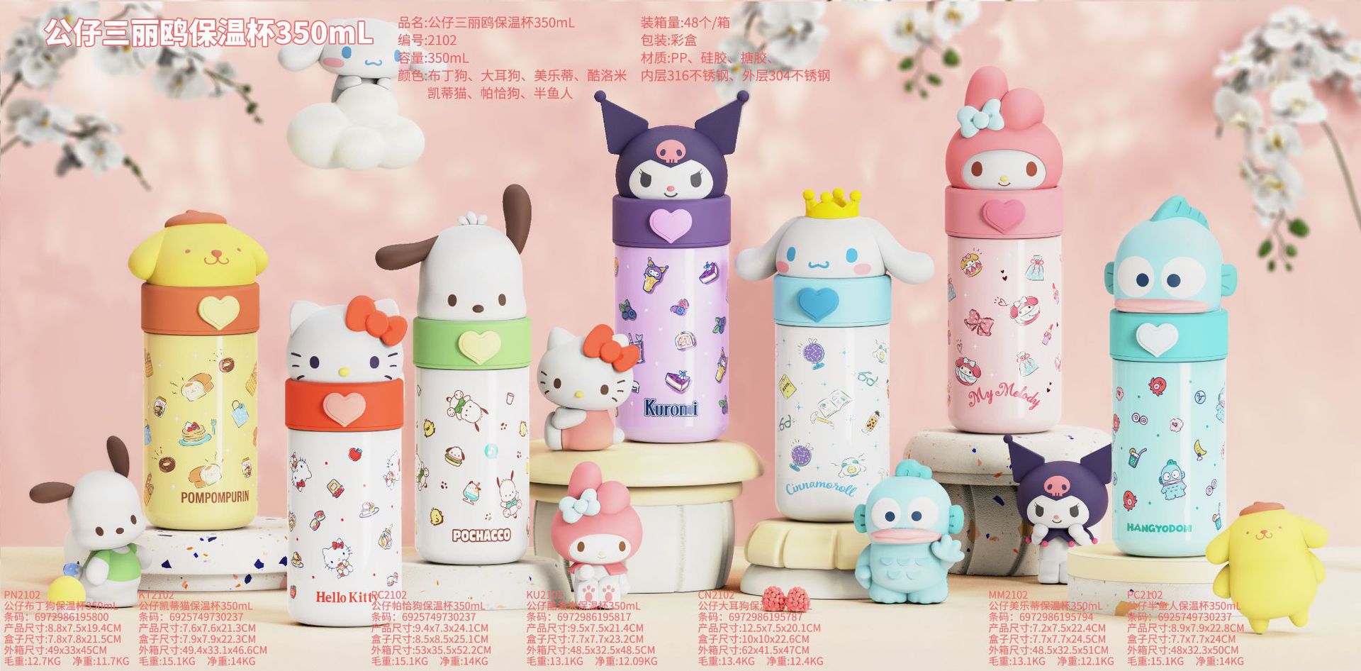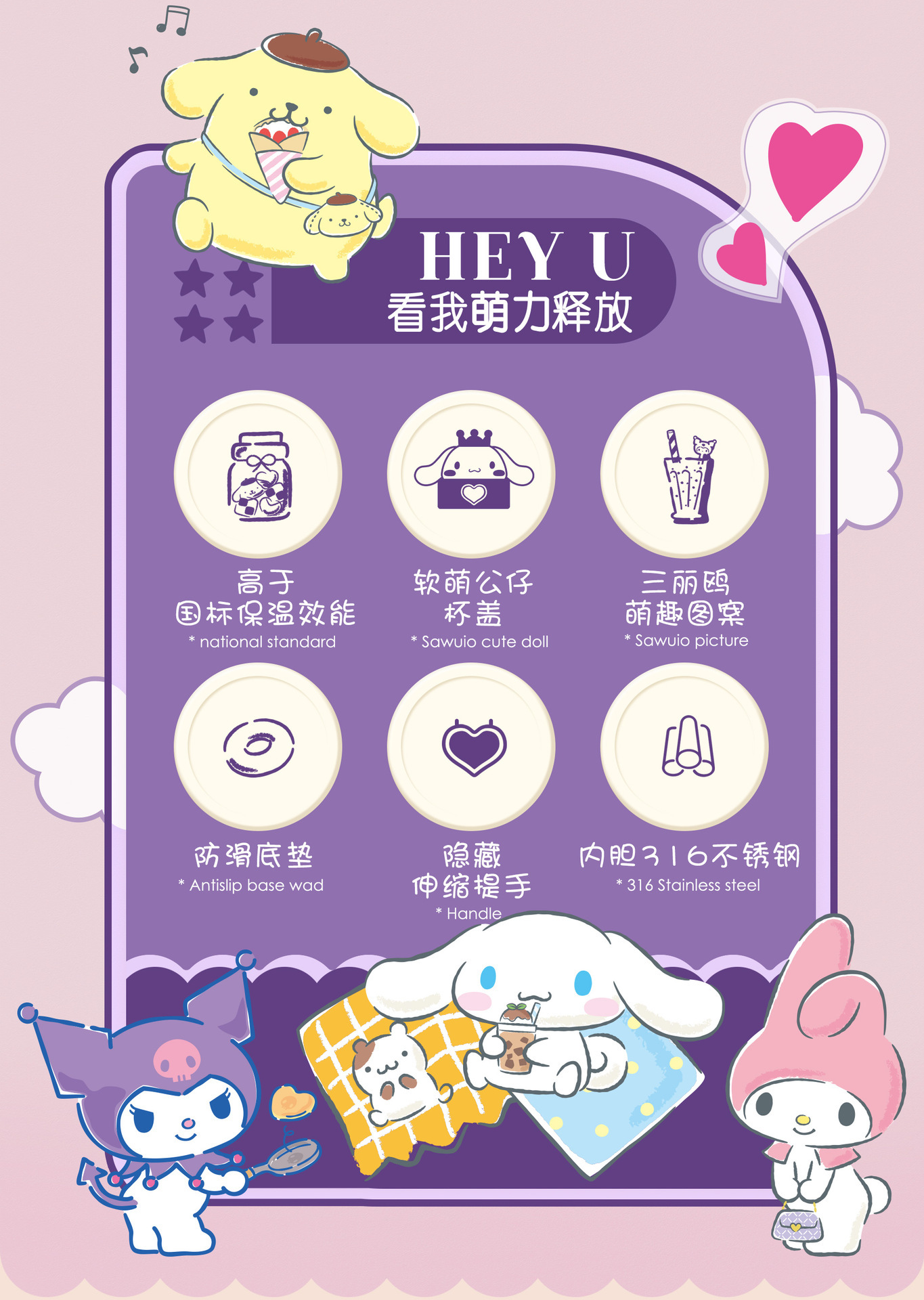 正版三丽鸥保温杯便携口袋保温杯学生上学水杯车载办公室杯子卡通