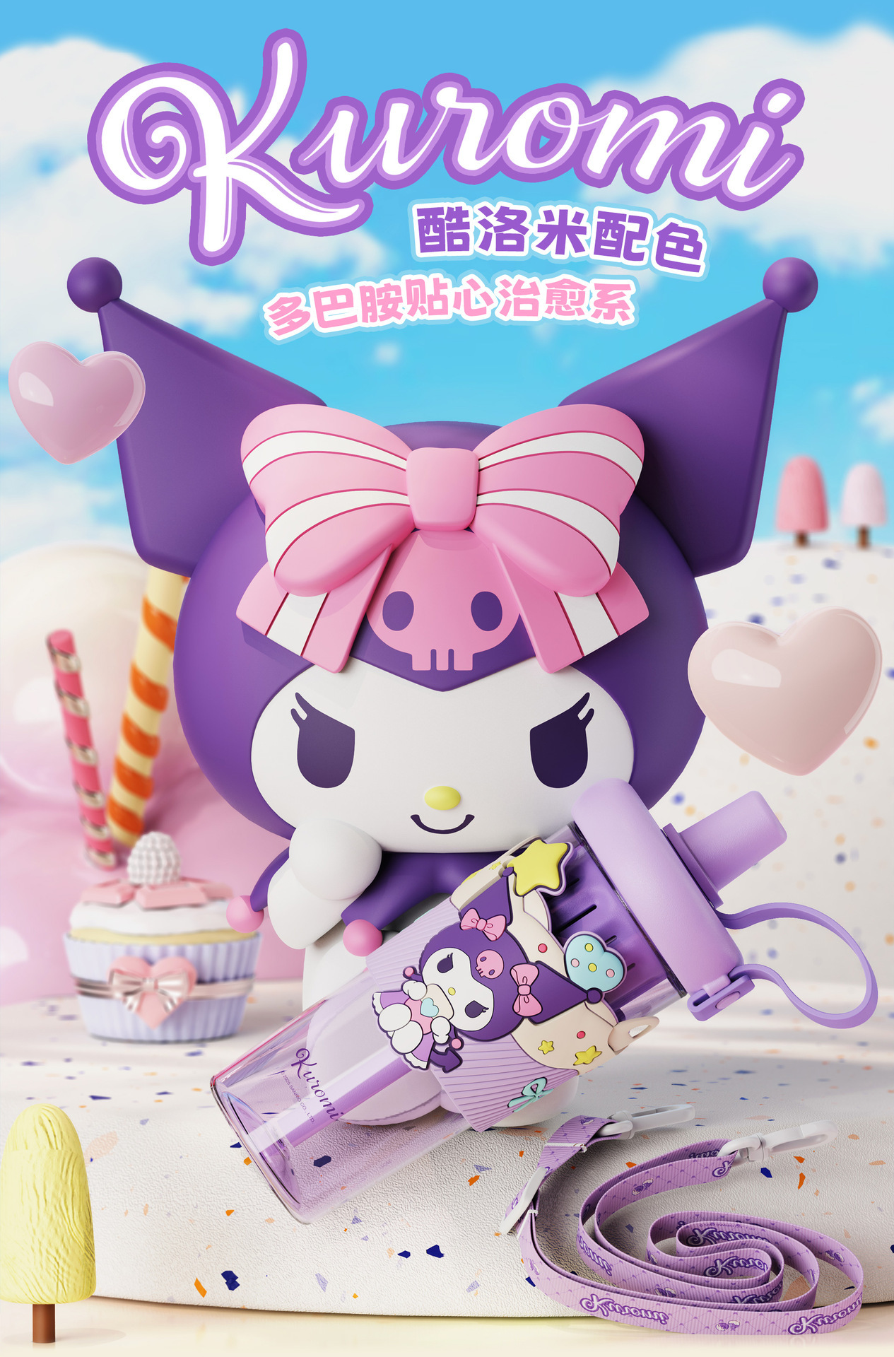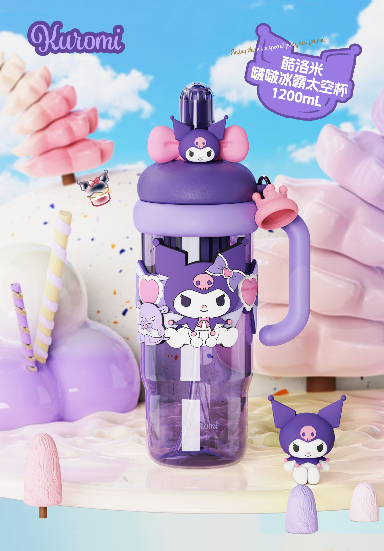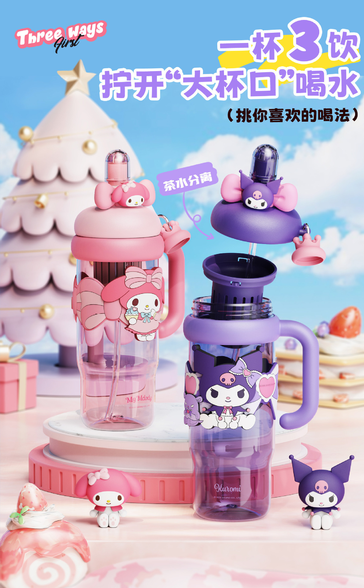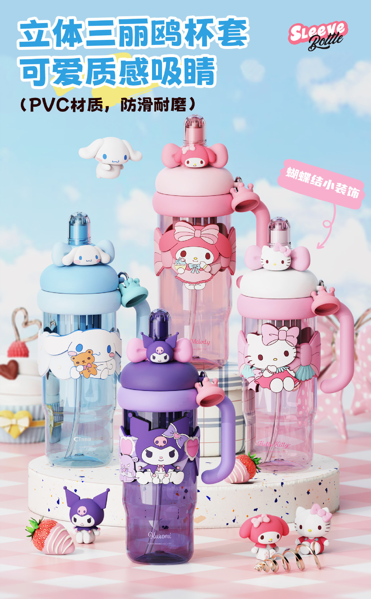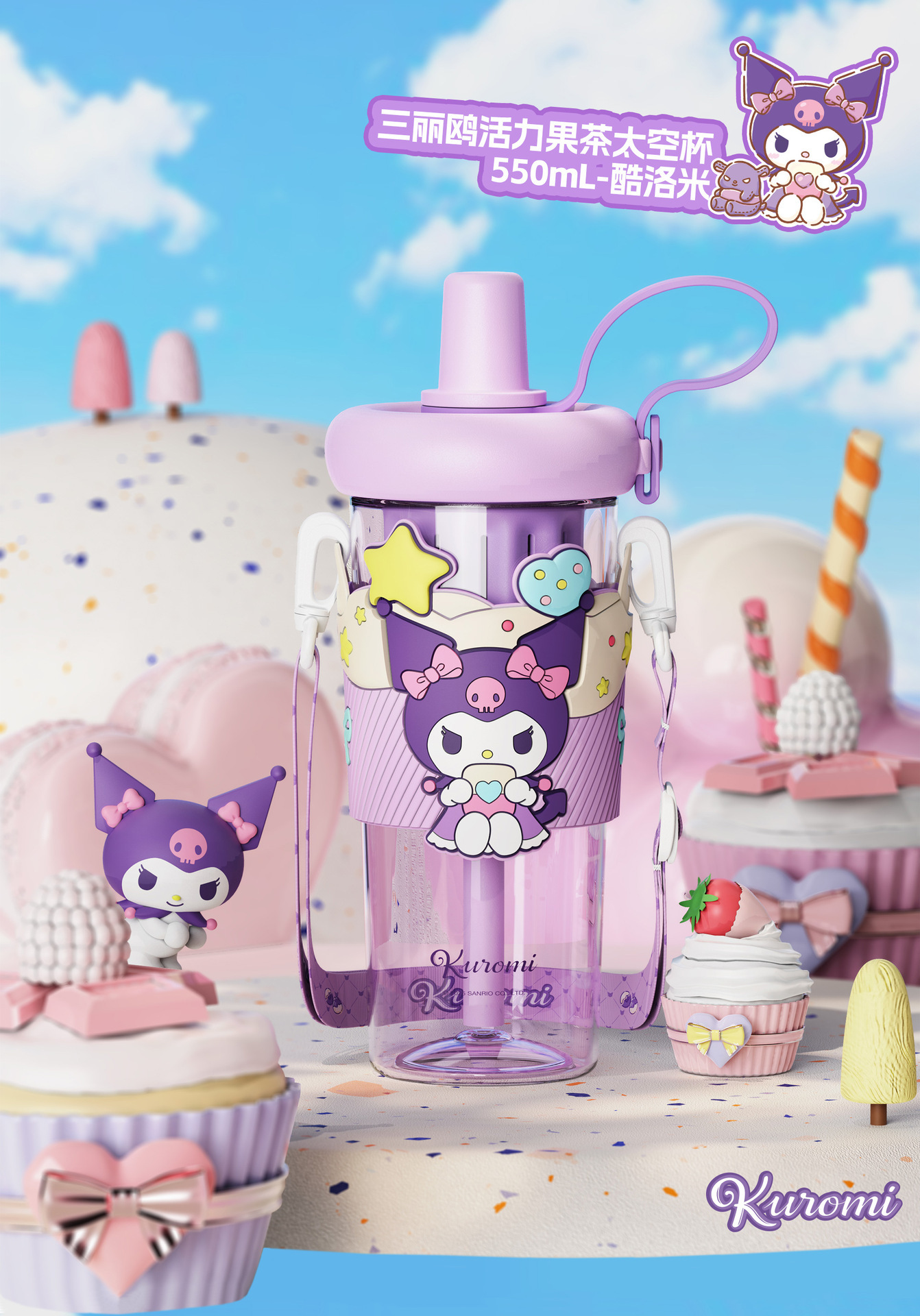 夏季水杯三丽鸥库洛米水杯儿童学生上学专用便携水壶大容量吸管杯