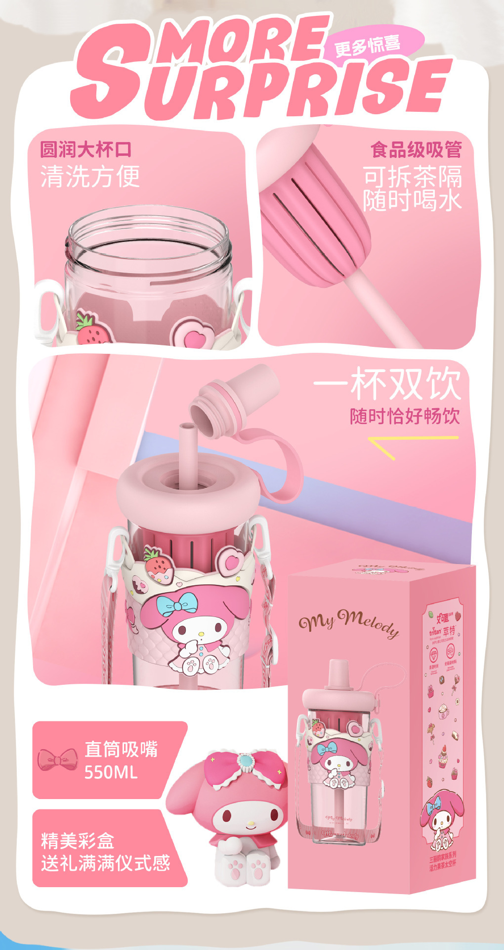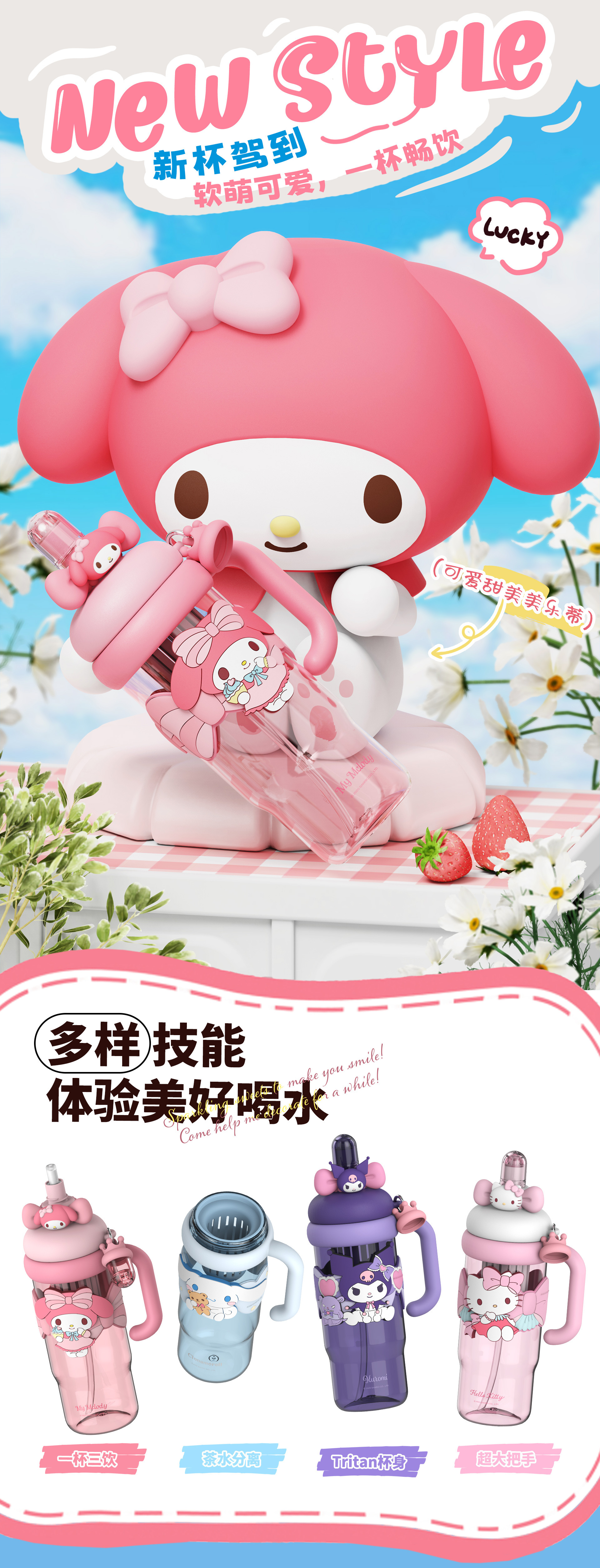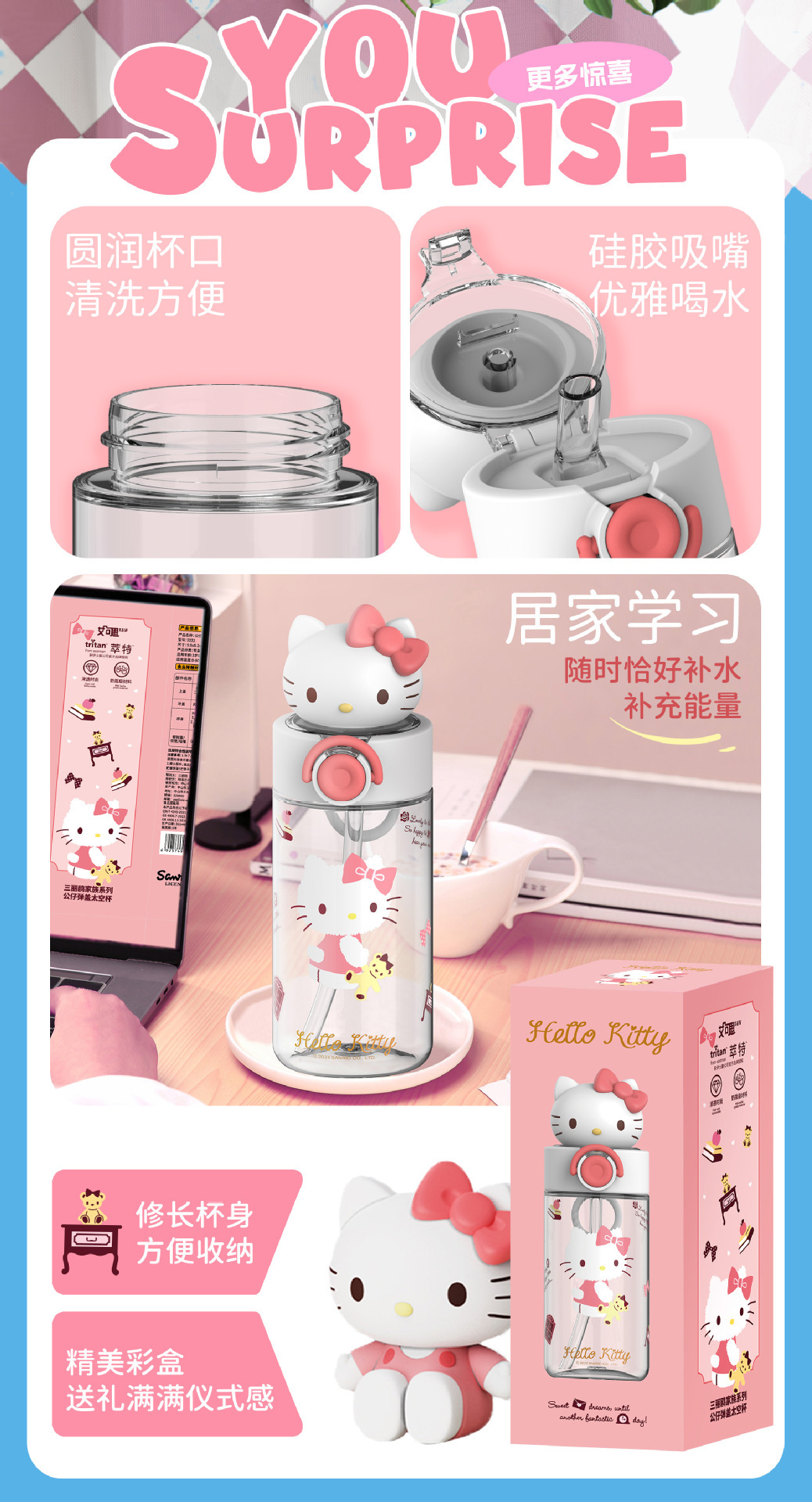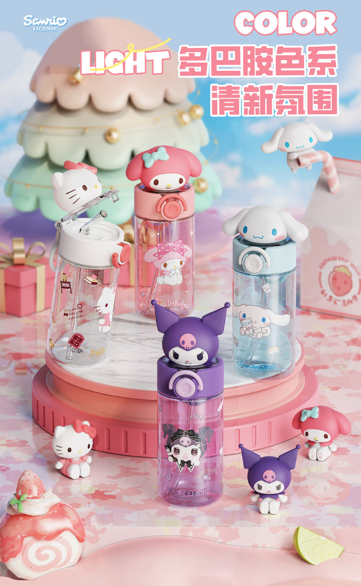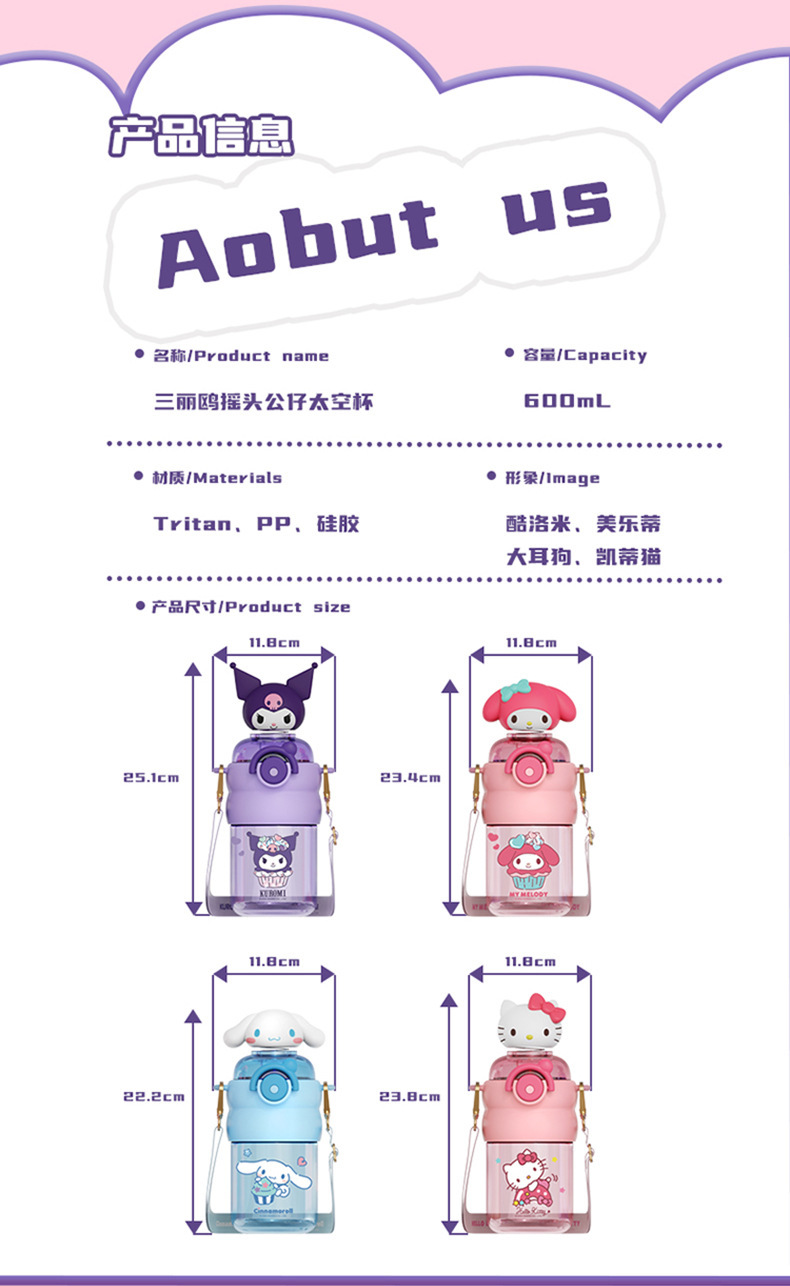 新款夏季高颜值水杯正版三丽鸥卡通杯子学生儿童水杯女生生日礼物