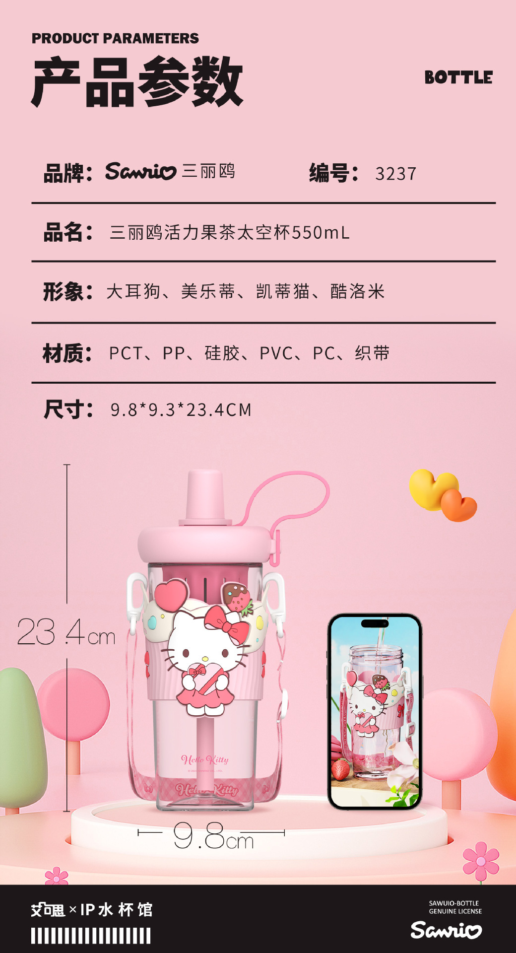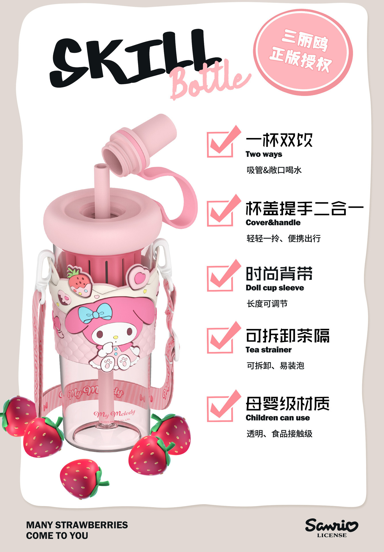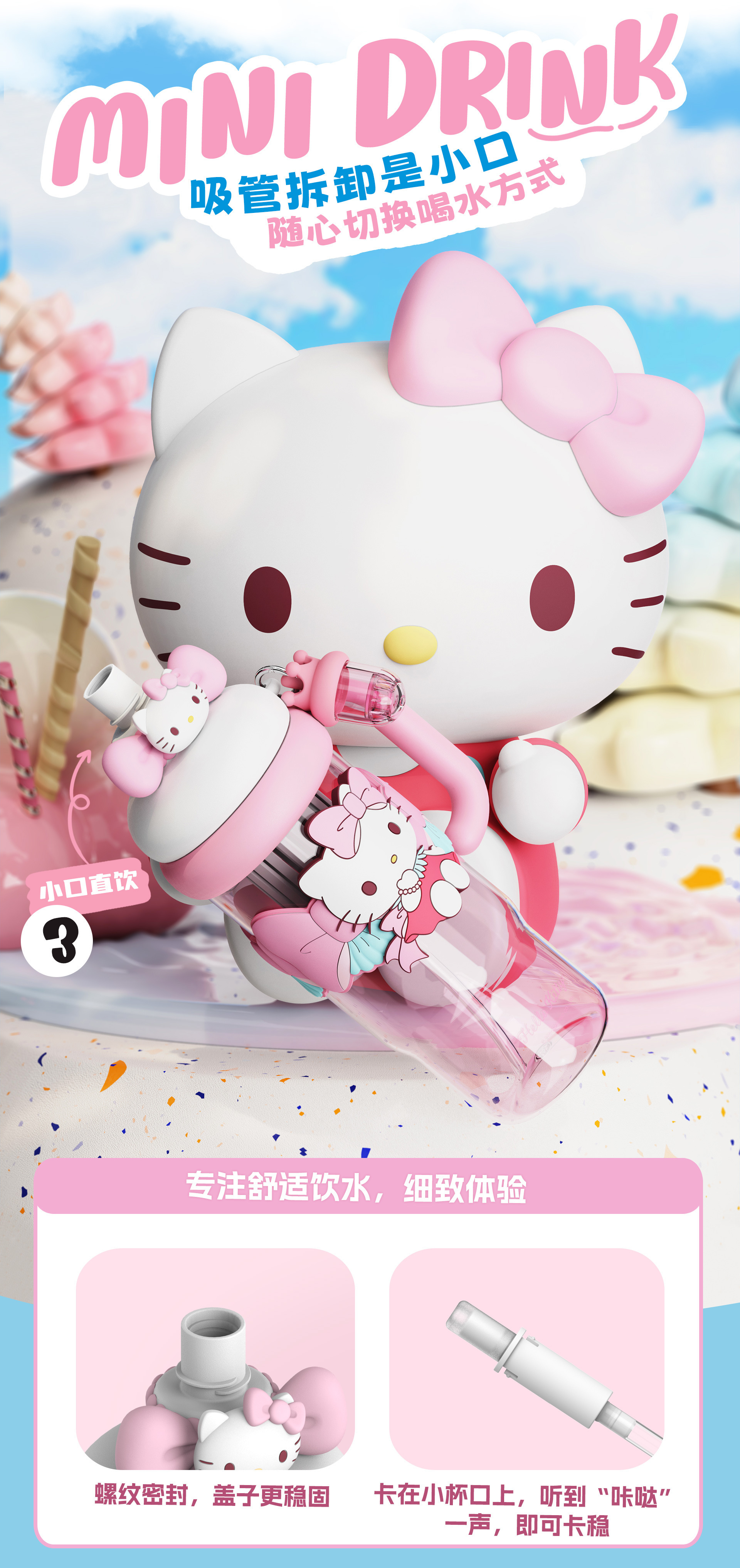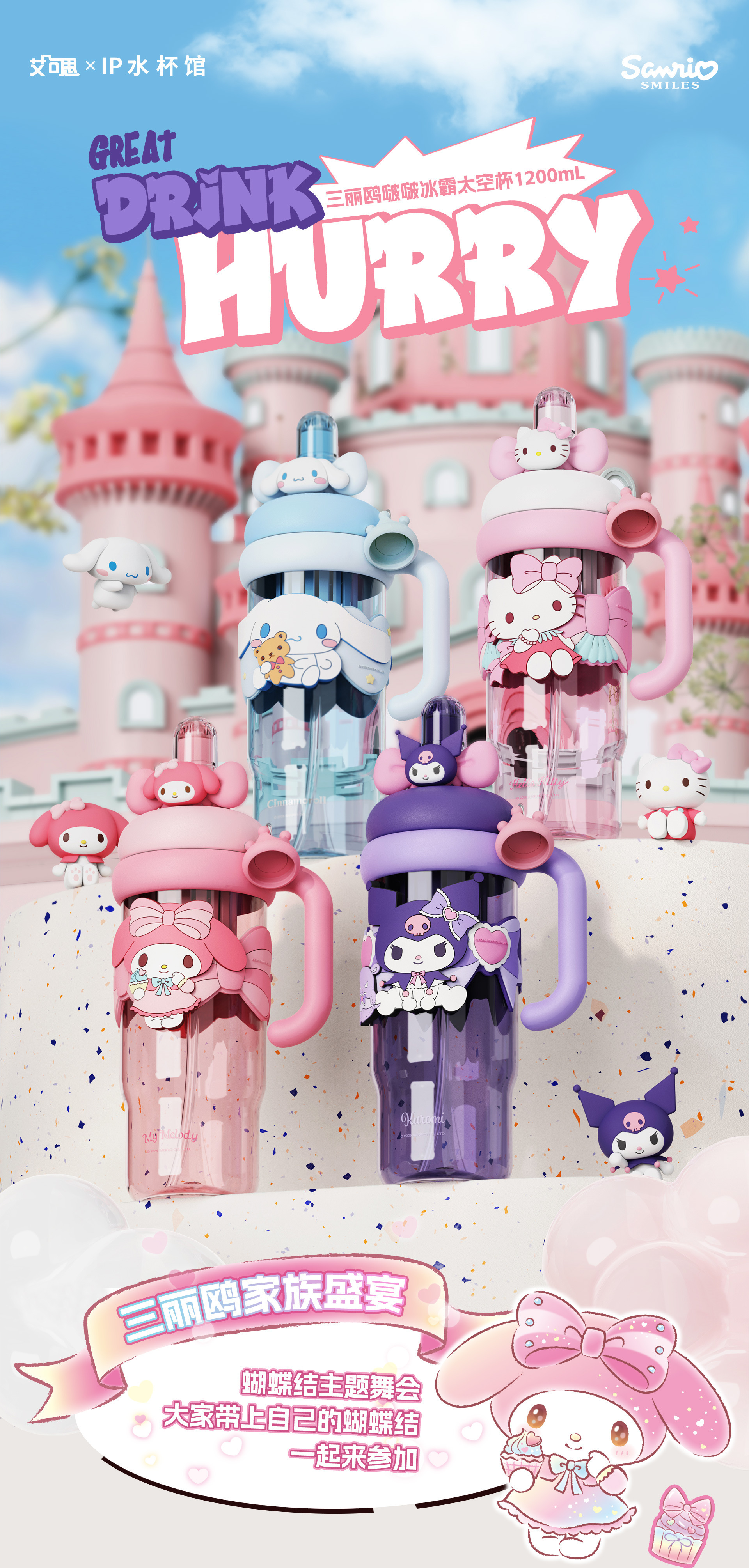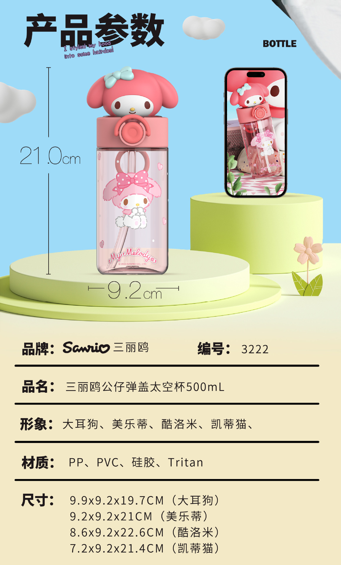 新款夏季高颜值水杯正版三丽鸥卡通杯子学生儿童水杯女生生日礼物