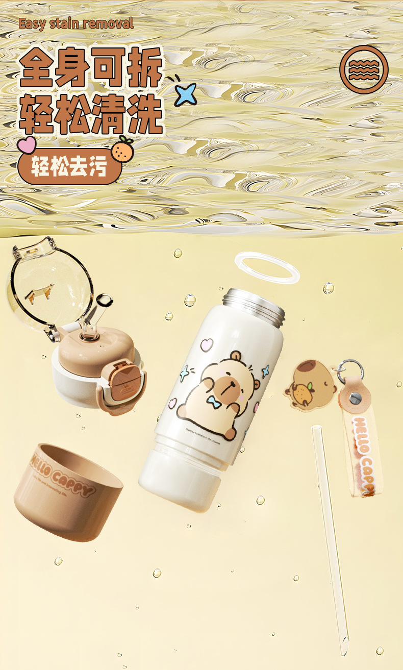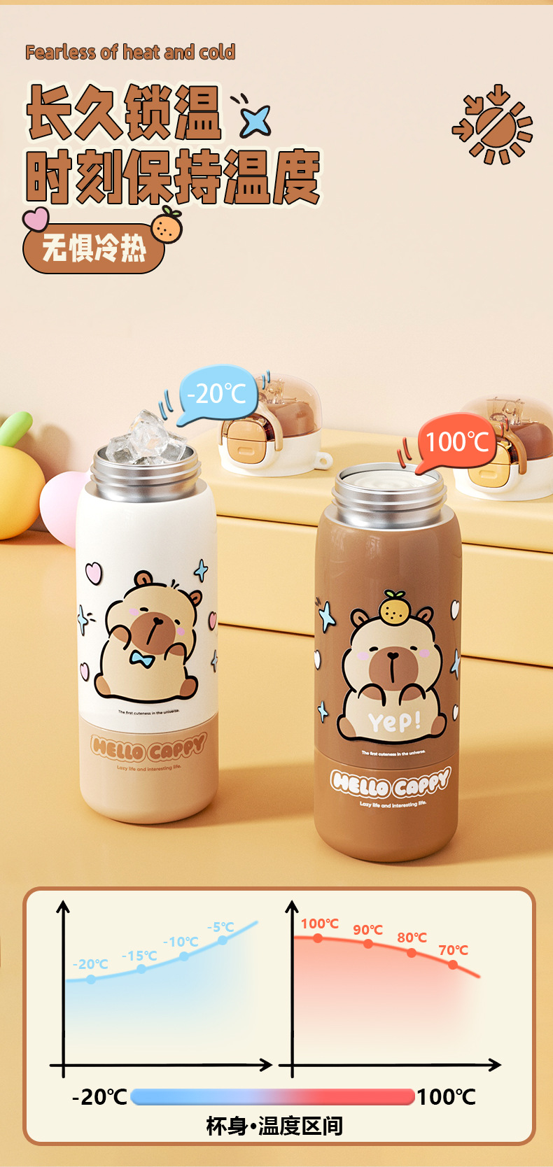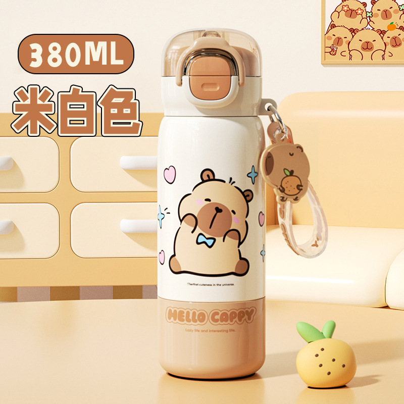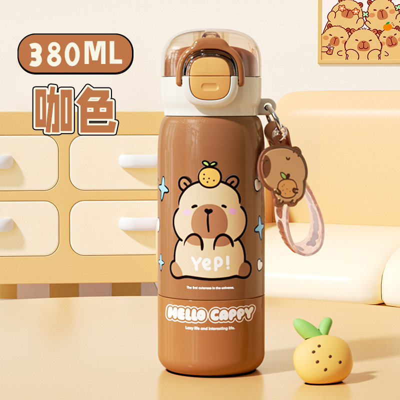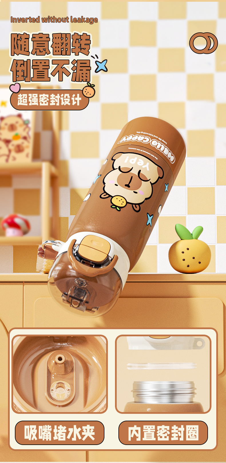 卡皮巴拉儿童保温杯男女孩2025新款学生上学专用双饮吸管水杯子