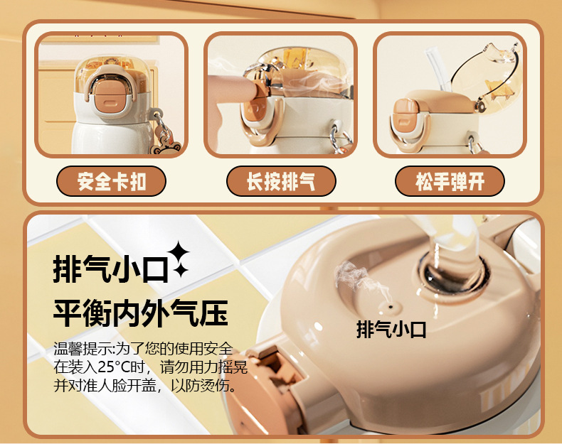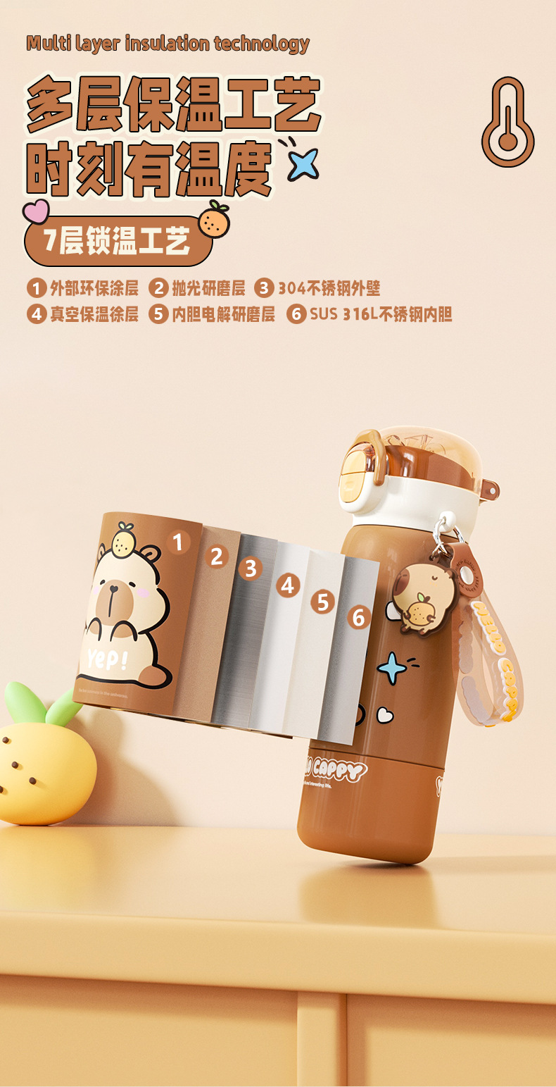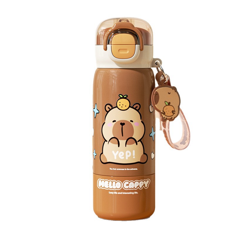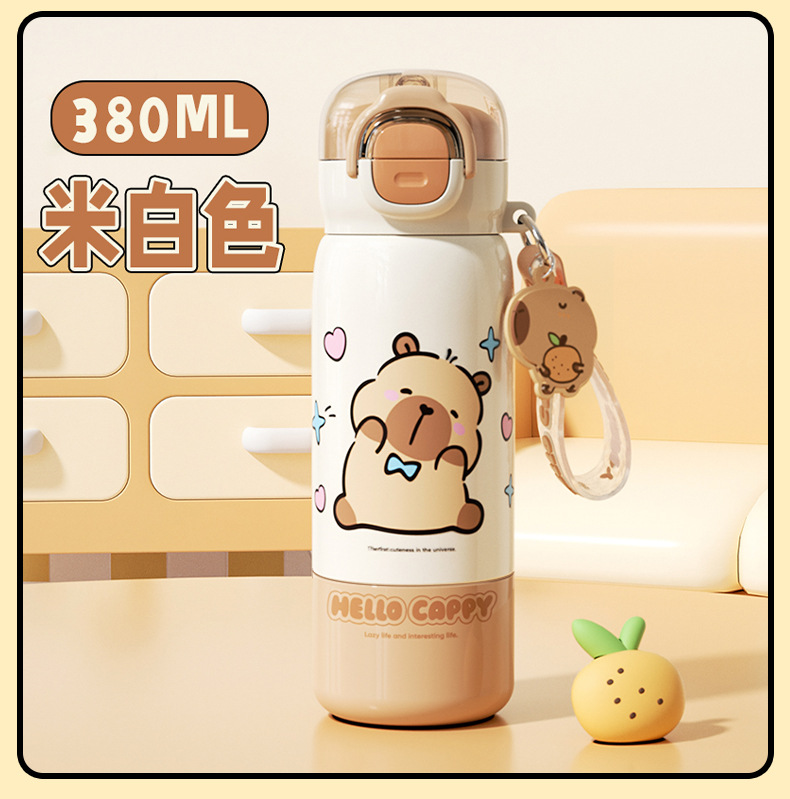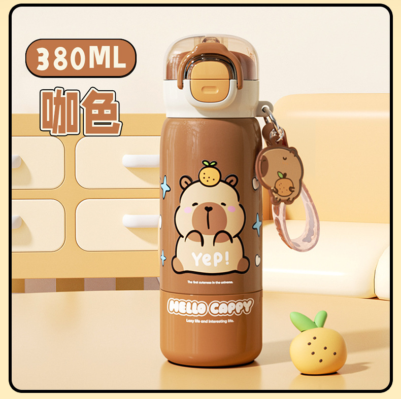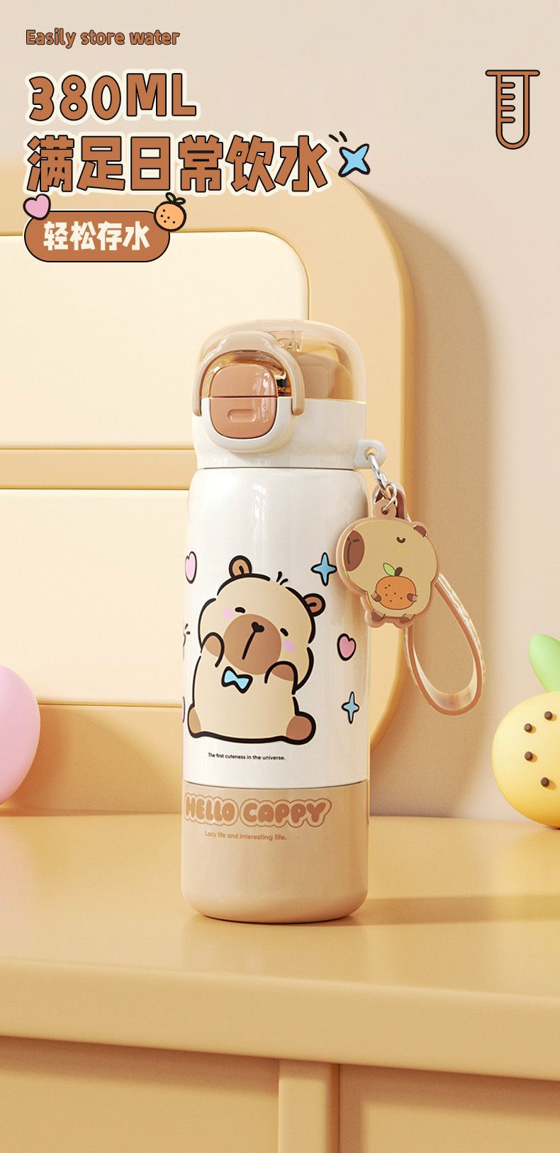 卡皮巴拉儿童保温杯男女孩2025新款学生上学专用双饮吸管水杯子