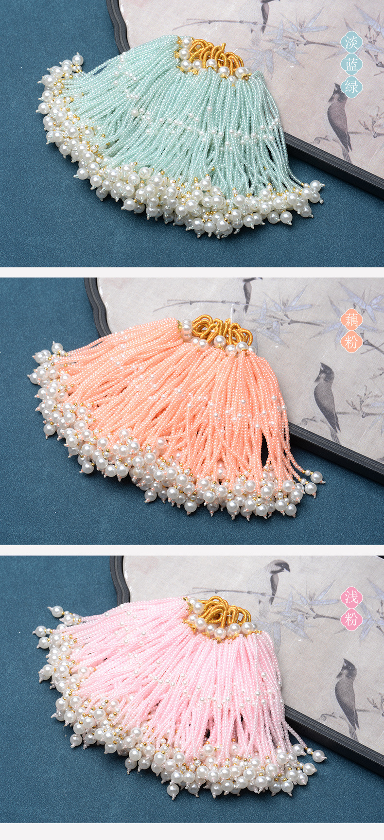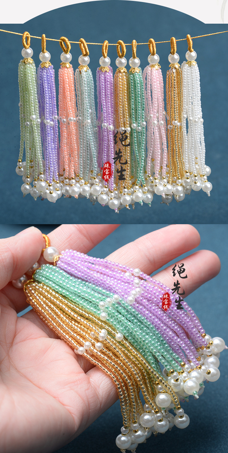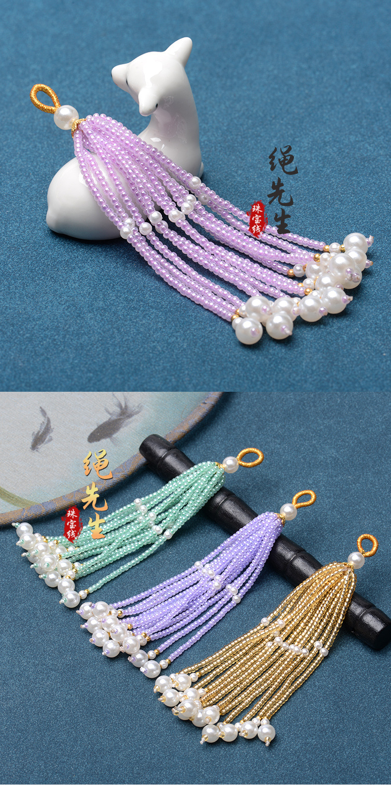 DIY流苏穗子古风琉璃珠子挂饰搭配汉服配件手工蒲扇发簪配饰饰品