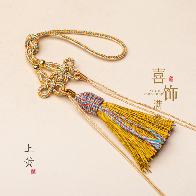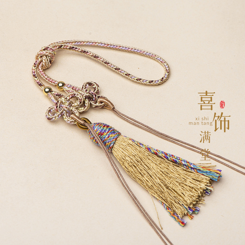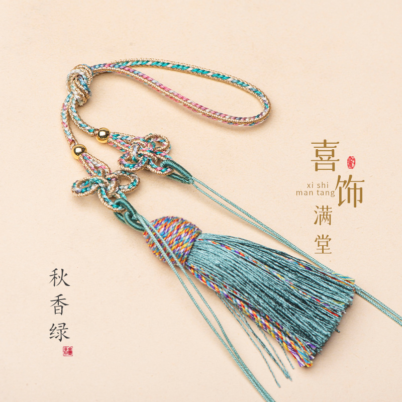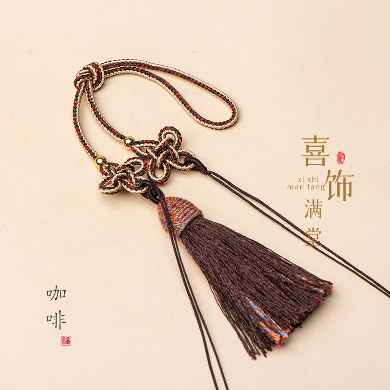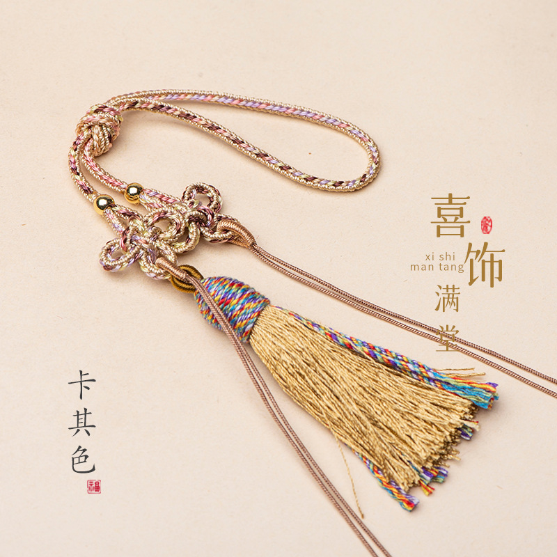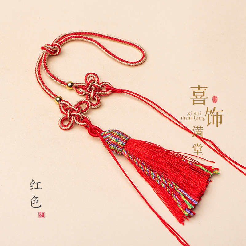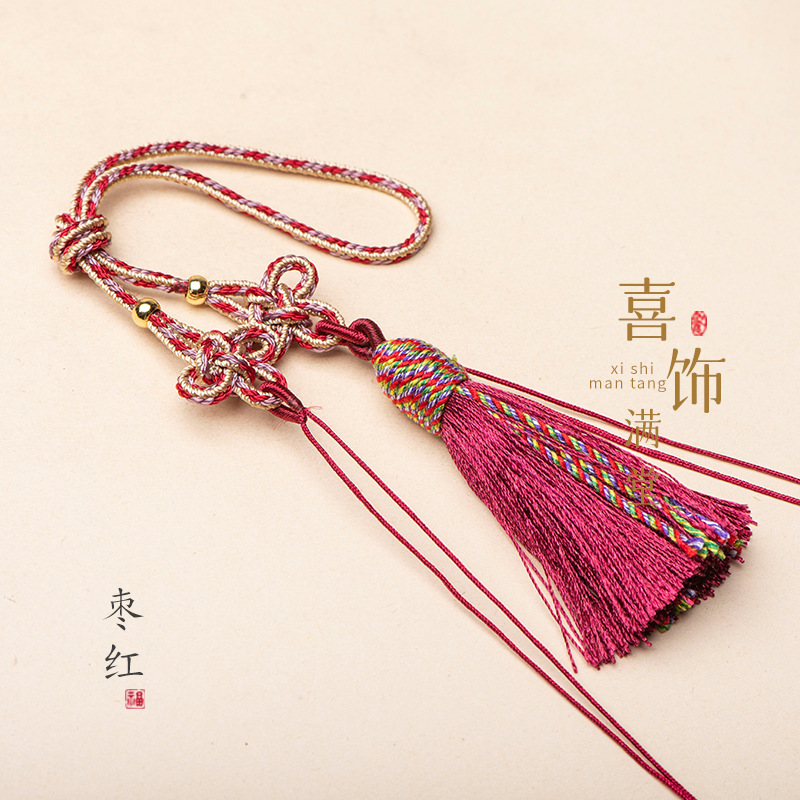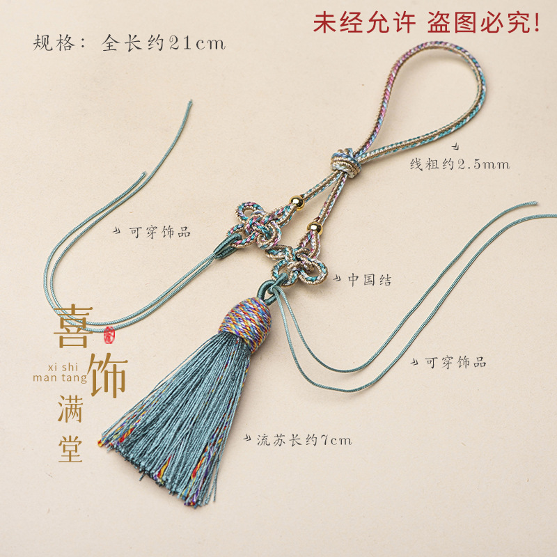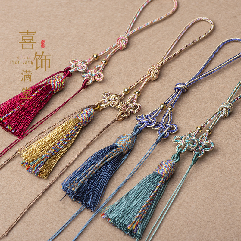 21cm拼色中国结古玩手把绳流苏吊穗饰品车挂香包配绳古风diy挂绳