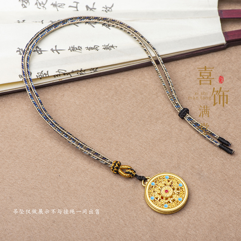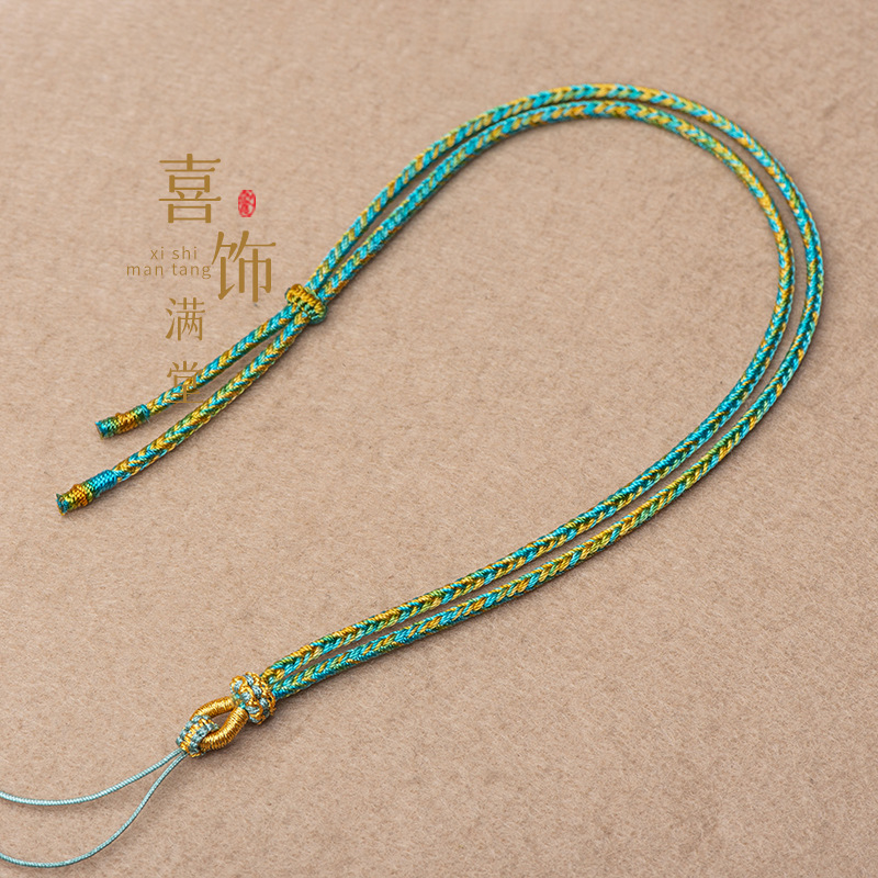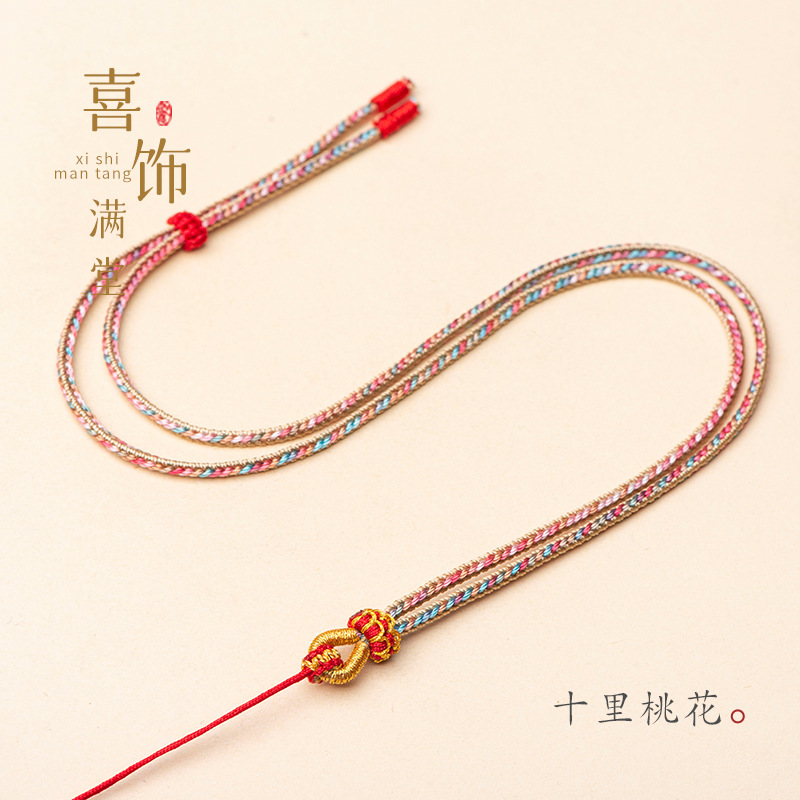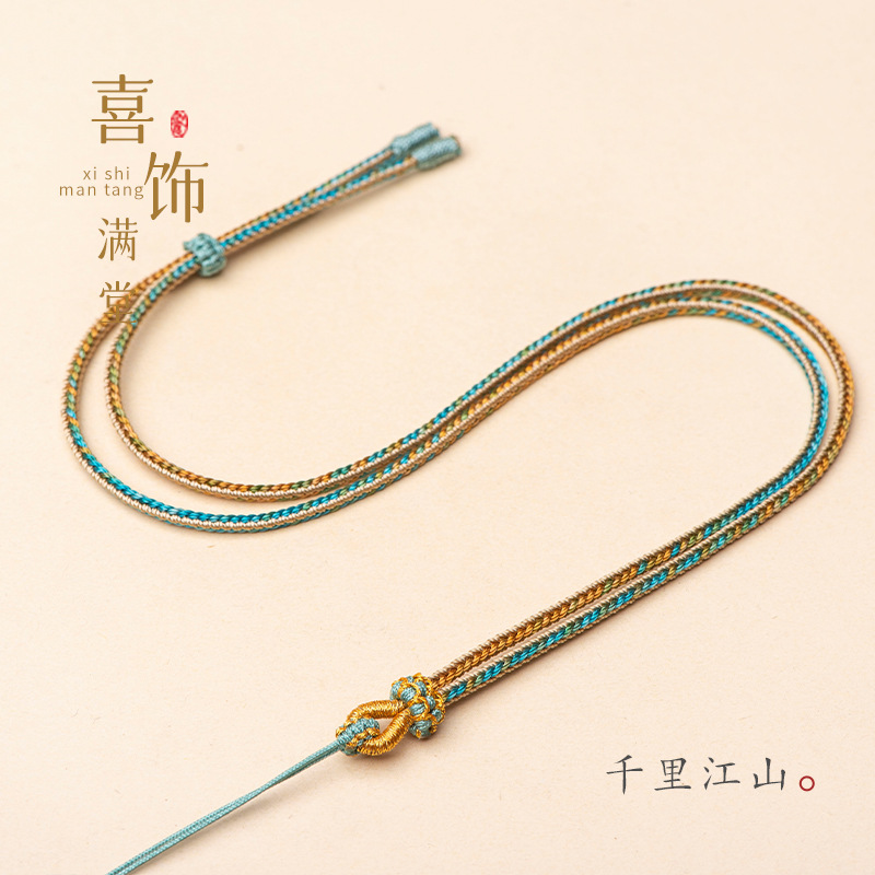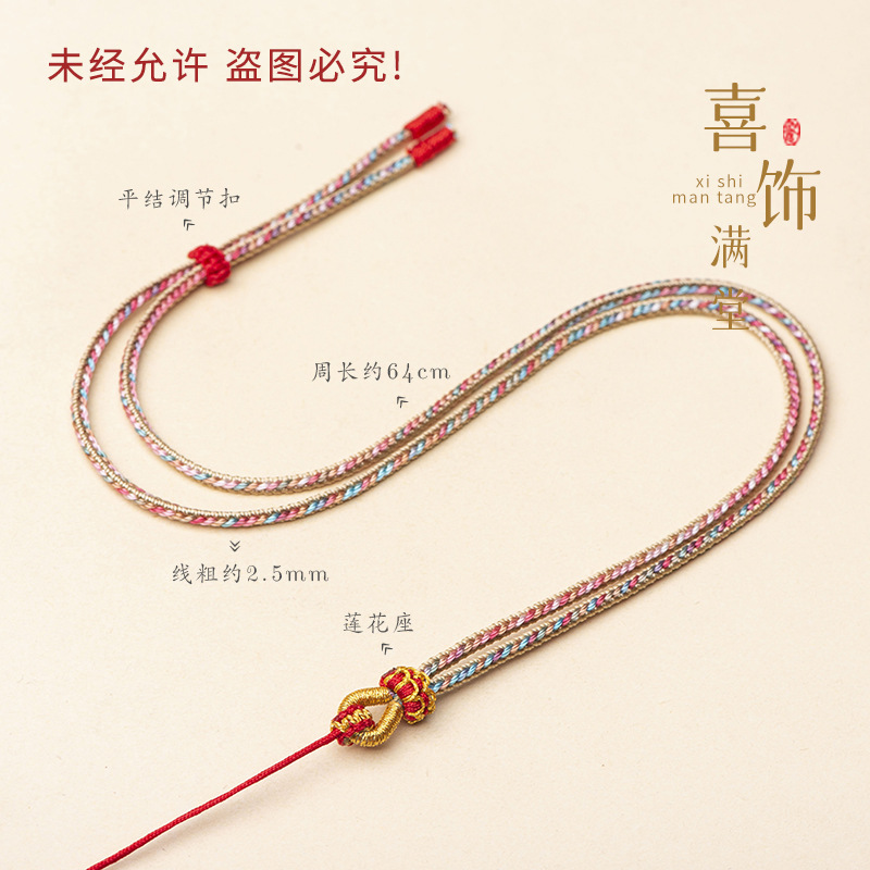 纯手工编织千里江山吊坠挂绳莲花结金锁玉佛翡翠项链绳新中式编绳