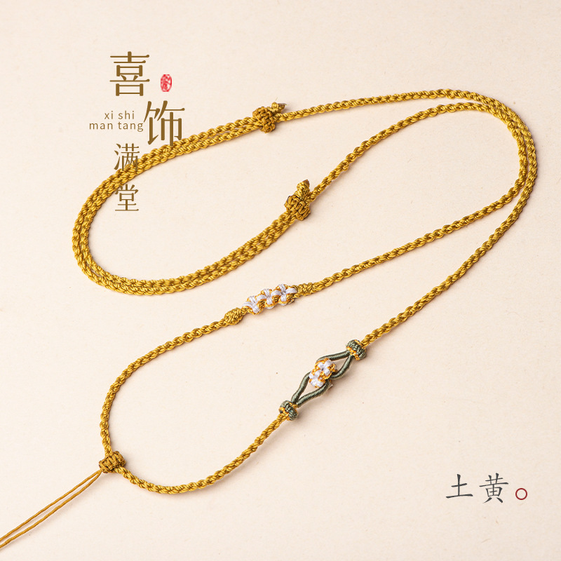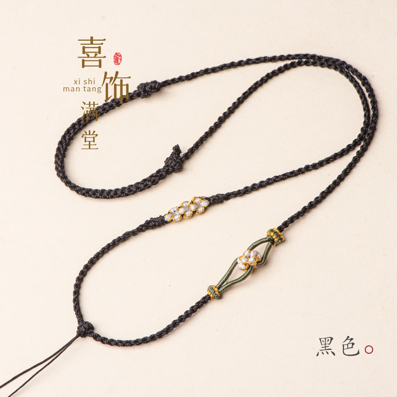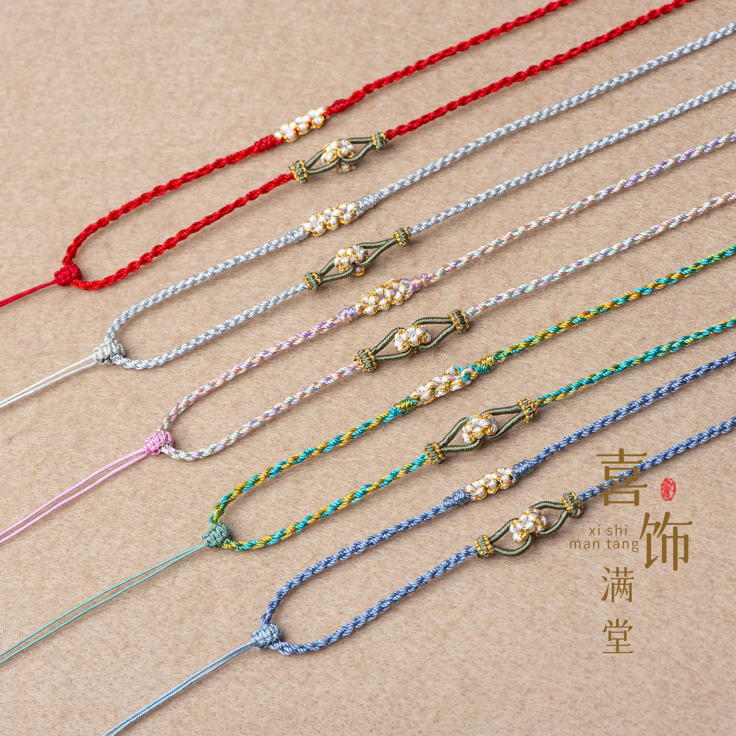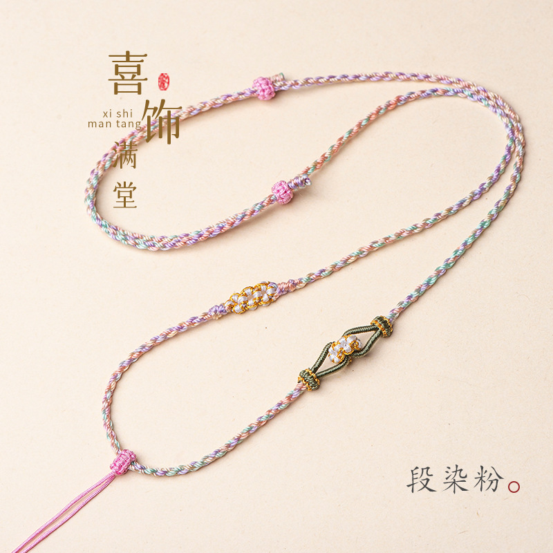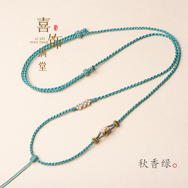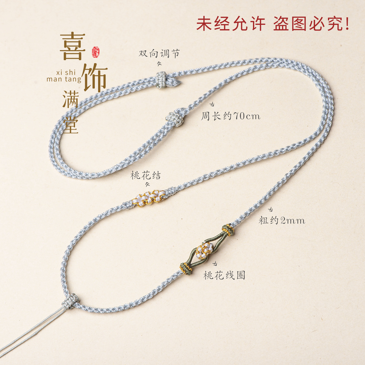 2mm细款手工四股编织吊坠挂绳桃花结翡翠蜜蜡毛衣链可调节款素绳