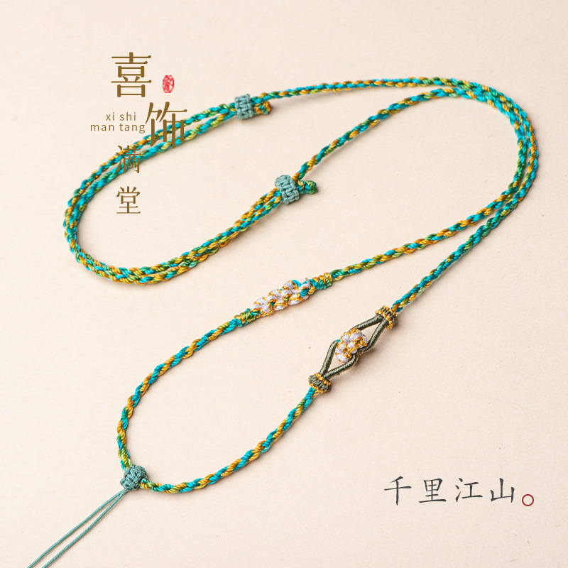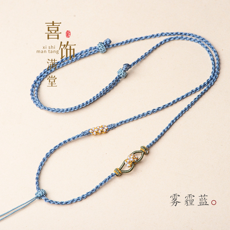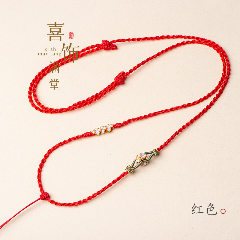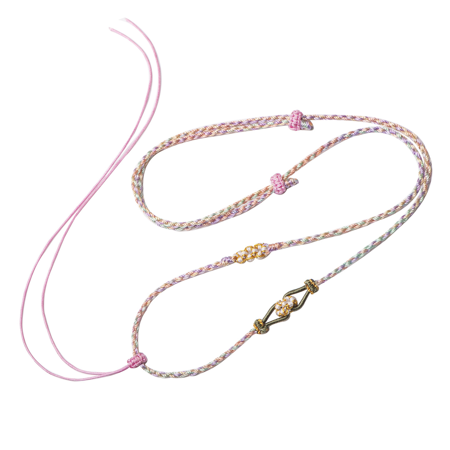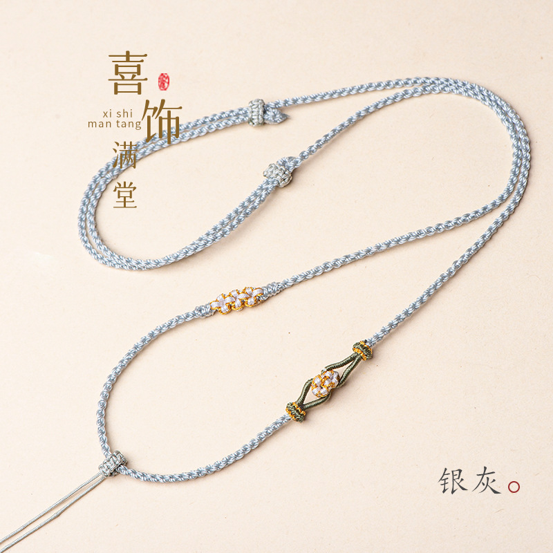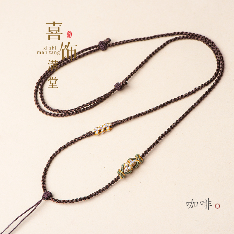 2mm细款手工四股编织吊坠挂绳桃花结翡翠蜜蜡毛衣链可调节款素绳
