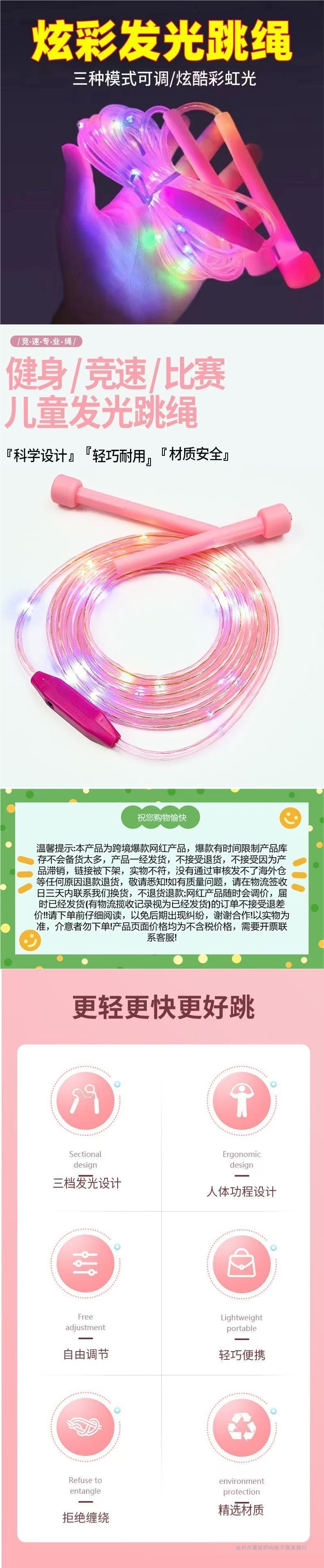 发光跳绳批发儿童夜光七彩led灯夜市地摊户外夜间钢丝绳炫玩具