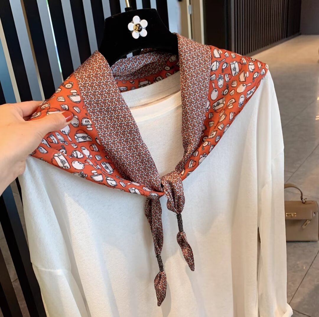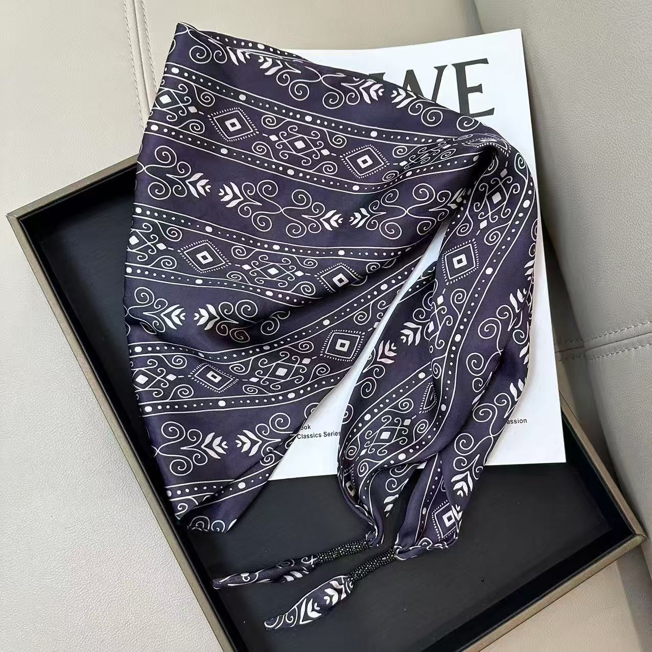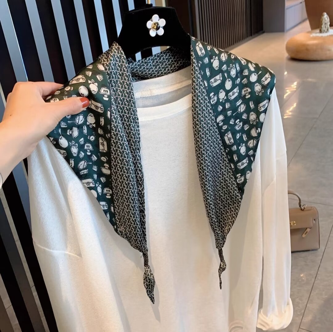 春秋新款三角巾双层缎面韩系小披肩柔软丝滑护颈小丝巾女领巾批发