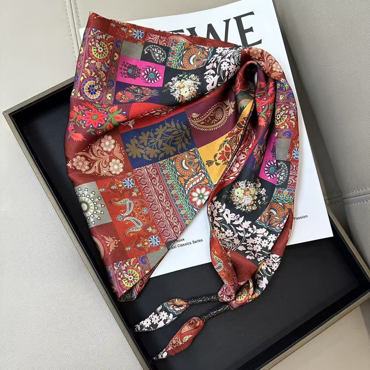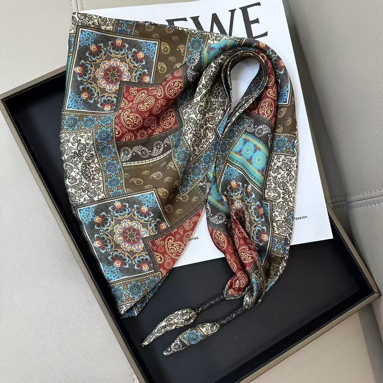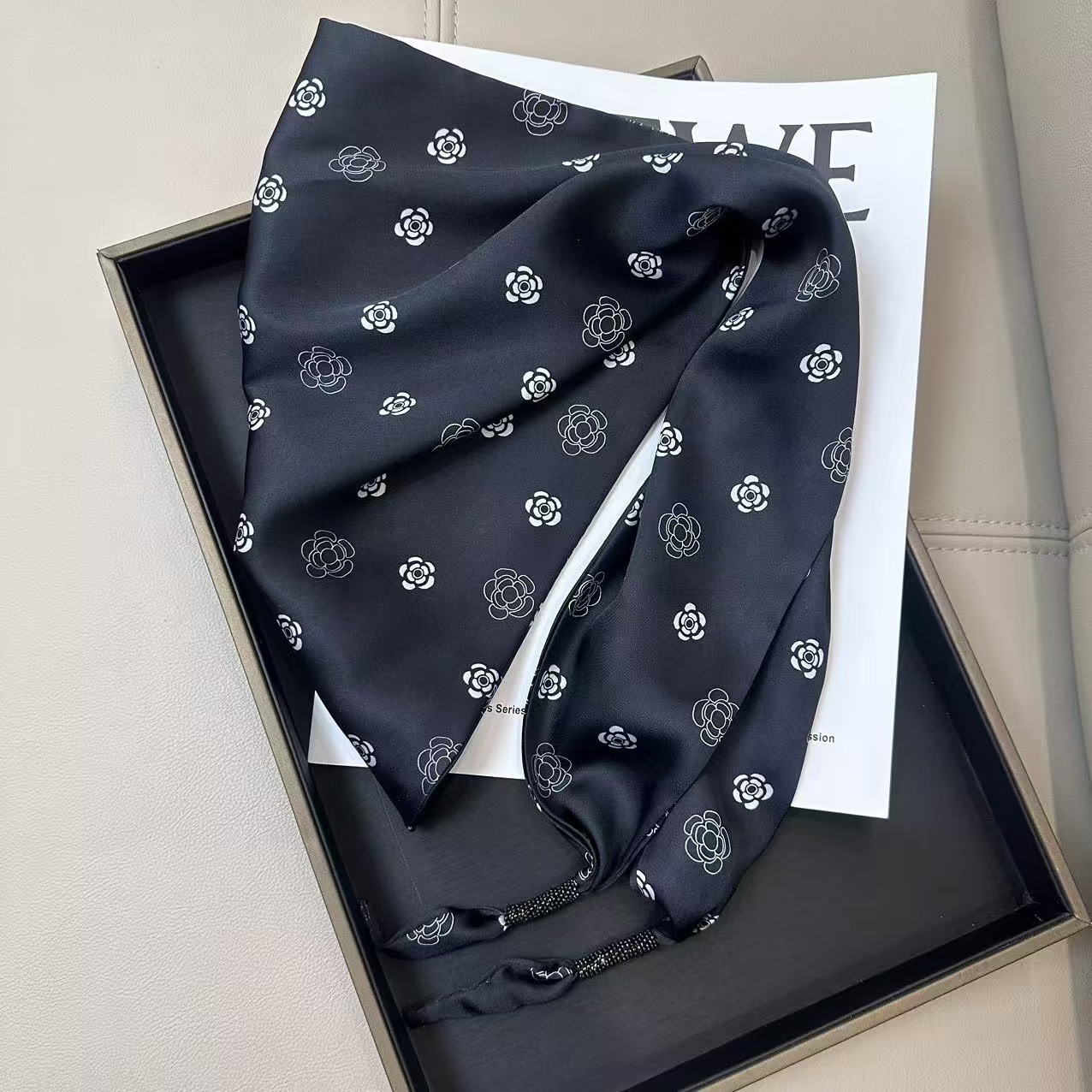 春秋新款三角巾双层缎面韩系小披肩柔软丝滑护颈小丝巾女领巾批发