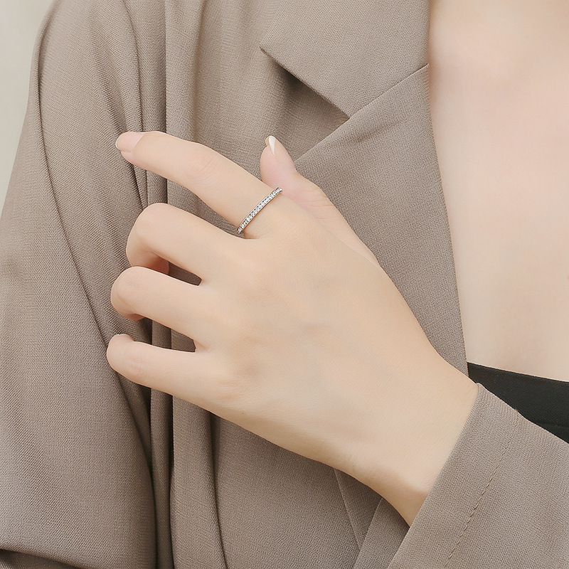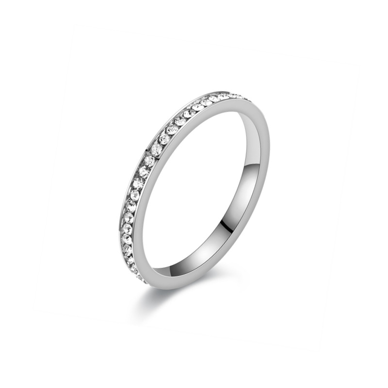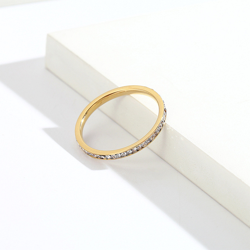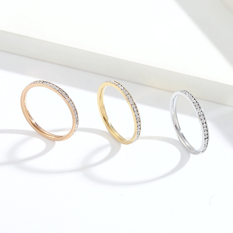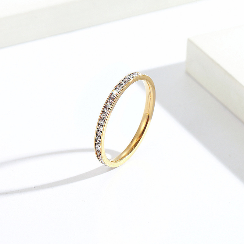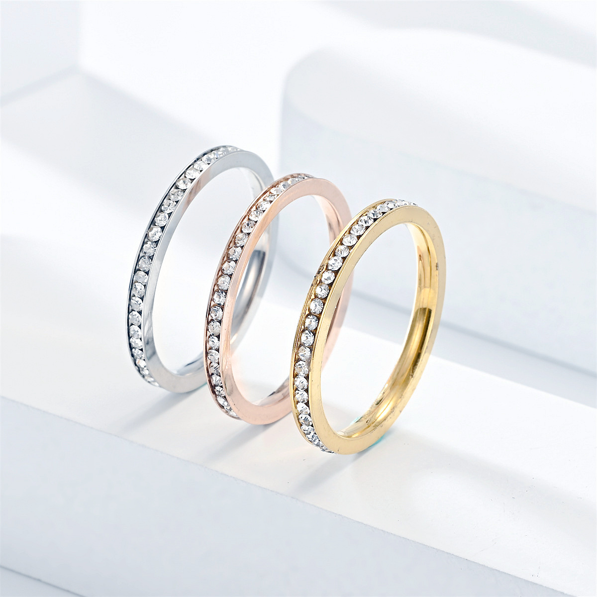 欧美跨境爆款2mm钛钢镶钻戒指女高级感小众ins简约情侣戒指手饰品