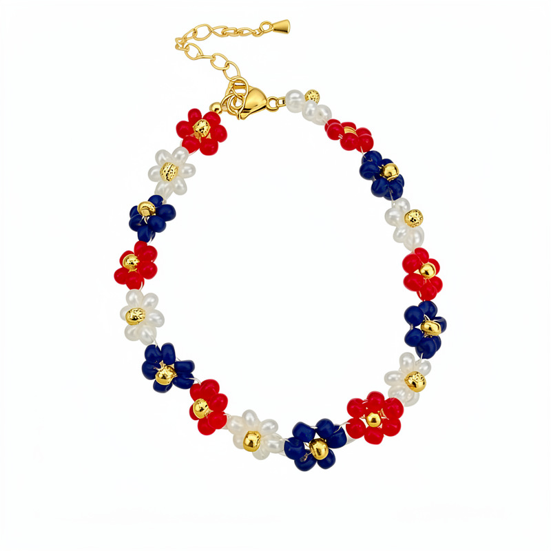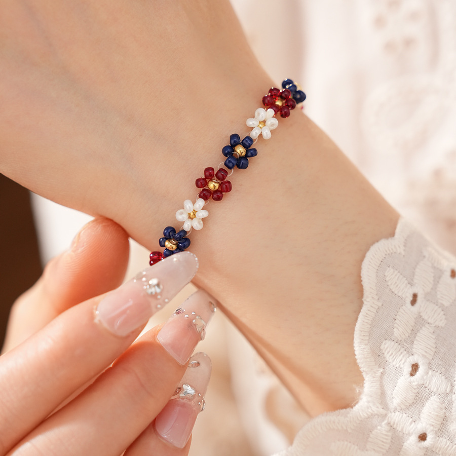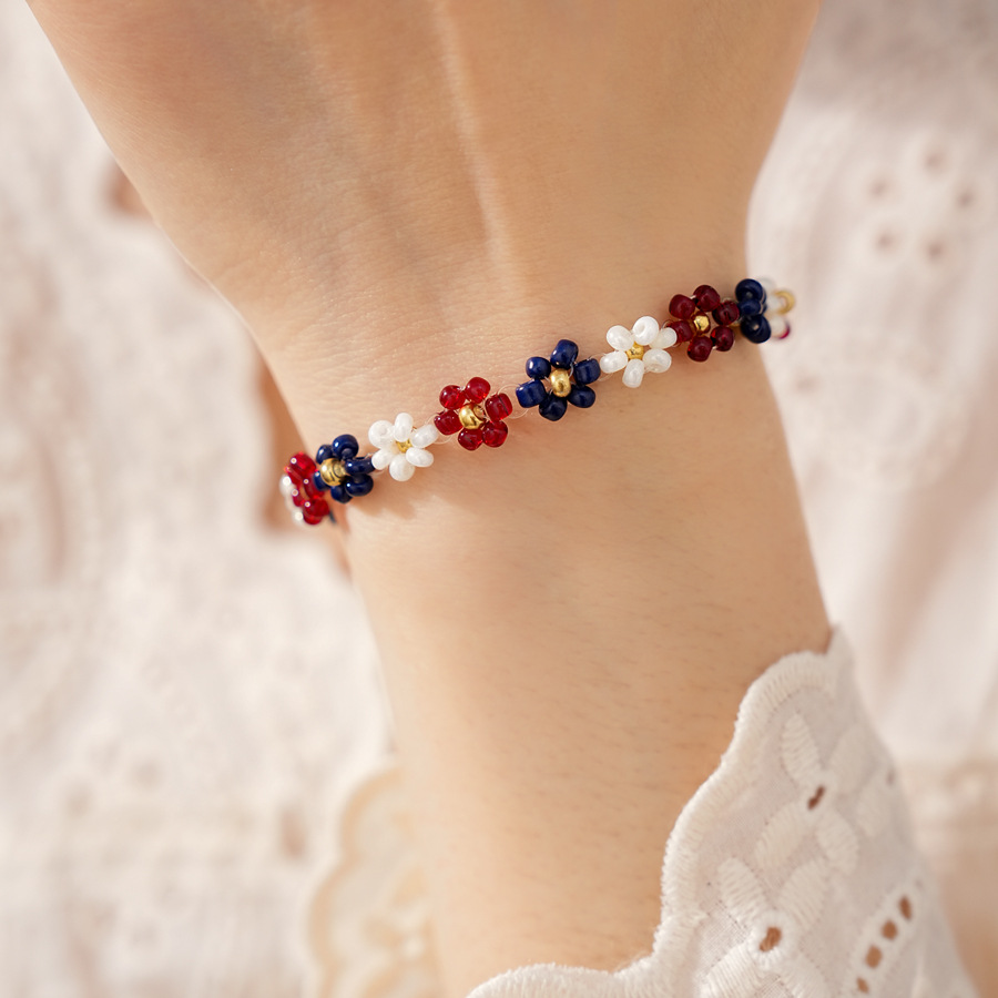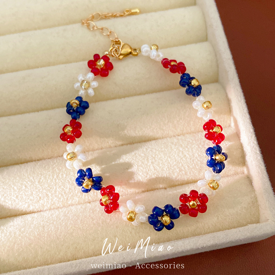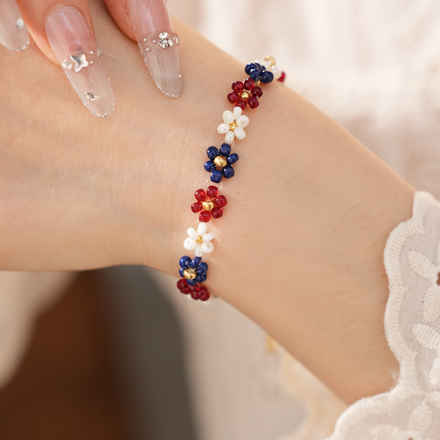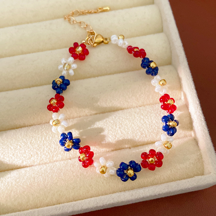 玻璃米粒串珠花朵项链轻奢小众锁骨链度假风甜美气质时尚首饰套装
