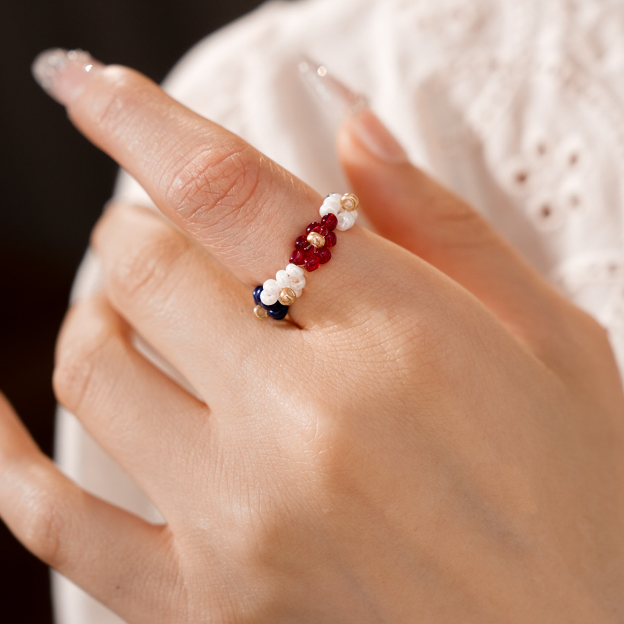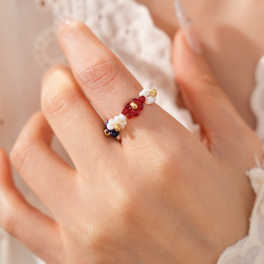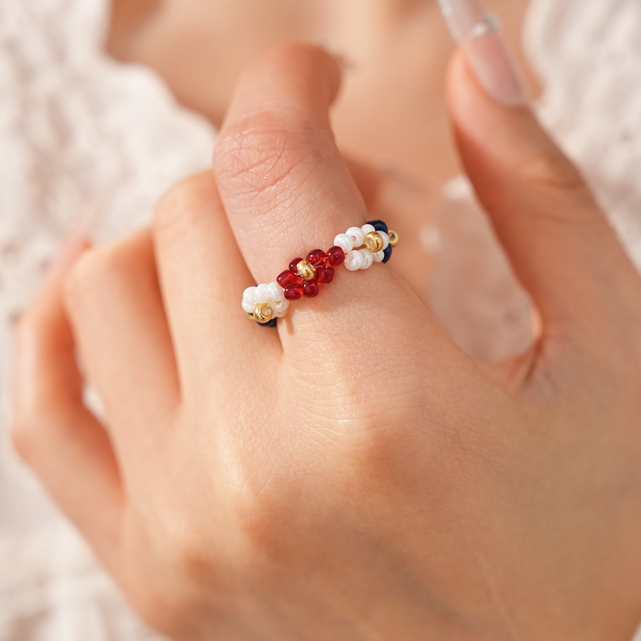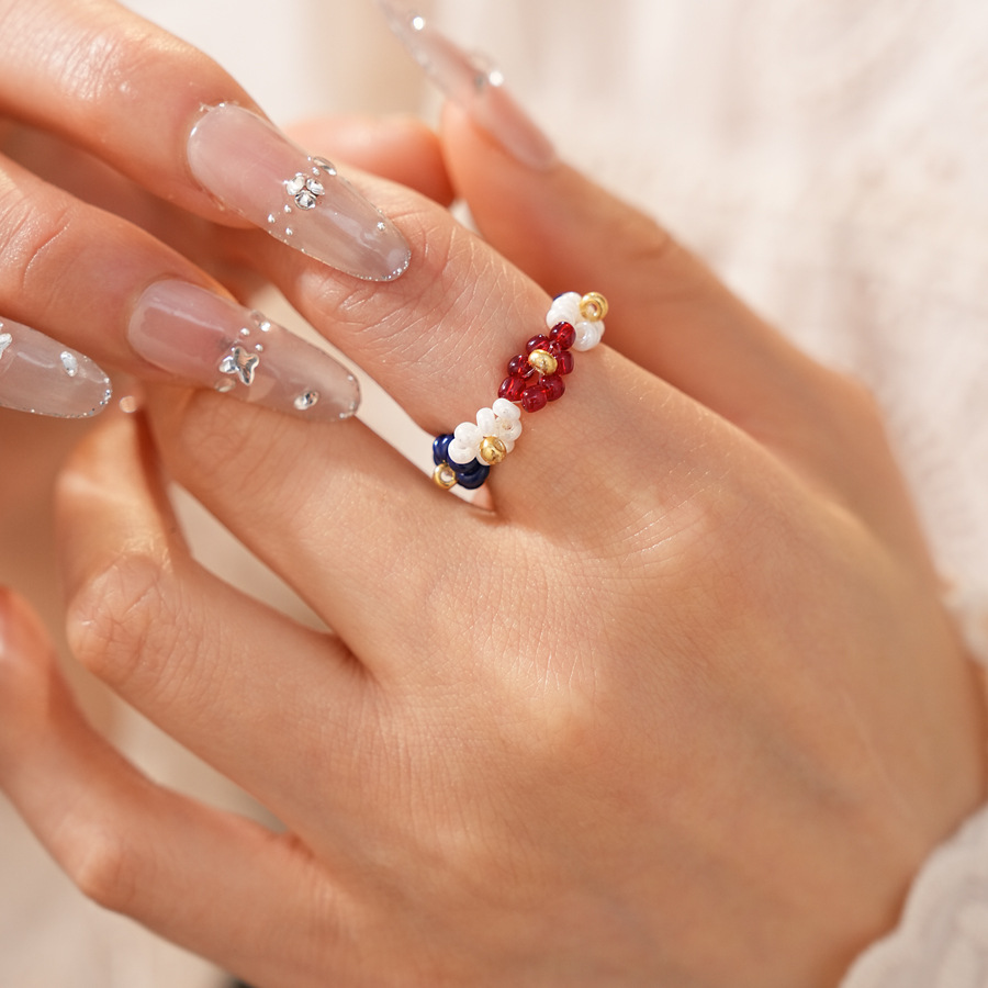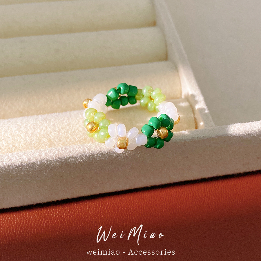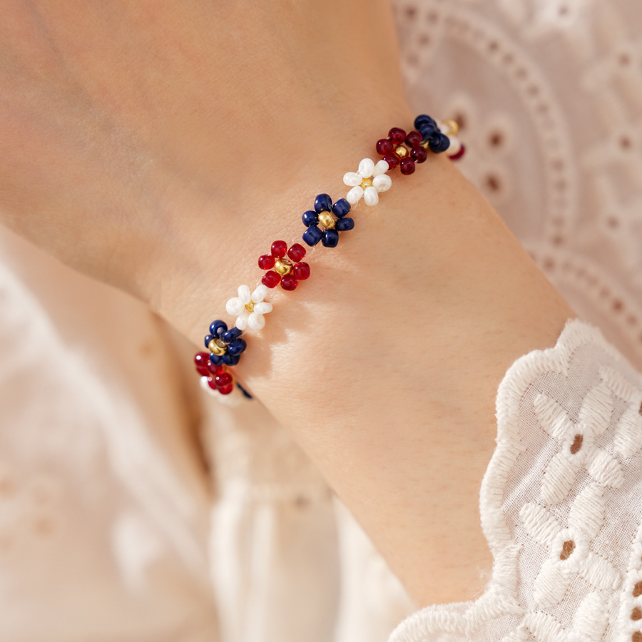 玻璃米粒串珠花朵项链轻奢小众锁骨链度假风甜美气质时尚首饰套装