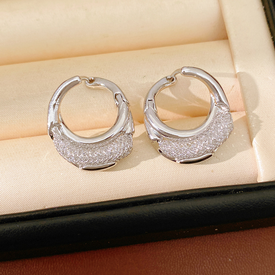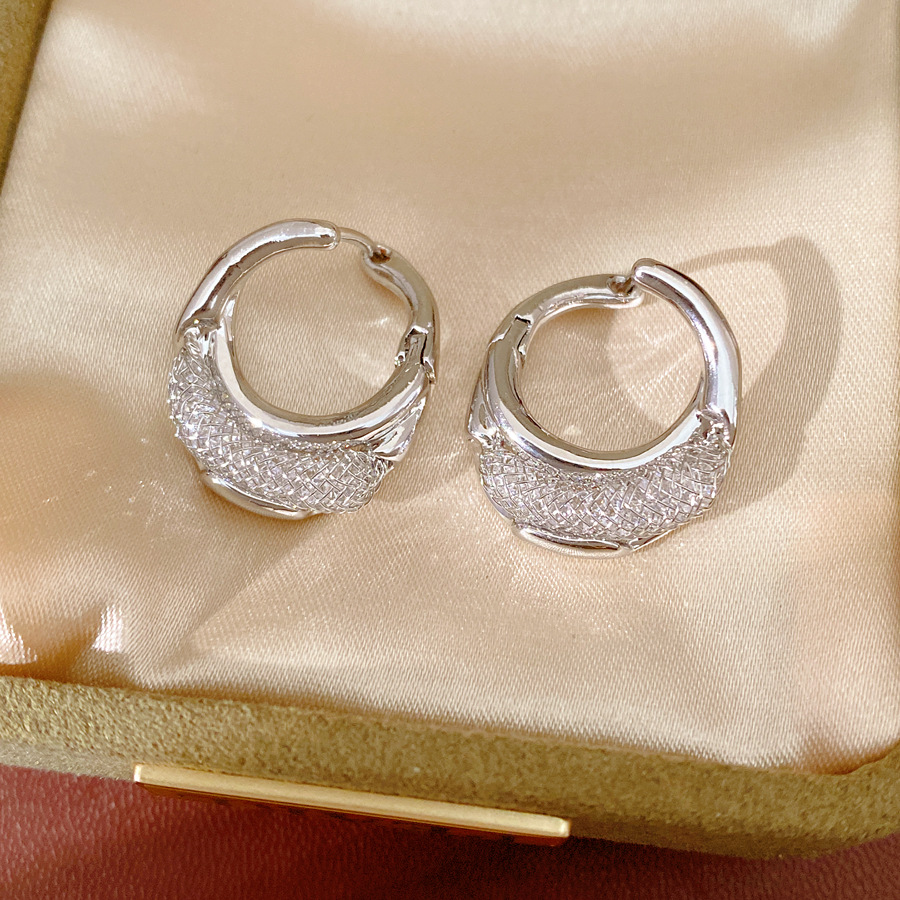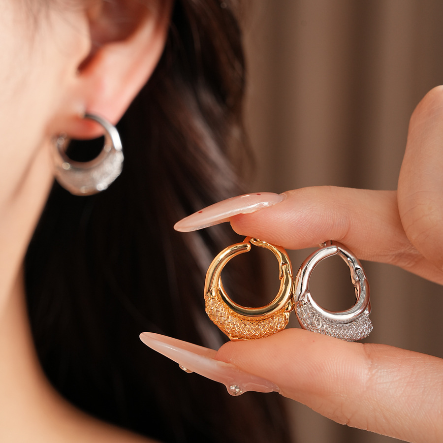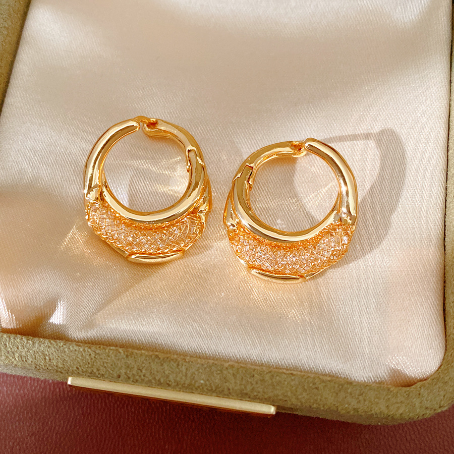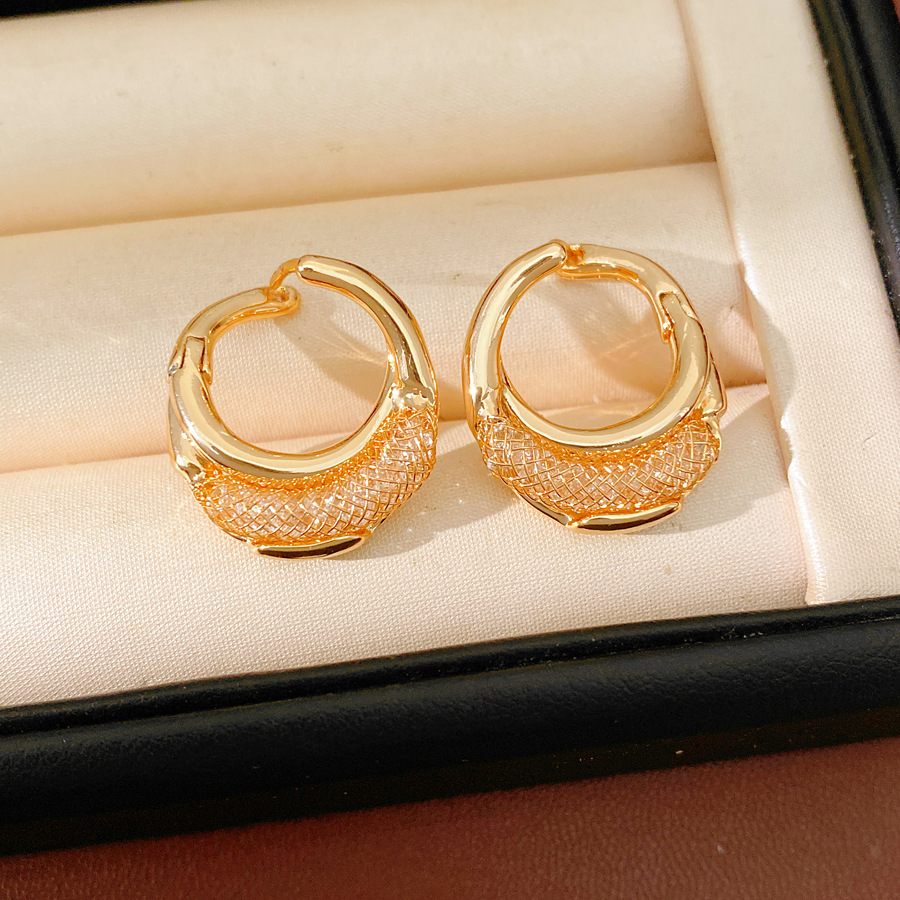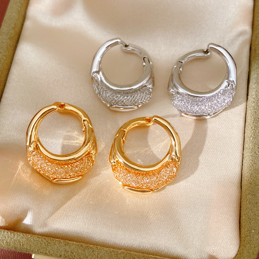 18k真金电镀镶锆石网格扭曲耳扣个性小众耳环轻奢高级感耳饰批发
