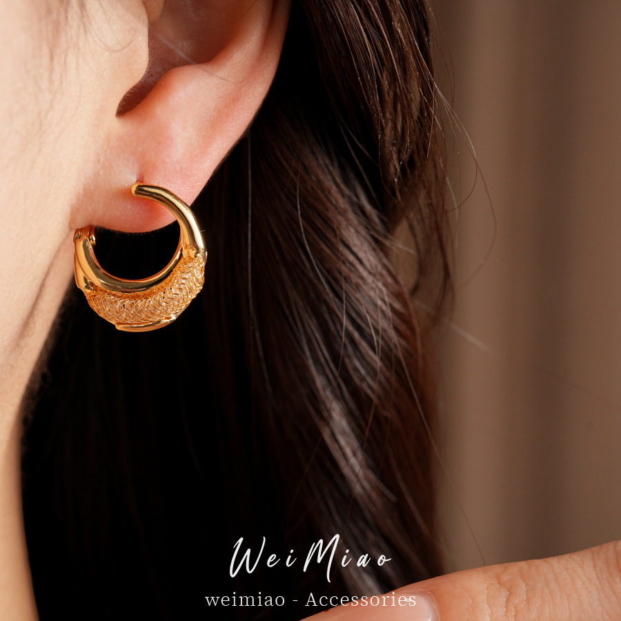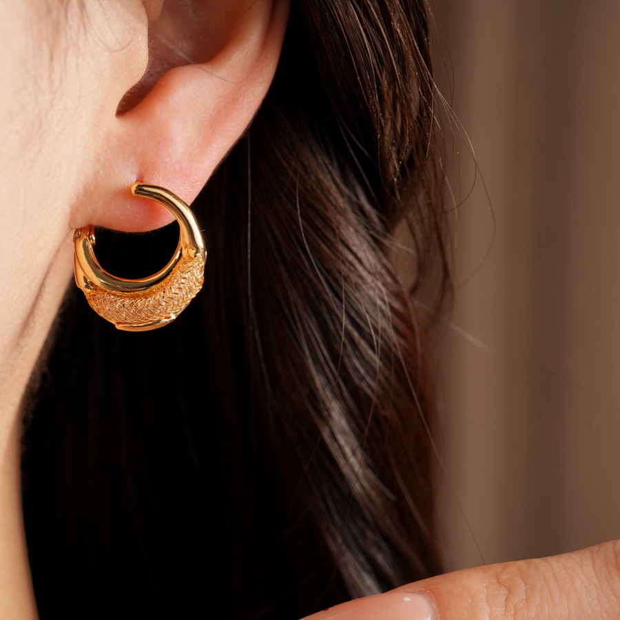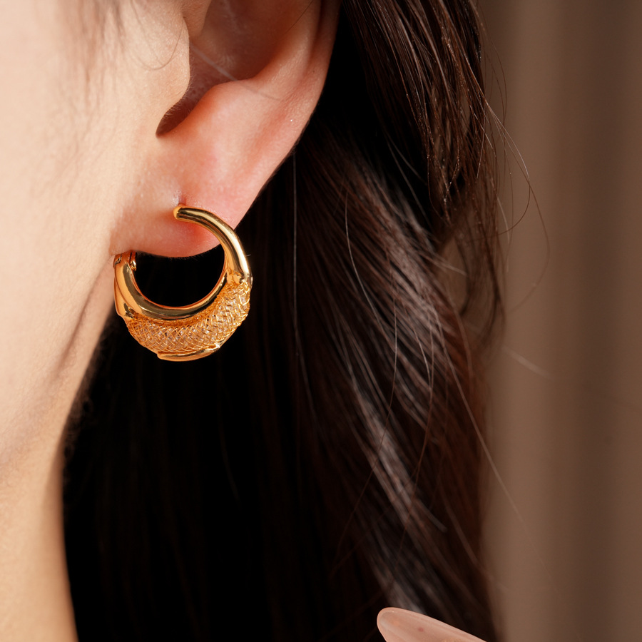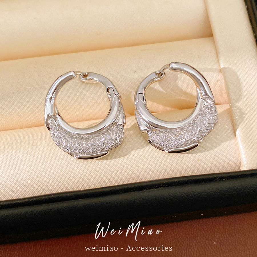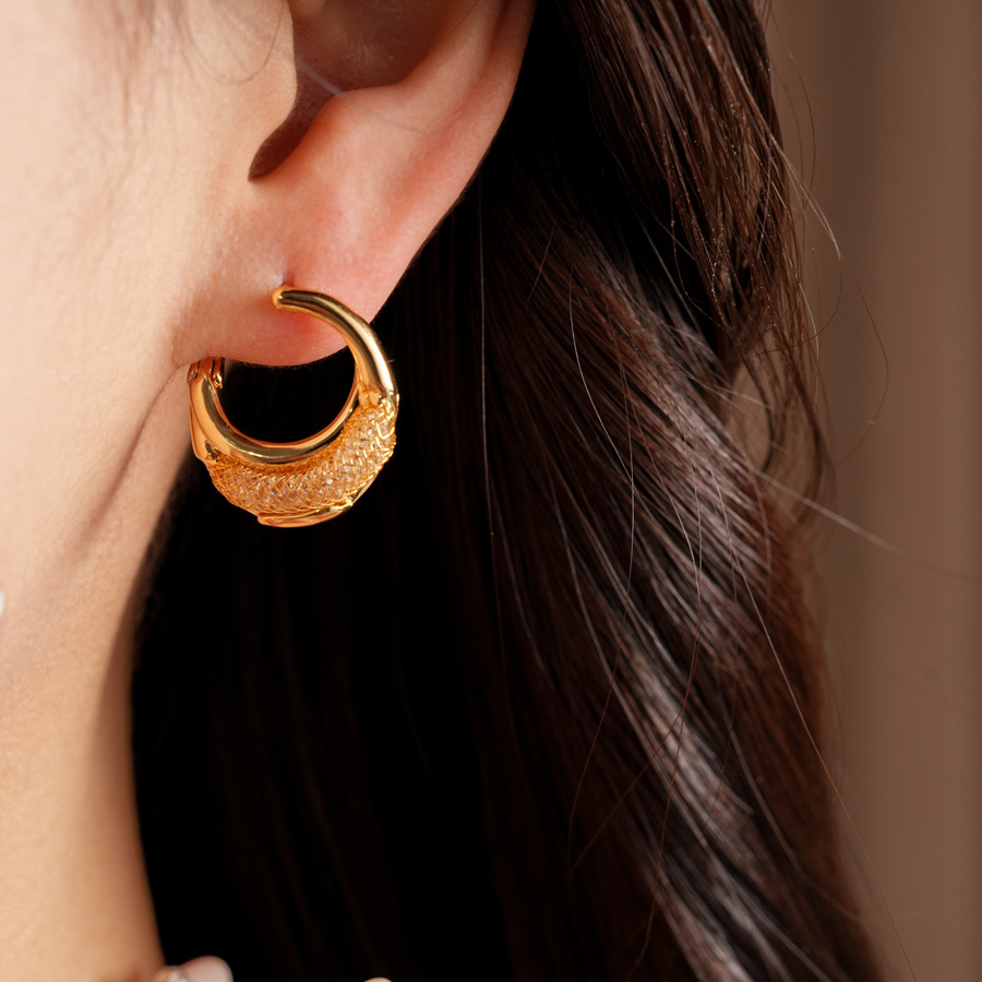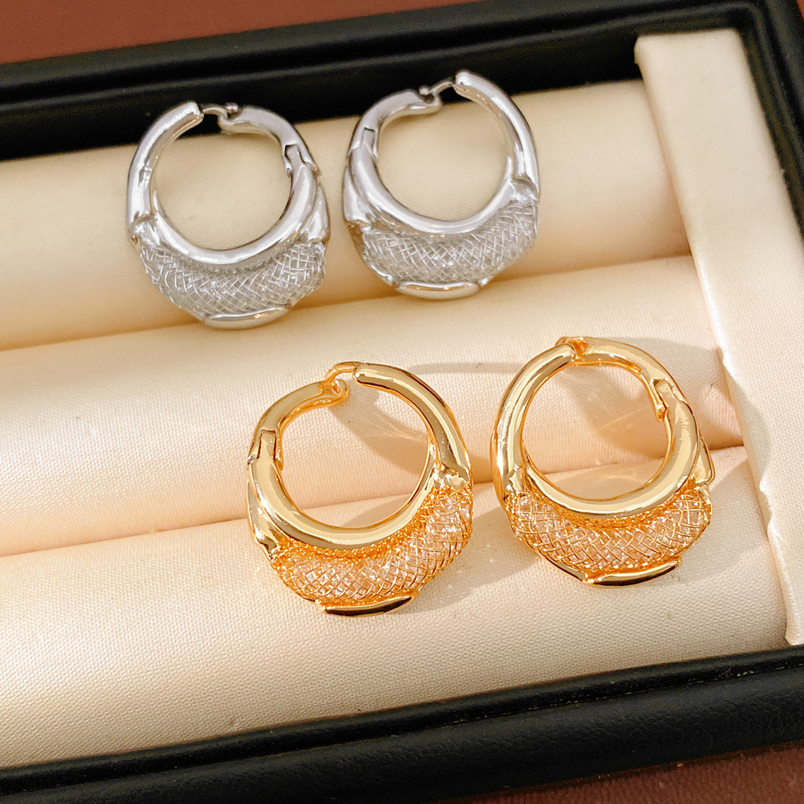 18k真金电镀镶锆石网格扭曲耳扣个性小众耳环轻奢高级感耳饰批发