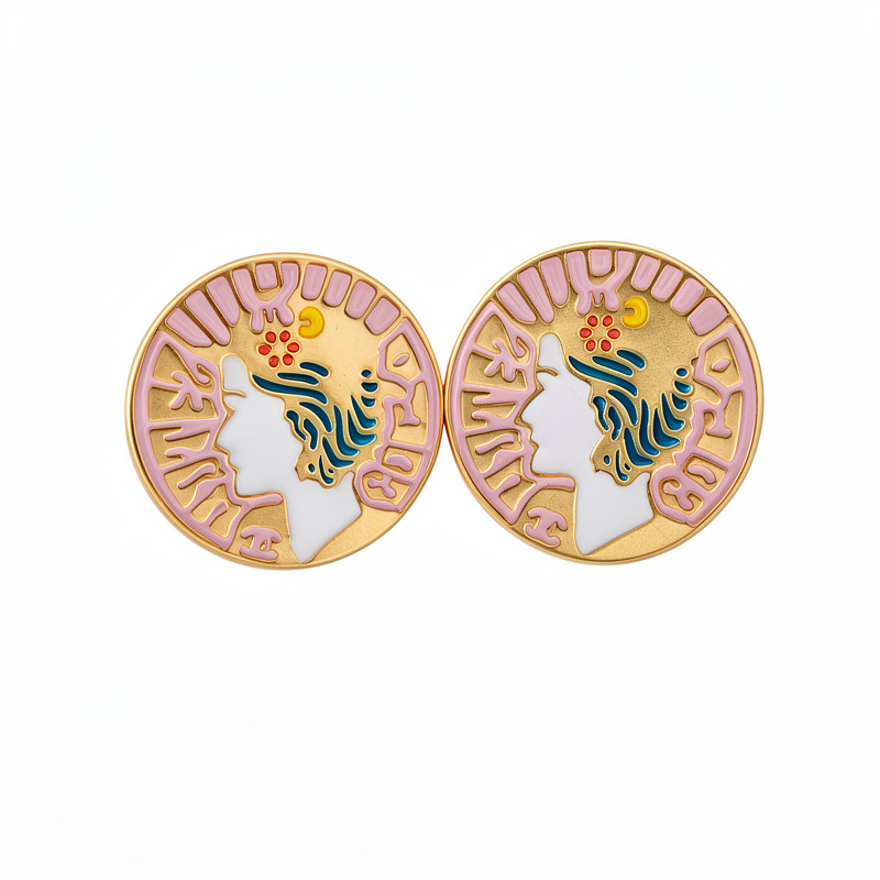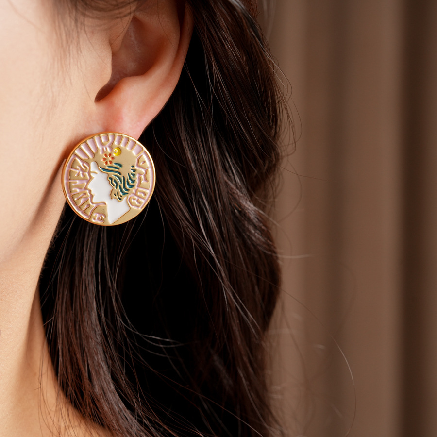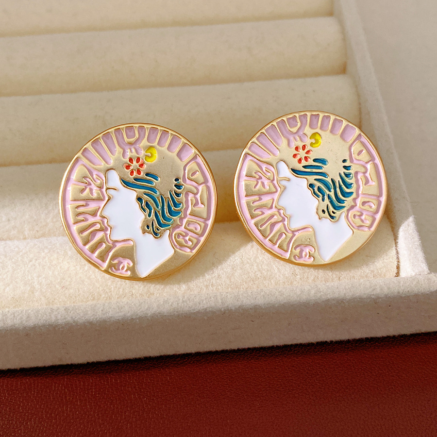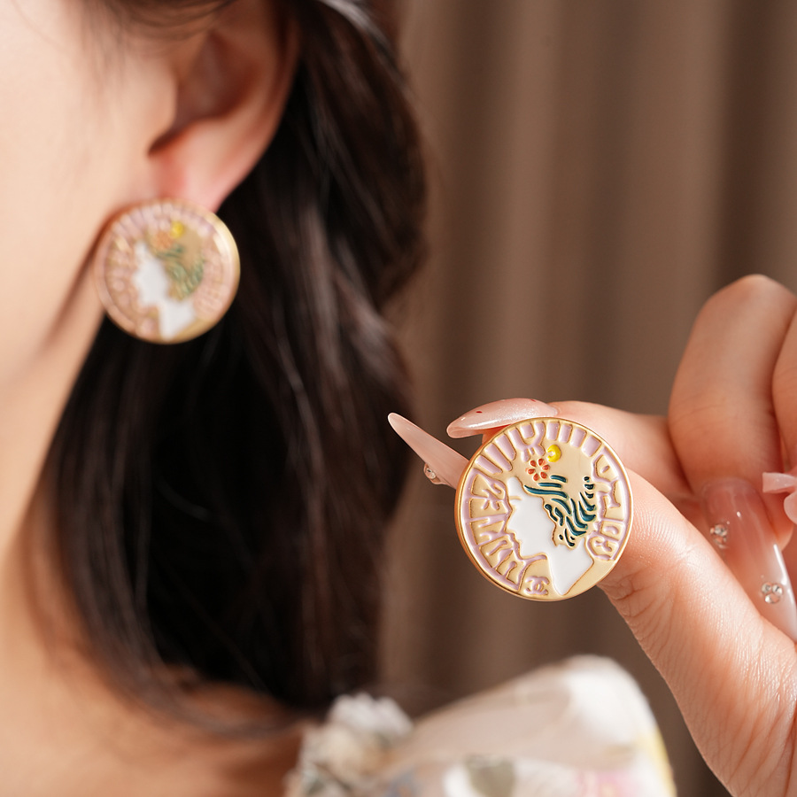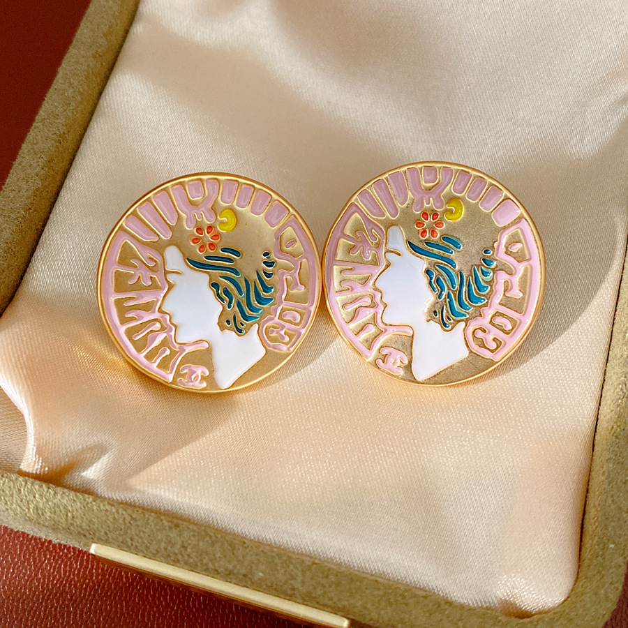 银针滴油几何圆形人像耳钉法式复古气质小众耳环轻奢高级感耳饰女