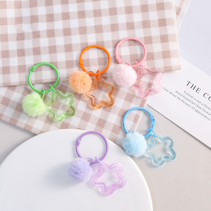彩色五角星挂毛球钥匙扣可爱小清新男女包包diy装饰挂件礼品批发