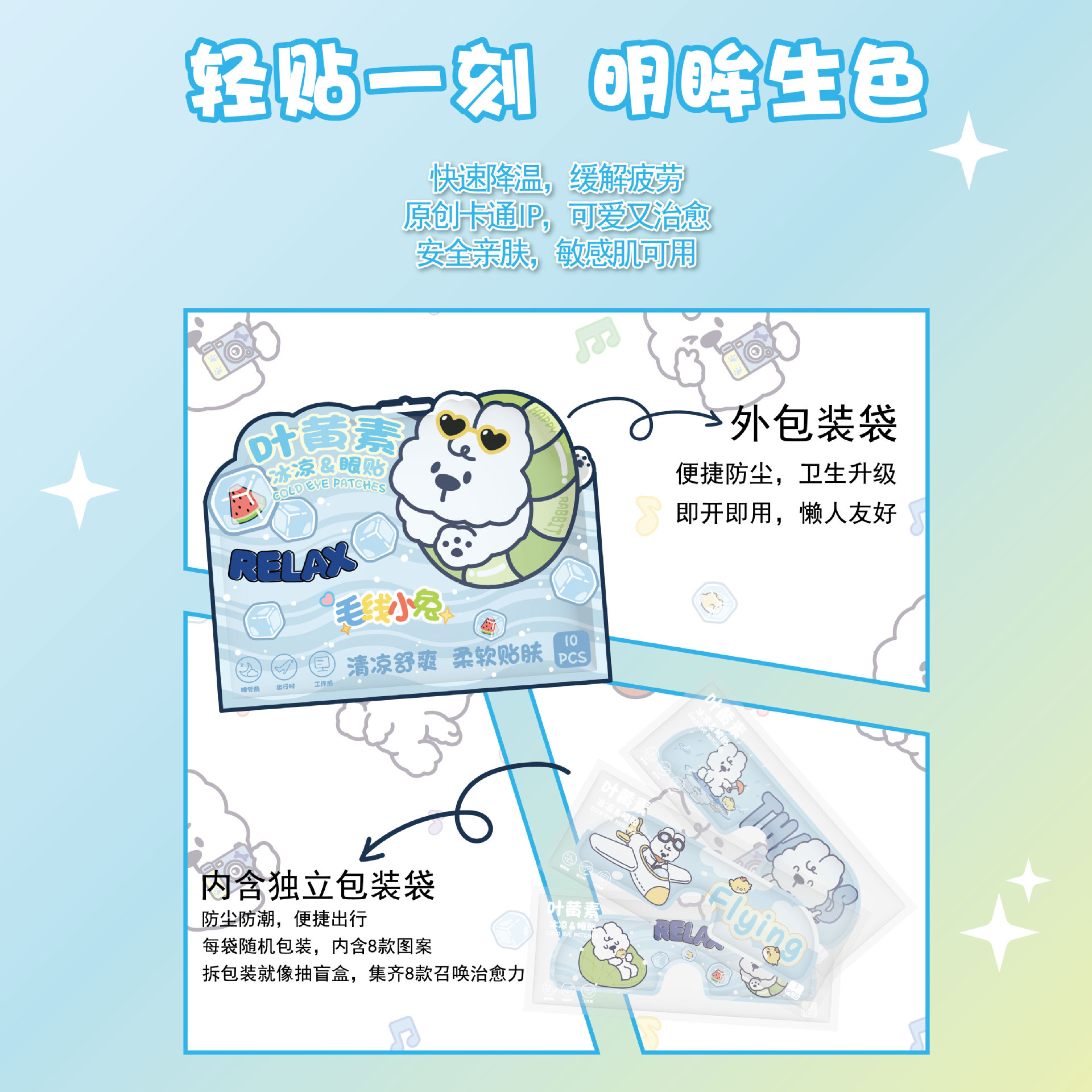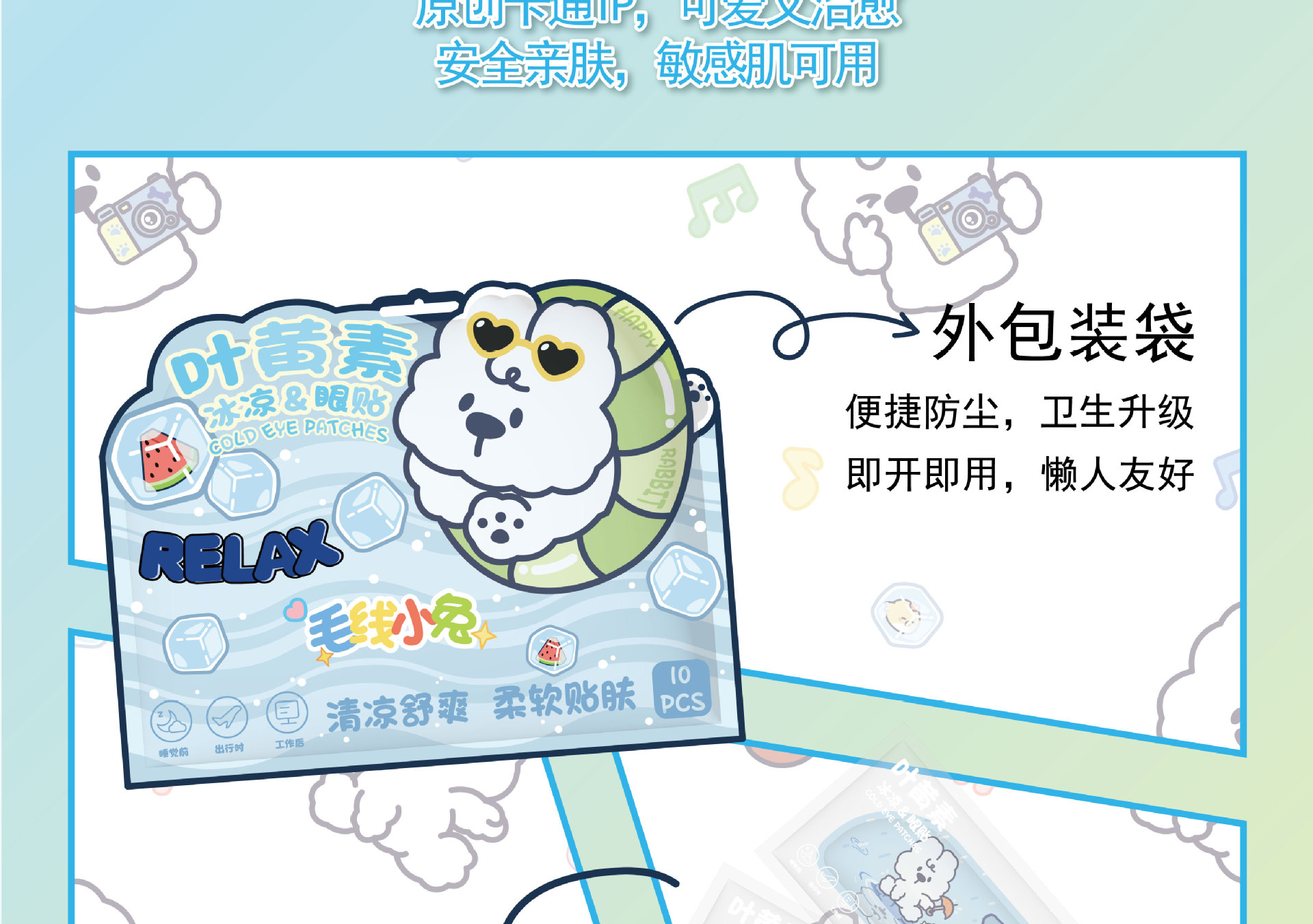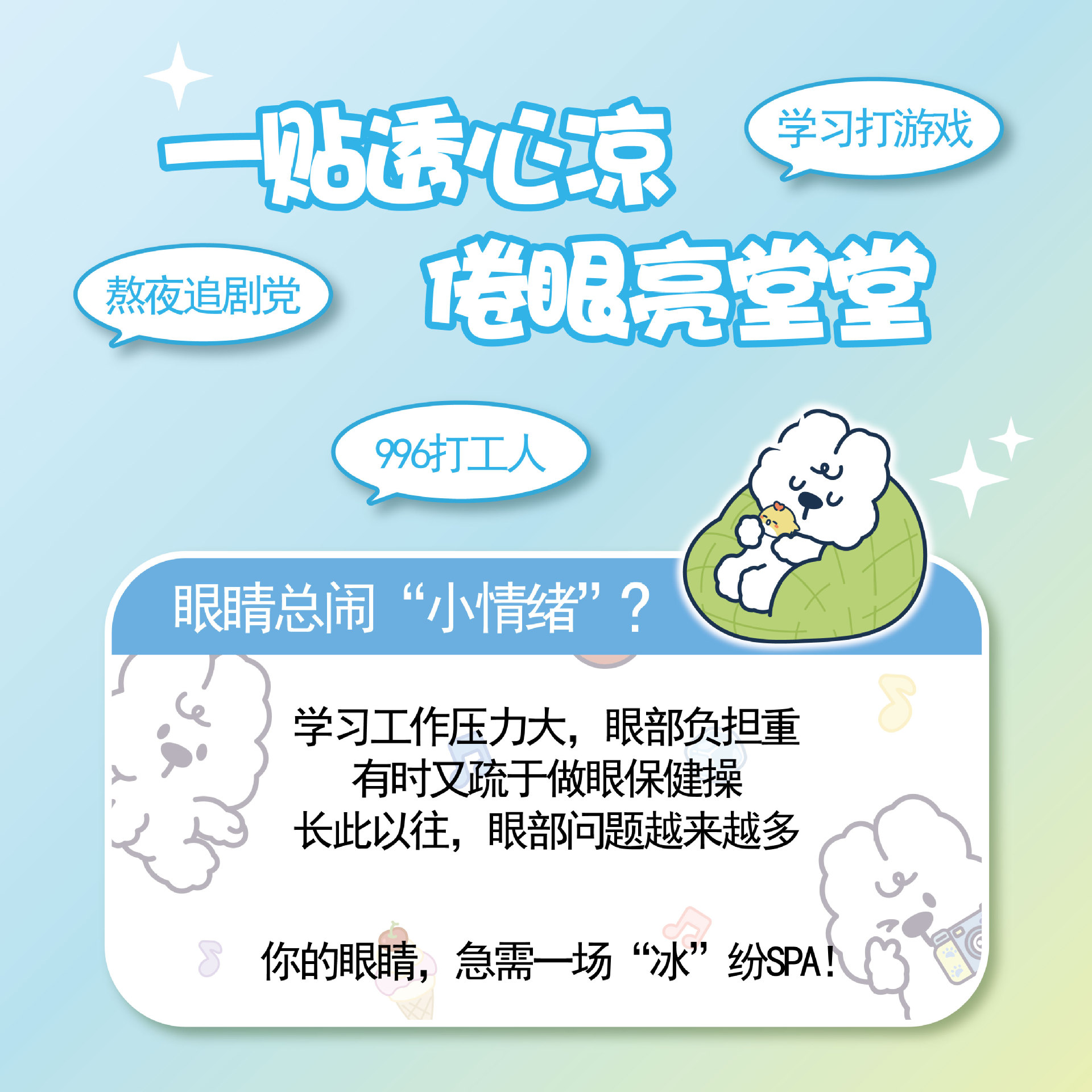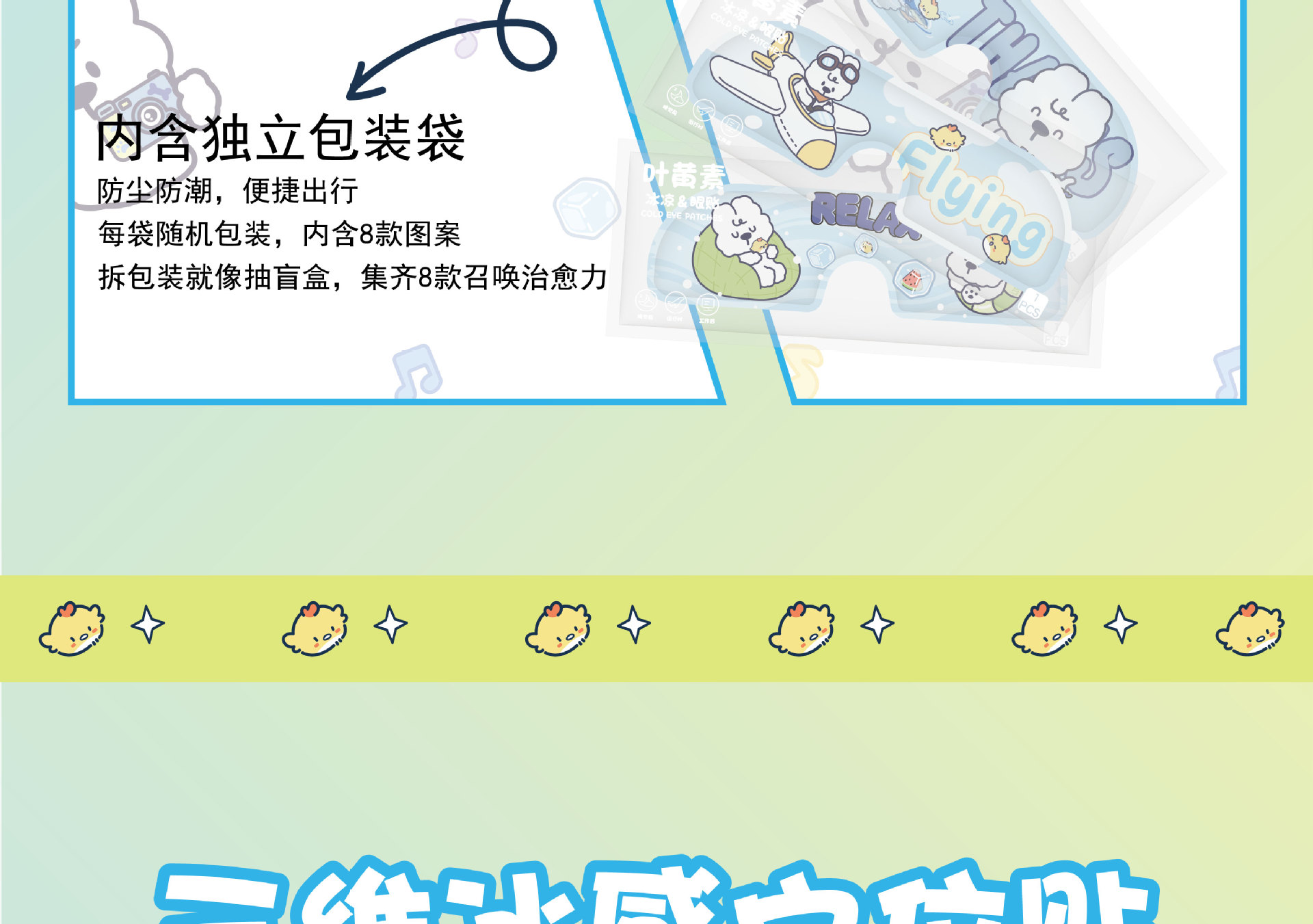 卡通叶黄素冰敷眼罩一次性睡眠冷敷遮光护眼罩冰爽凉感舒缓护眼贴