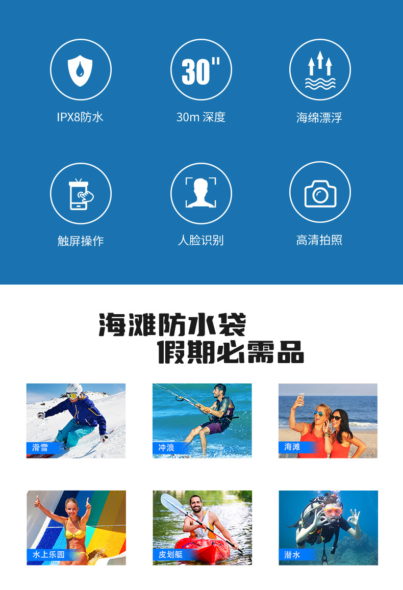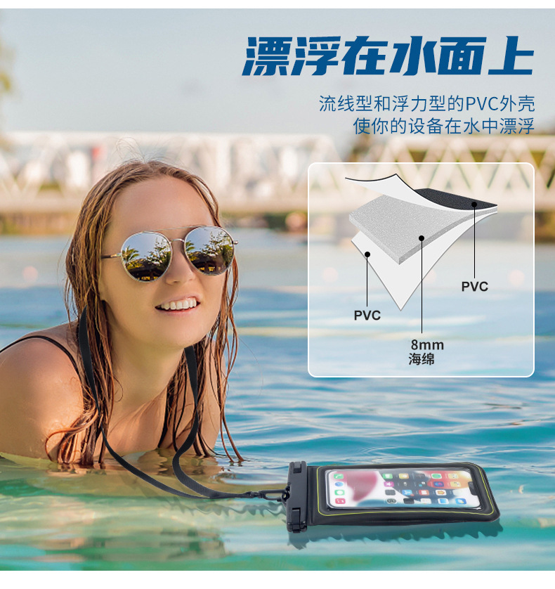 海绵漂浮手机防水袋可触屏手机套沙滩游泳潜水漂流专用手机防水套