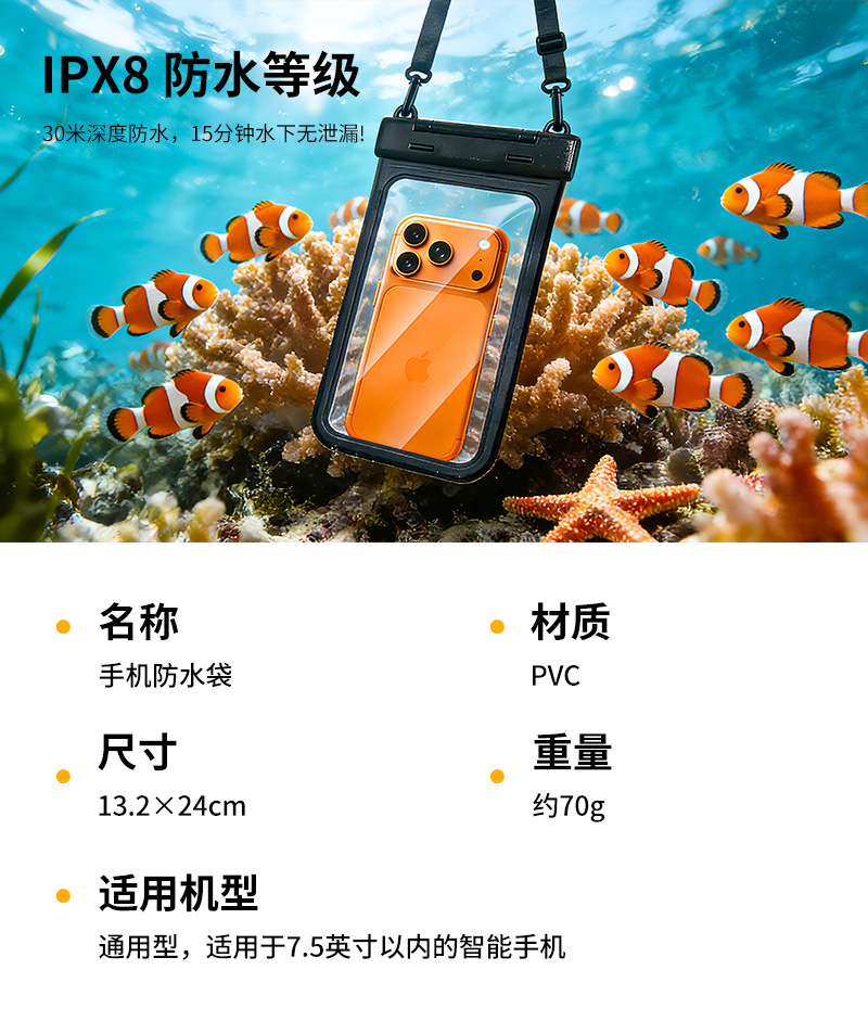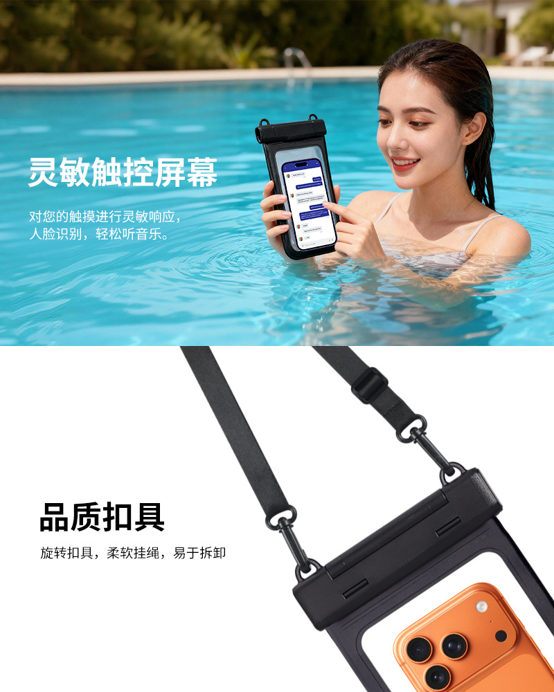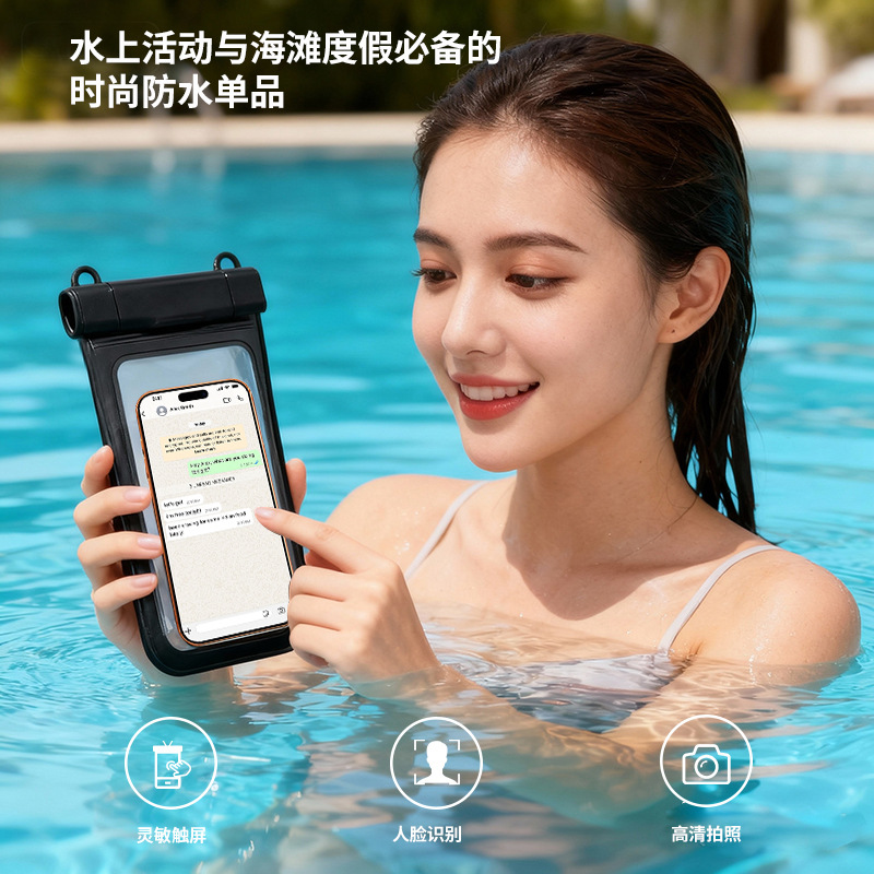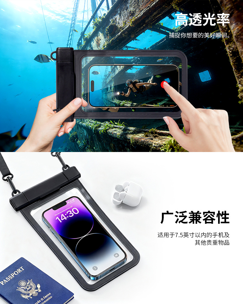 跨境爆款翻盖手机防水袋 户外游泳漂流溯溪漂流钓鱼PVC手机防水套
