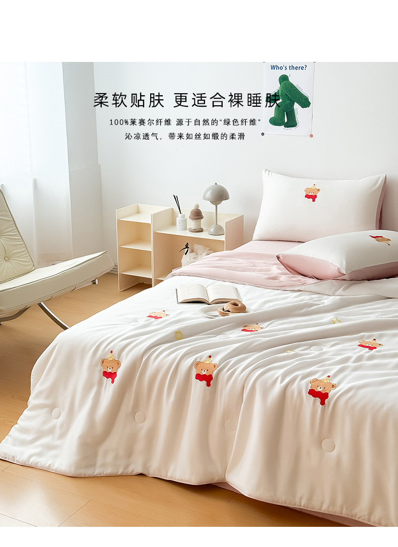 小红书ins风A类莱赛尔天丝绣花夏凉被四件套夏季凉感冰丝空调被薄
