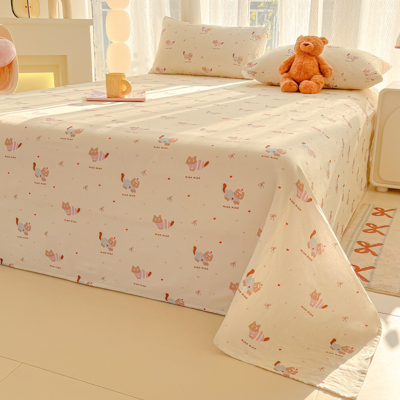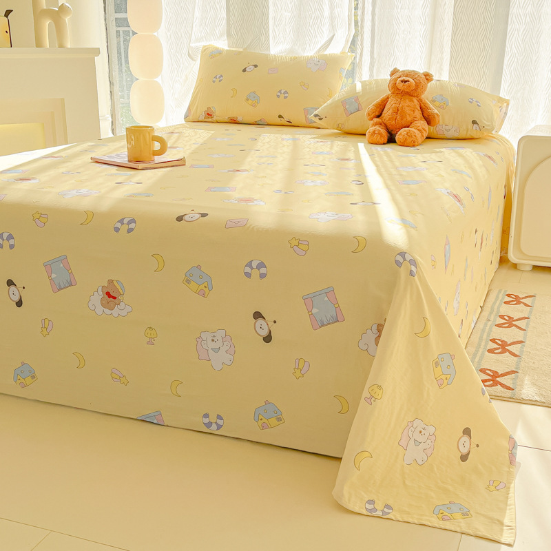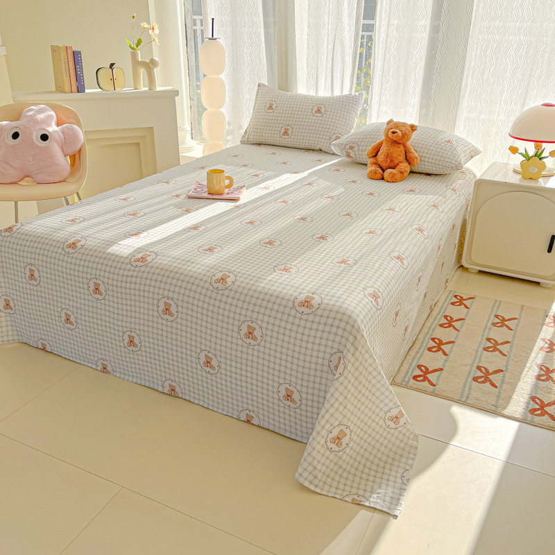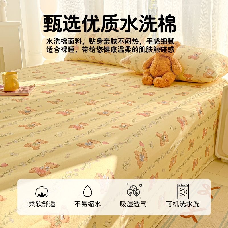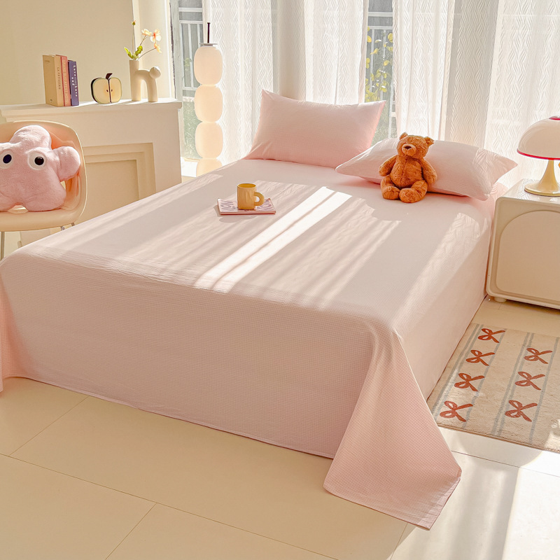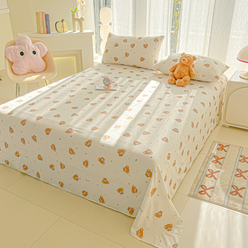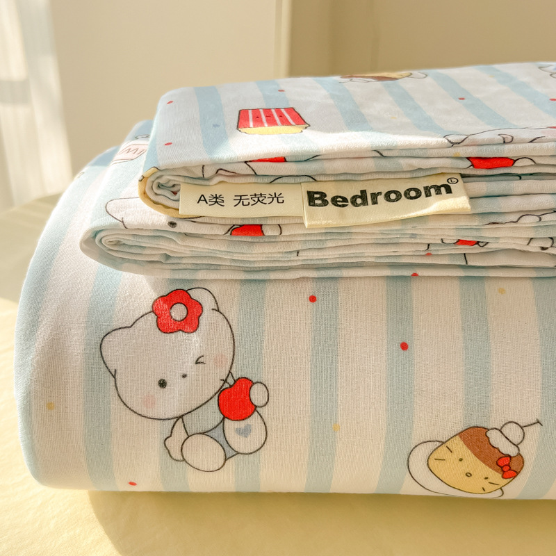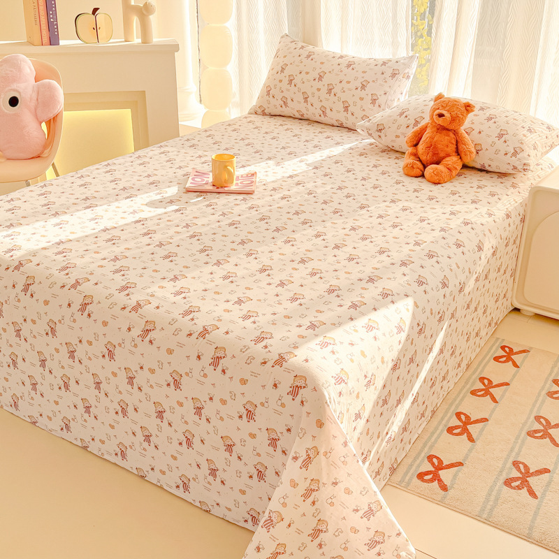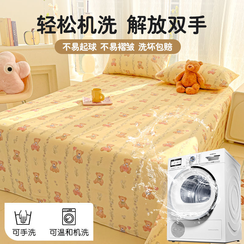 A类母婴100%水洗棉床单单件裸睡学生宿舍被单人枕头套床笠三件套