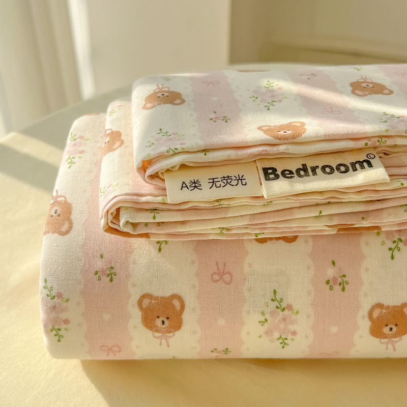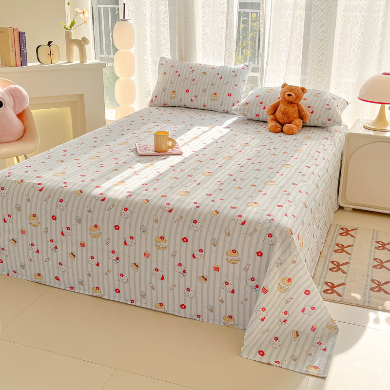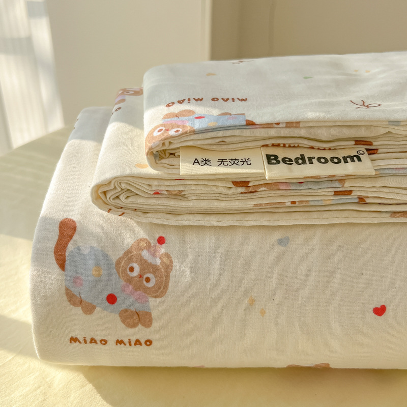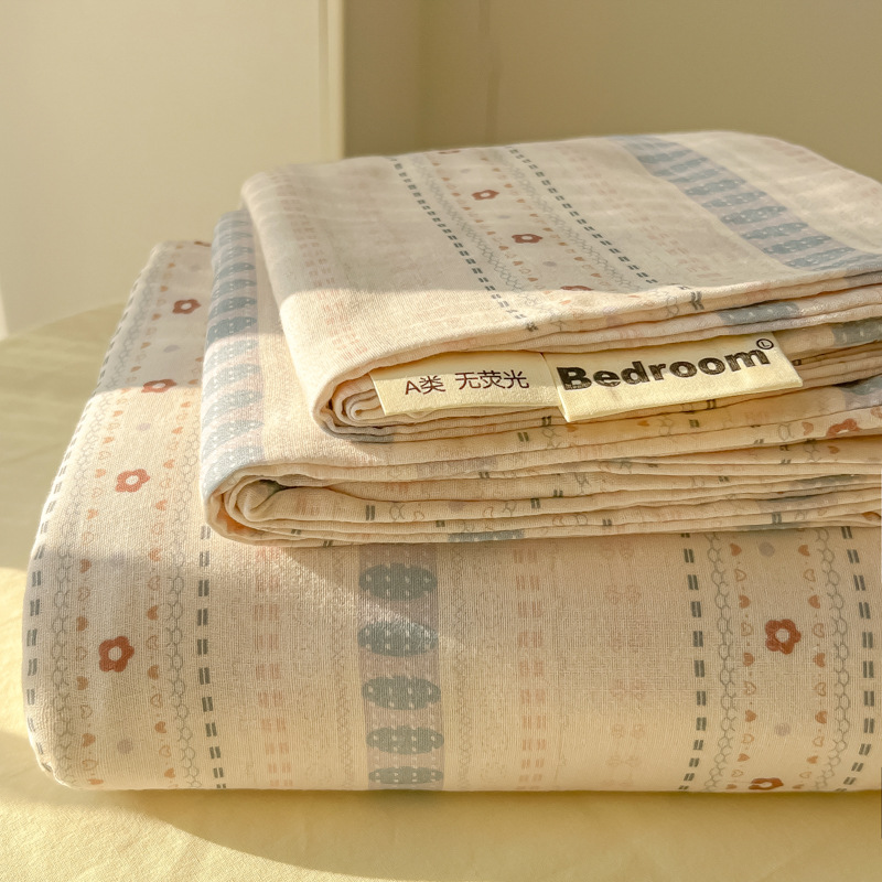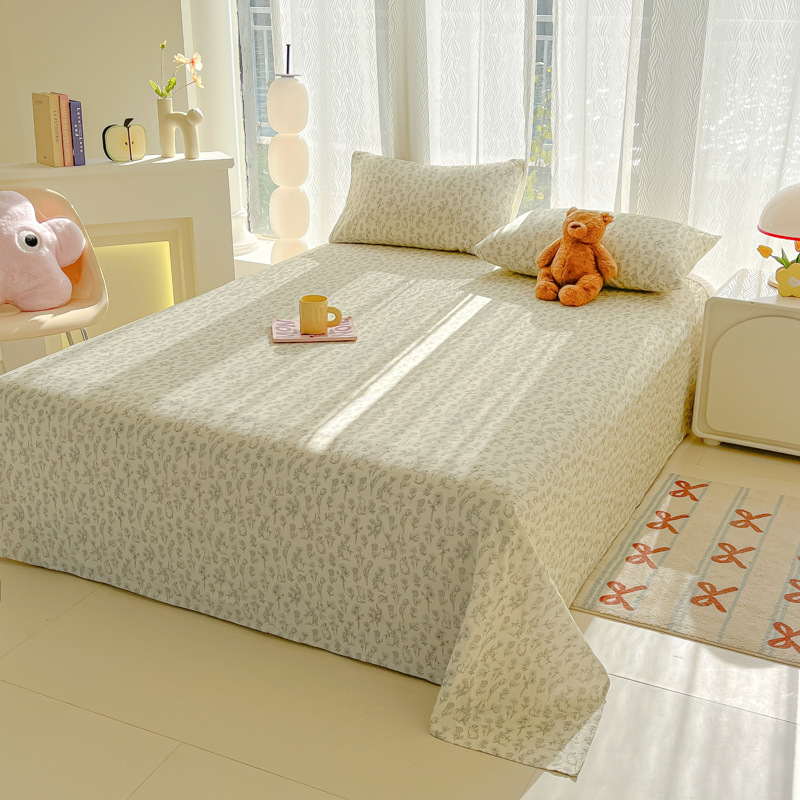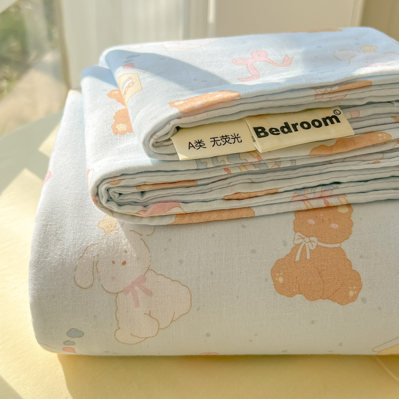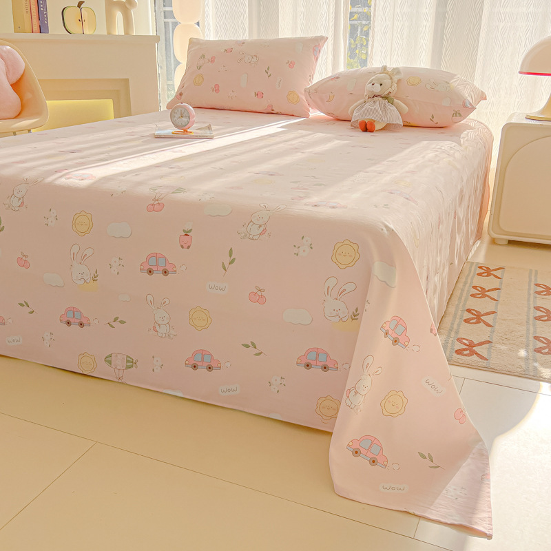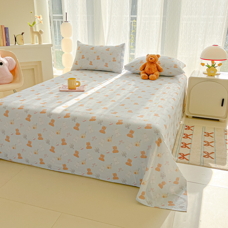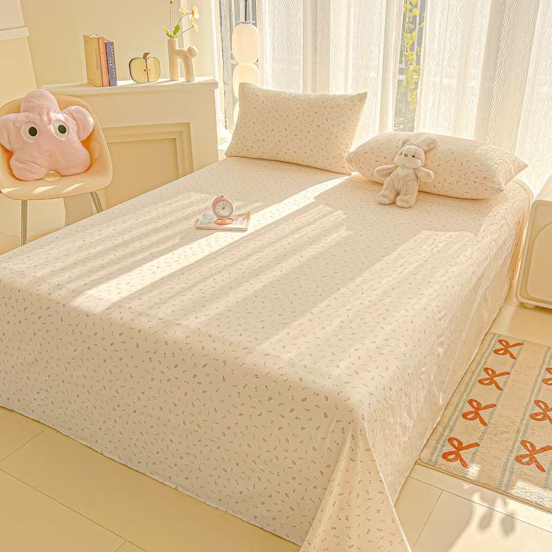 A类母婴100%水洗棉床单单件裸睡学生宿舍被单人枕头套床笠三件套