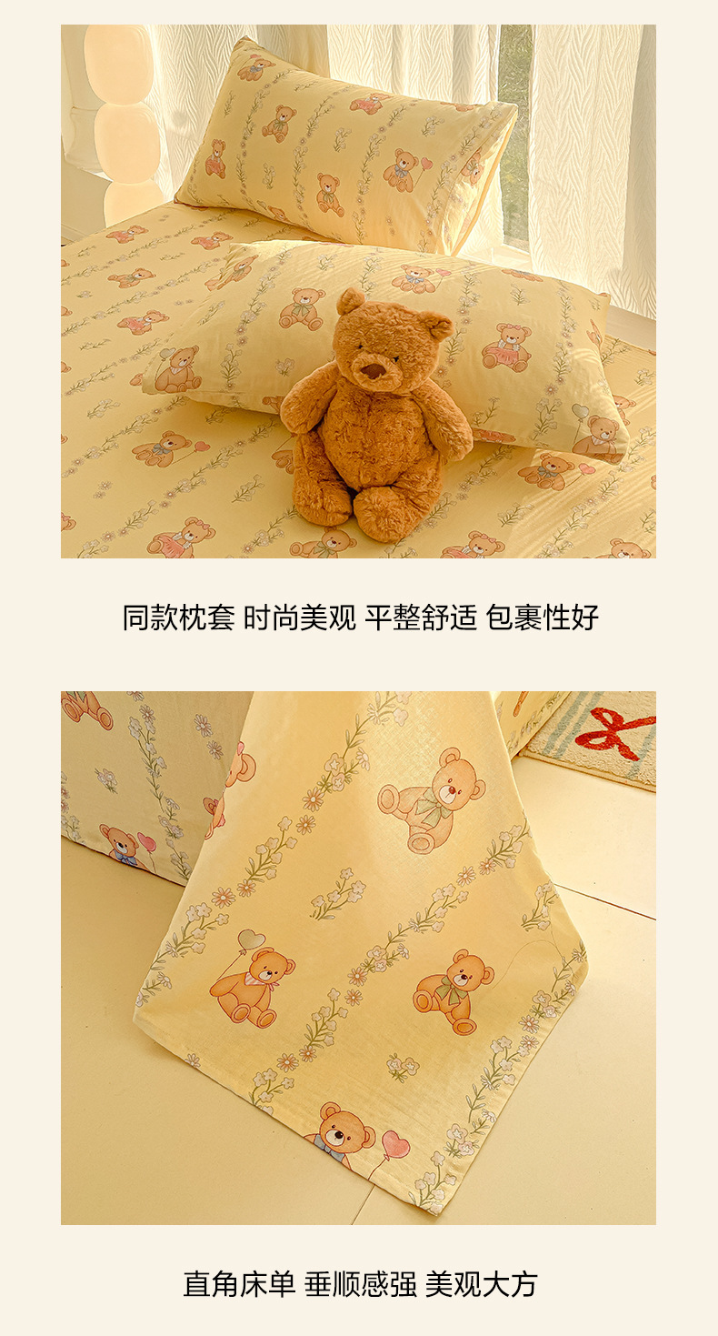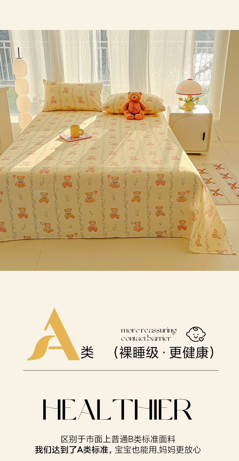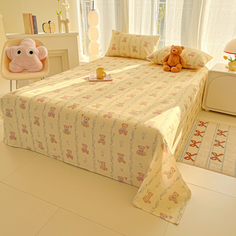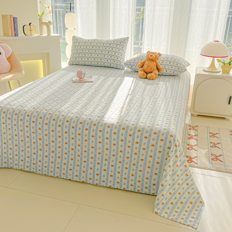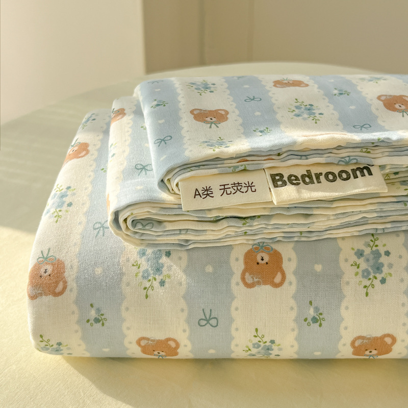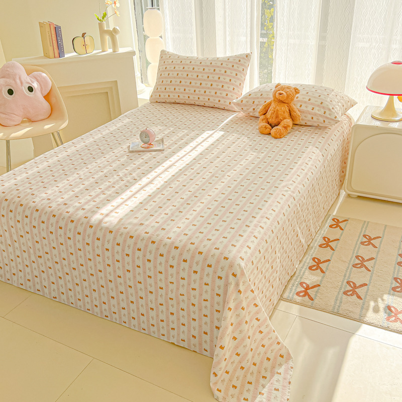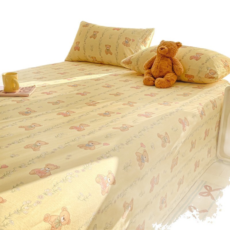 A类母婴100%水洗棉床单单件裸睡学生宿舍被单人枕头套床笠三件套