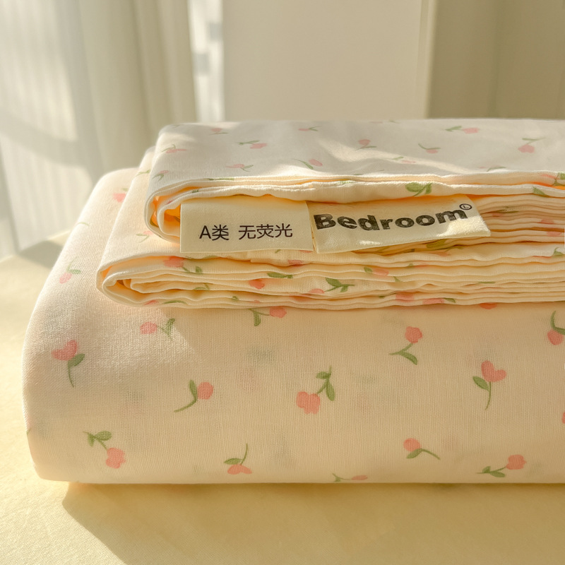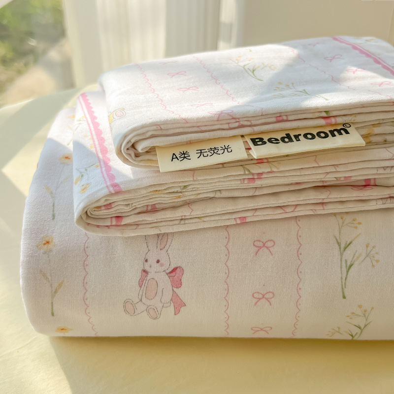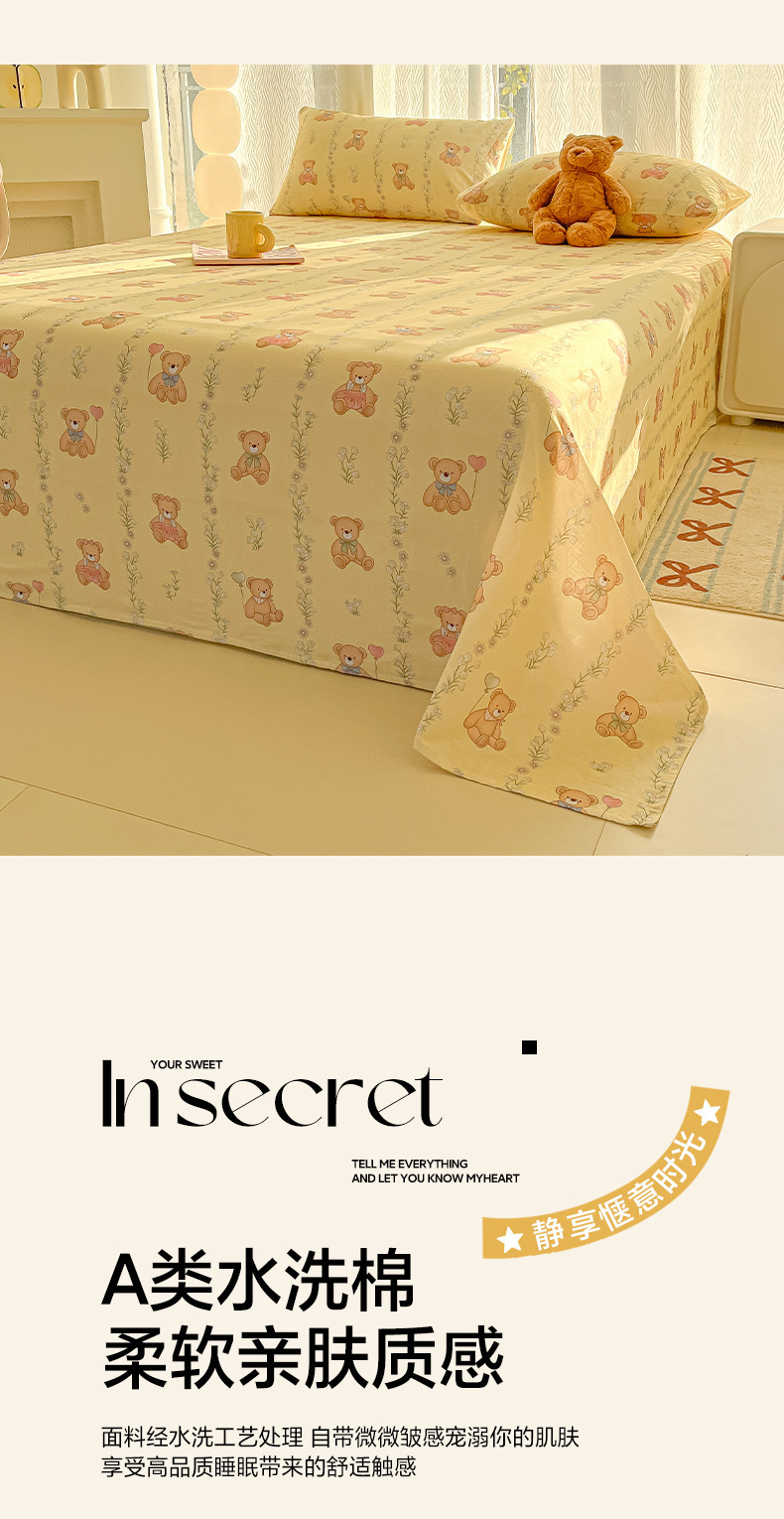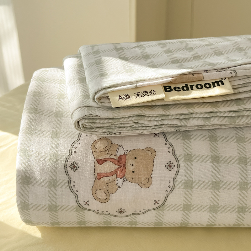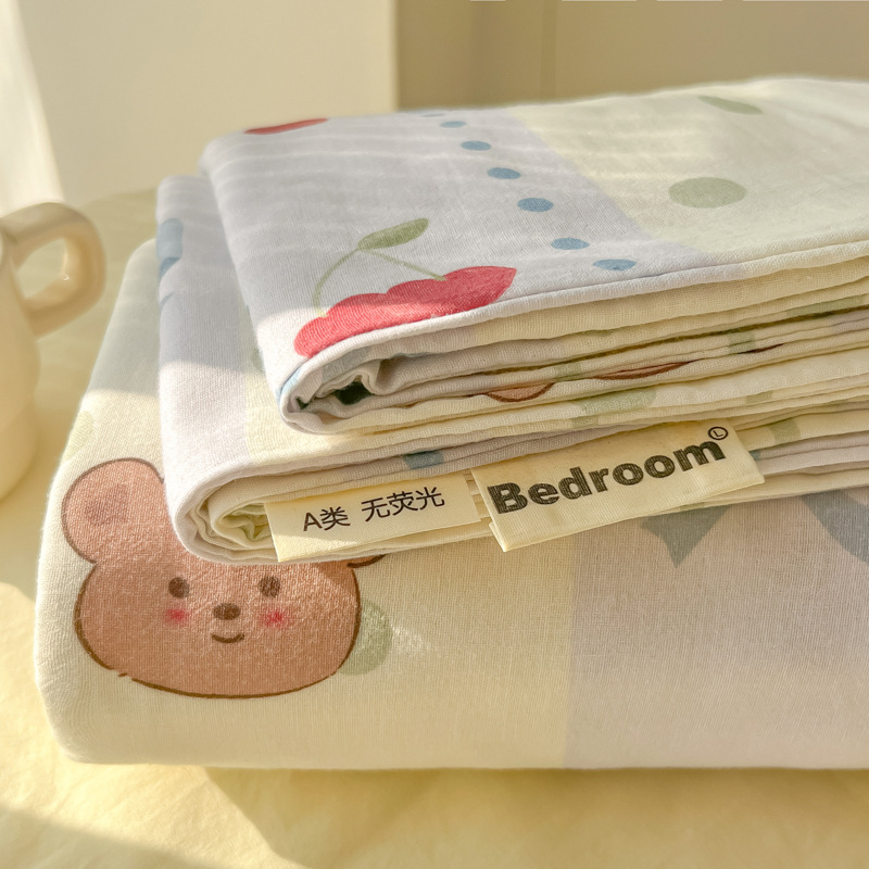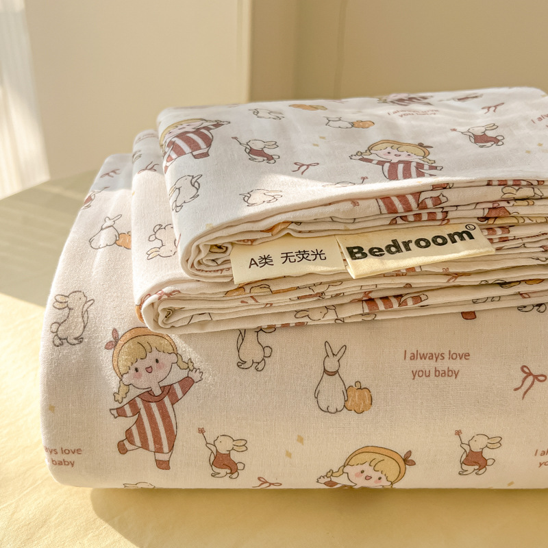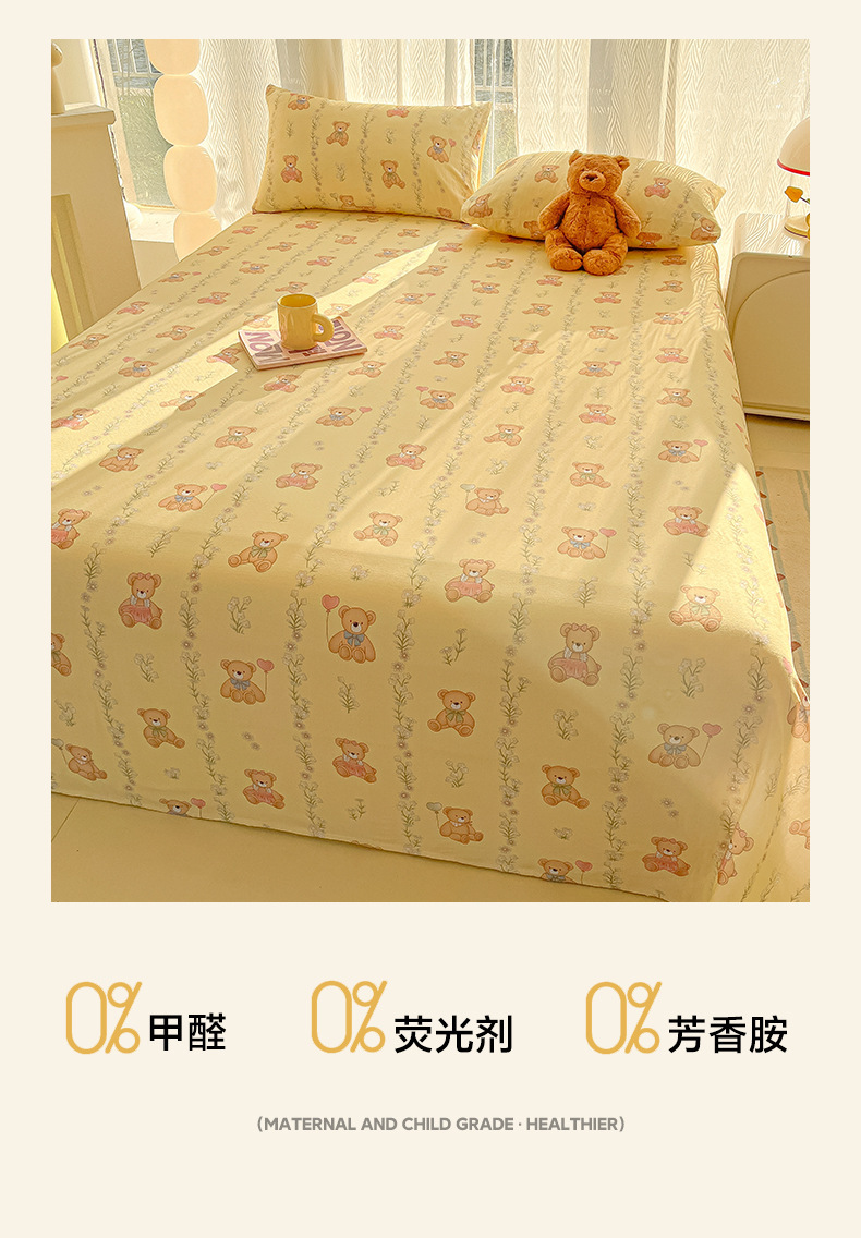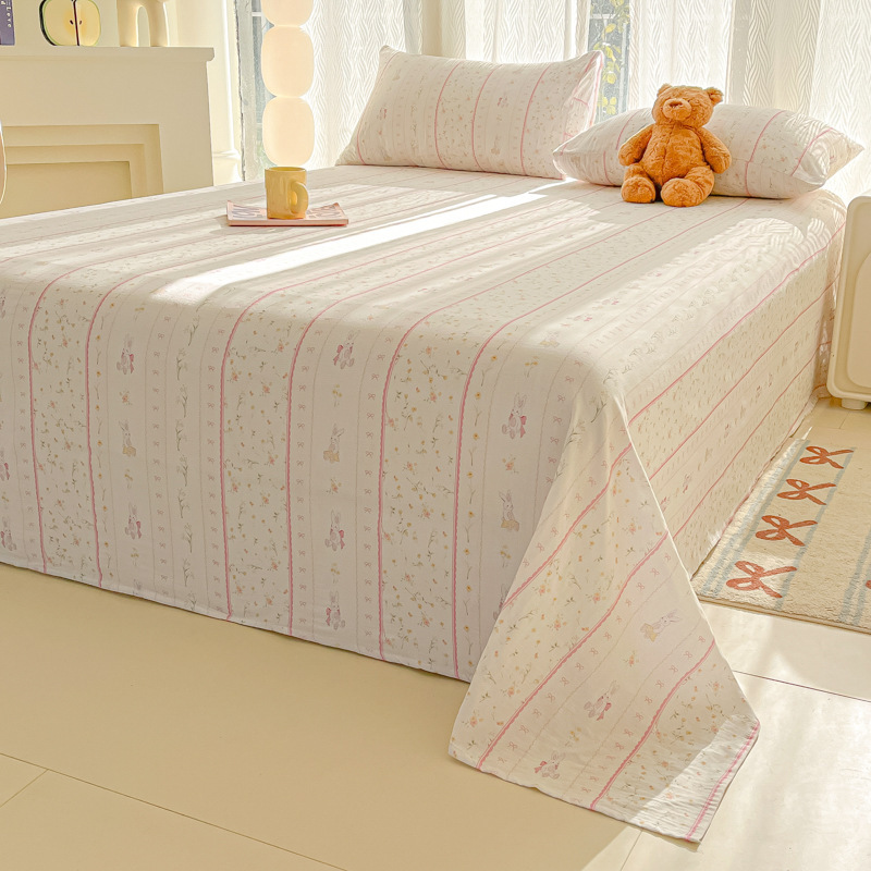 A类母婴100%水洗棉床单单件裸睡学生宿舍被单人枕头套床笠三件套