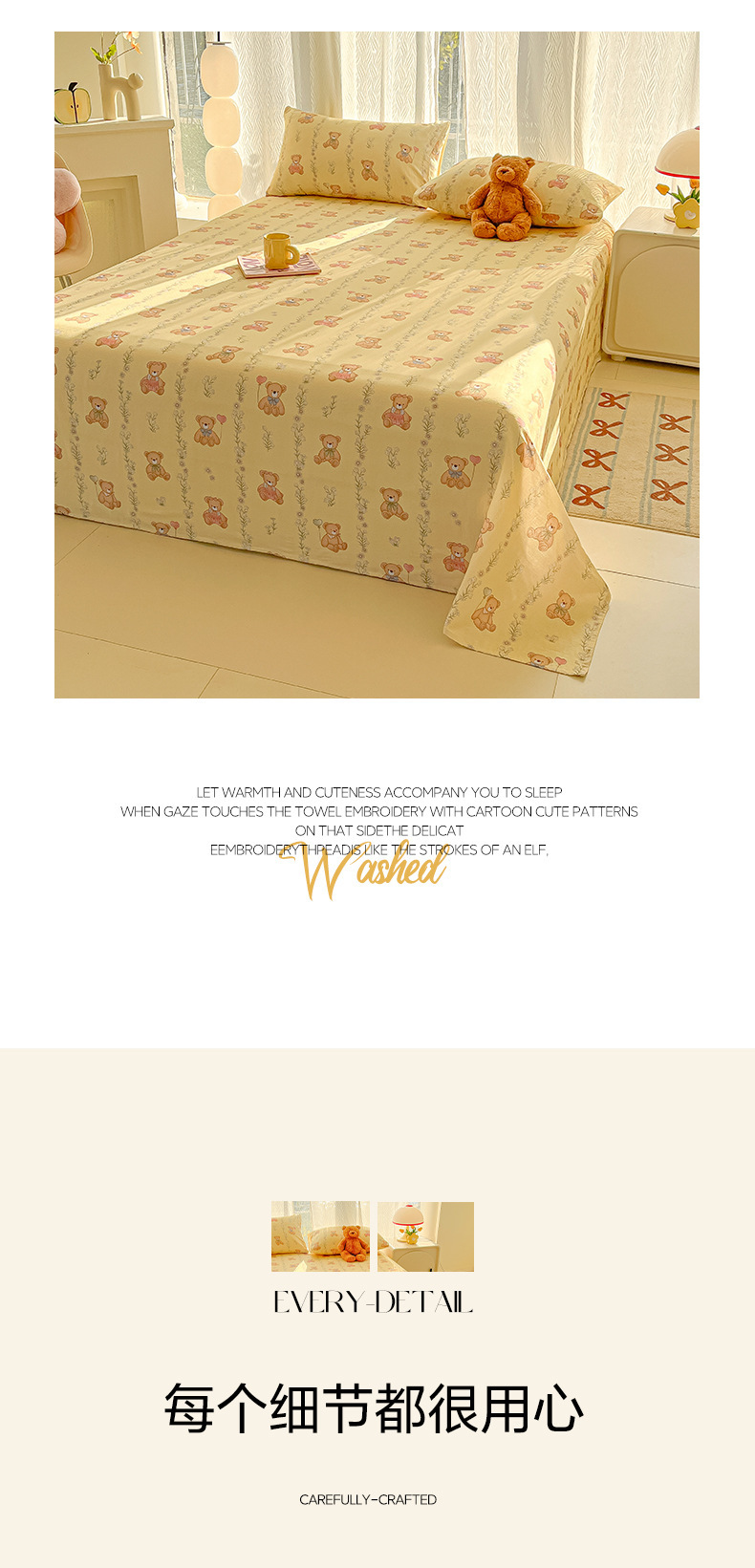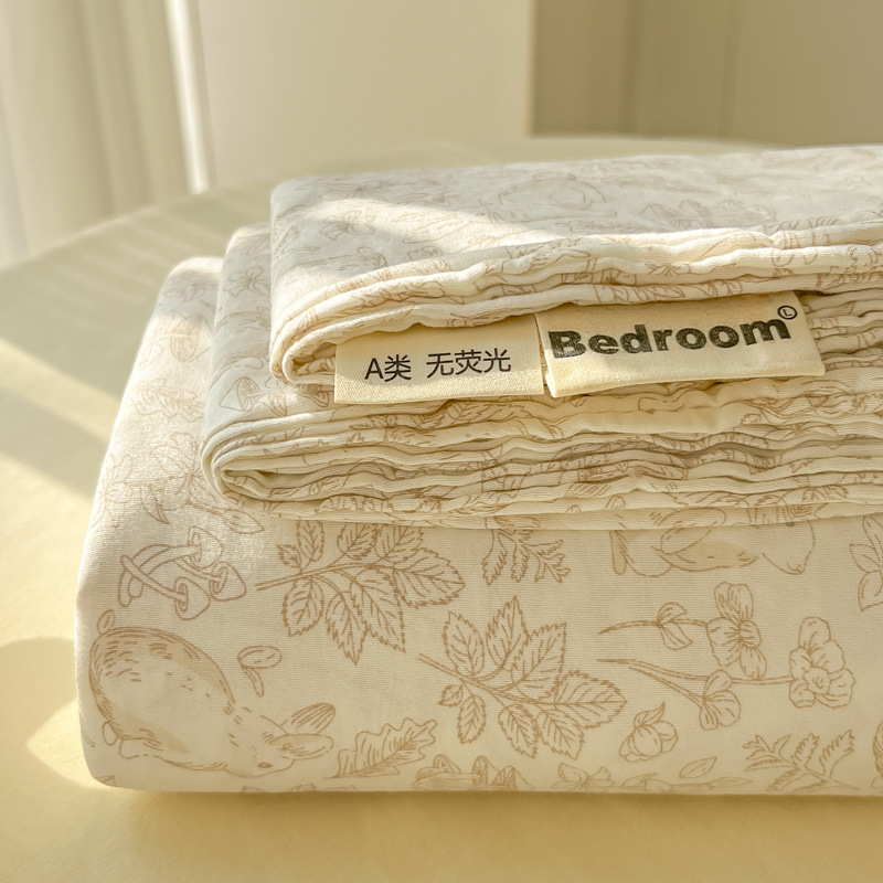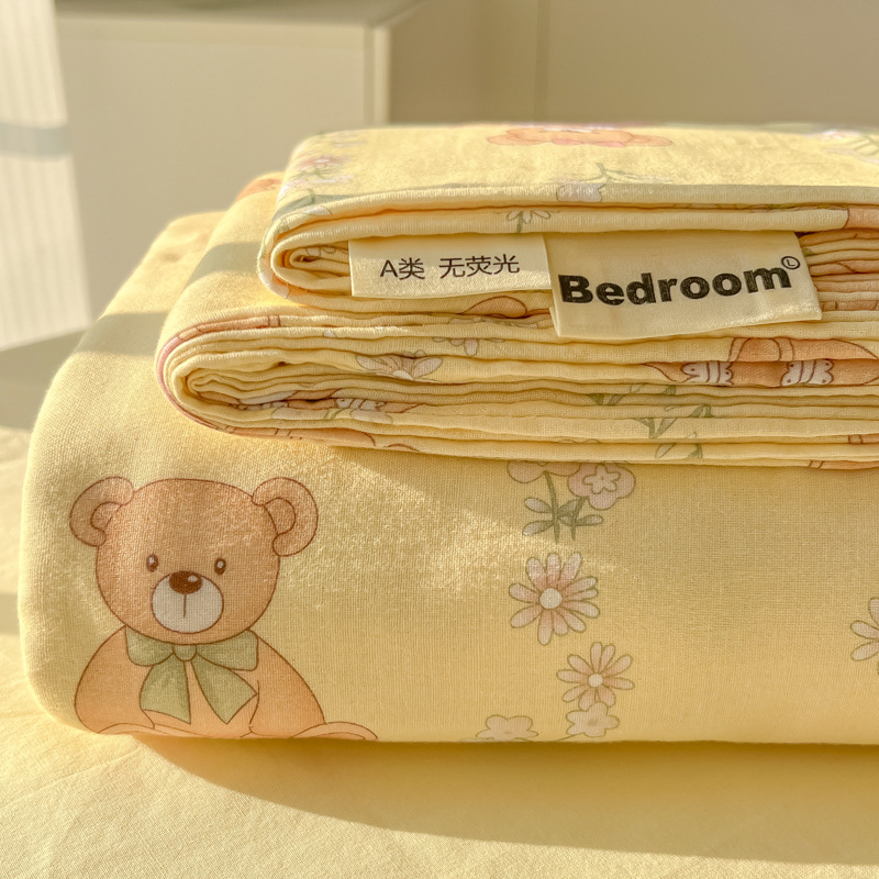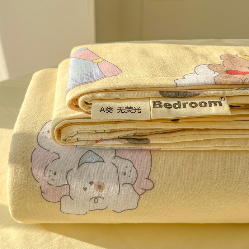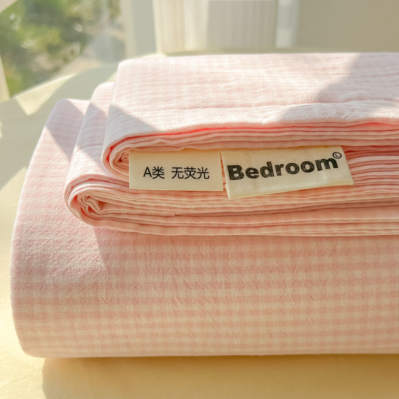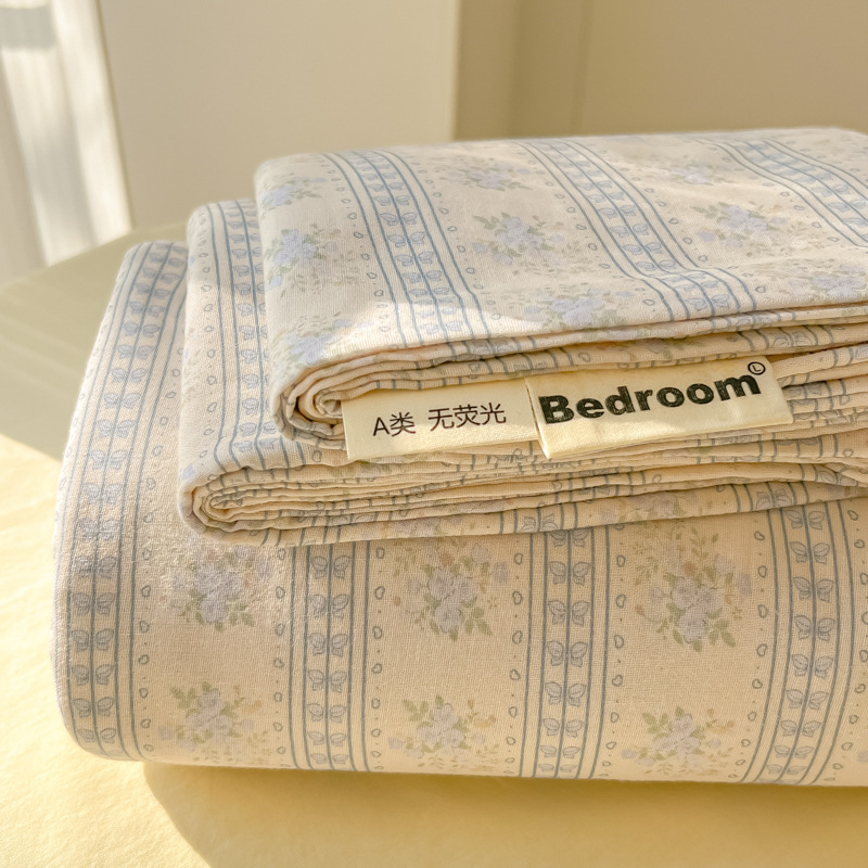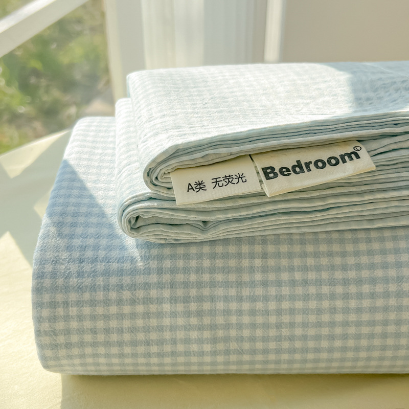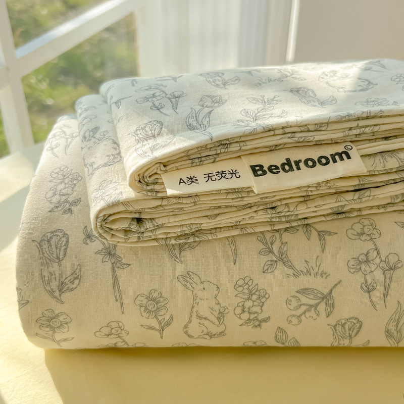 A类母婴100%水洗棉床单单件裸睡学生宿舍被单人枕头套床笠三件套