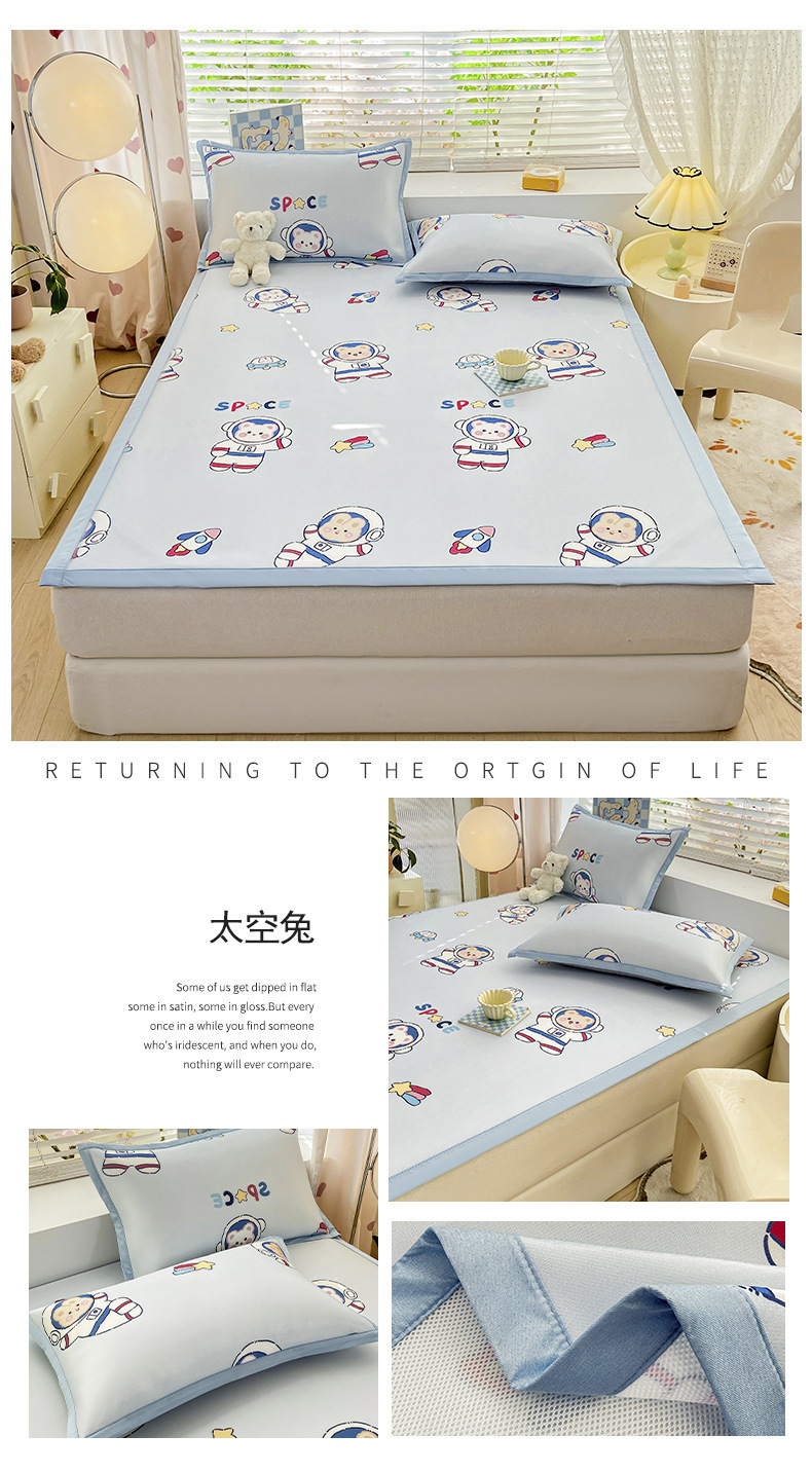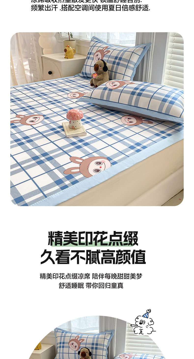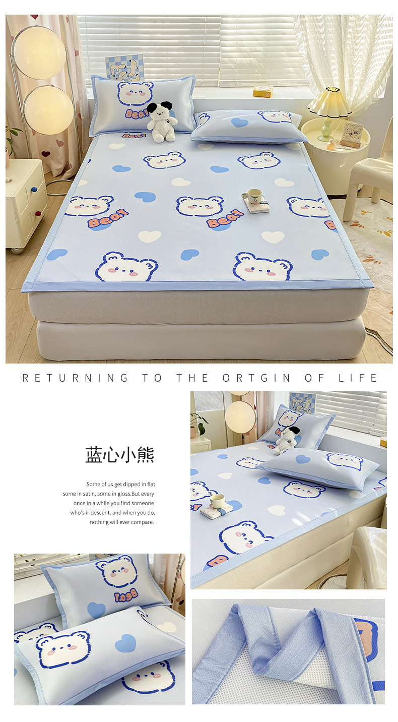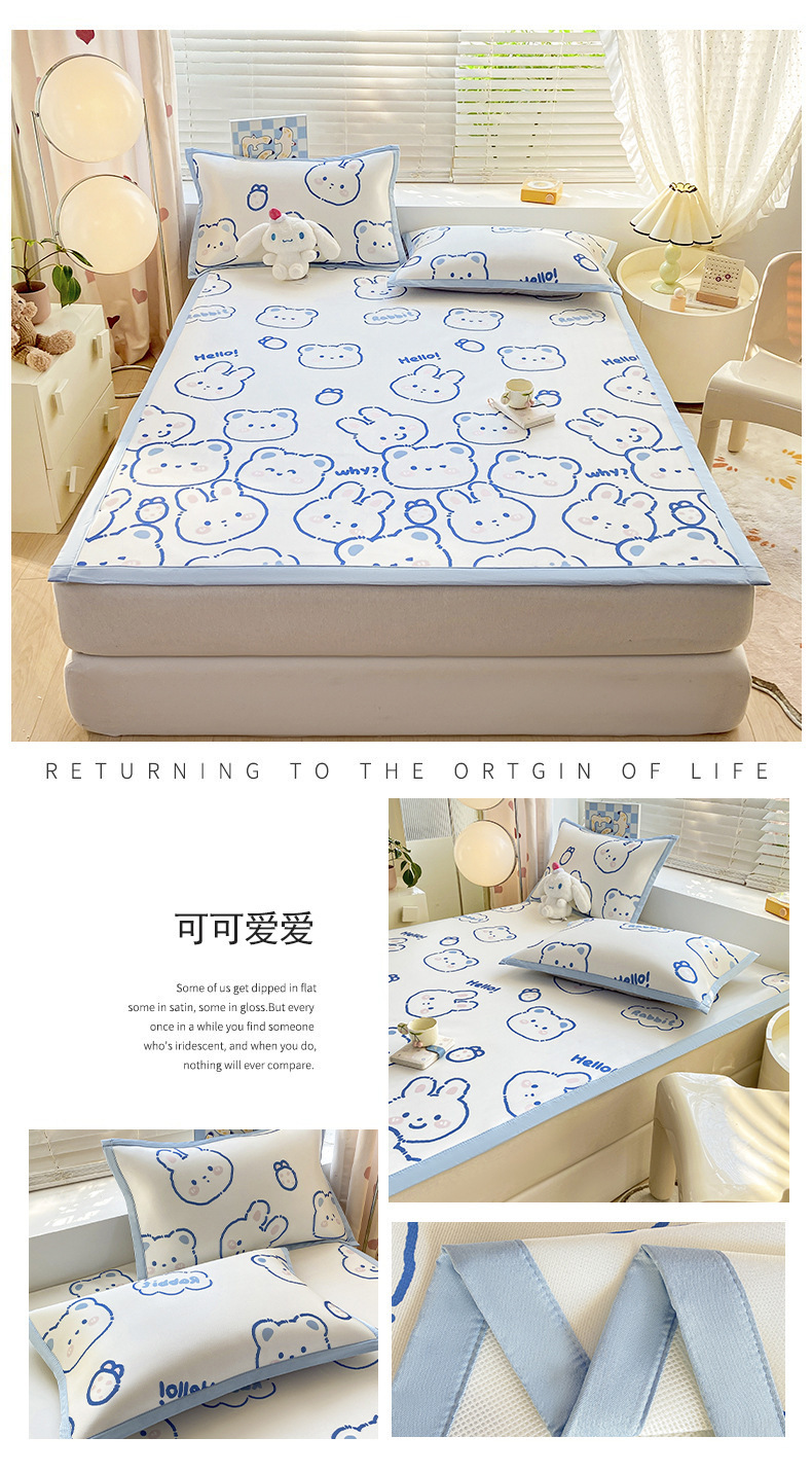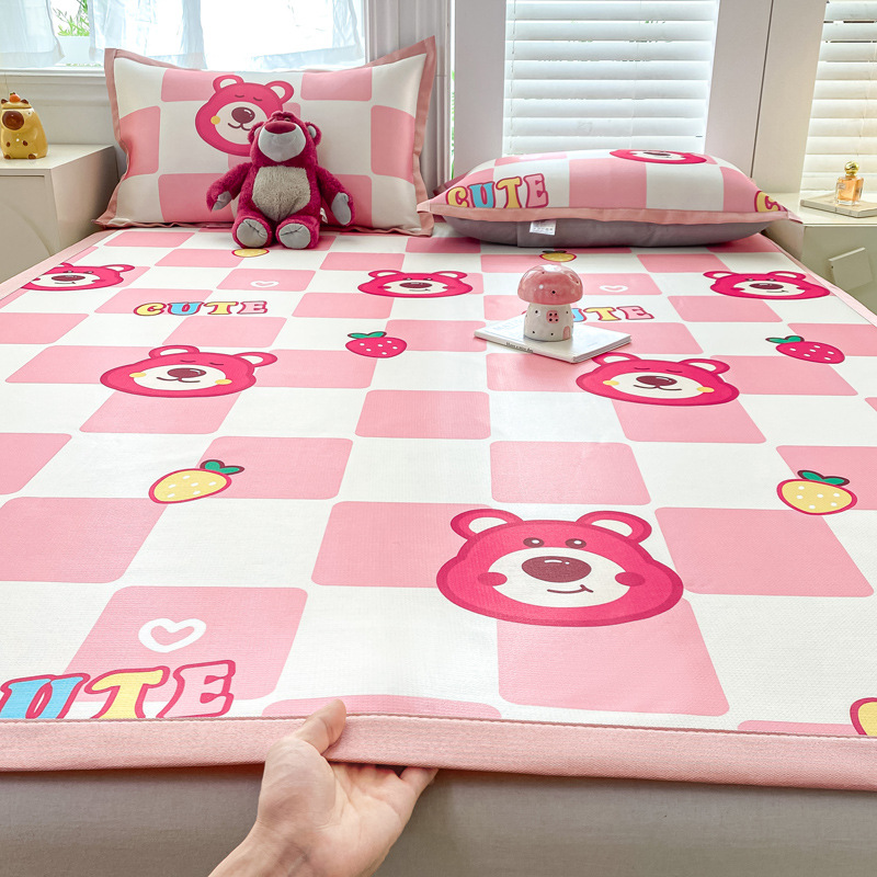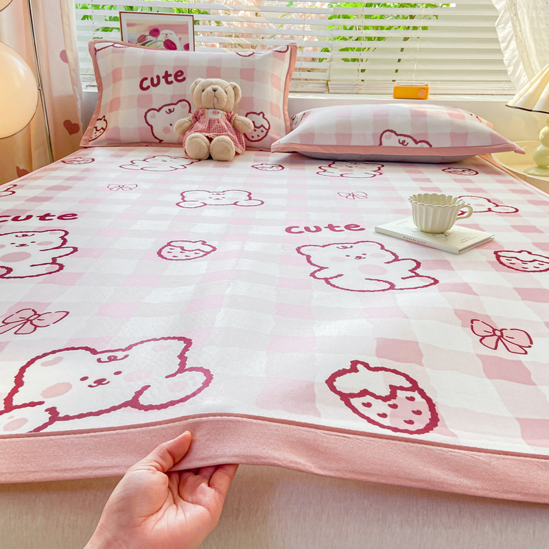 卡通ins风A类冰丝凉席三件套夏季空调软席可机洗学生宿舍床单席子