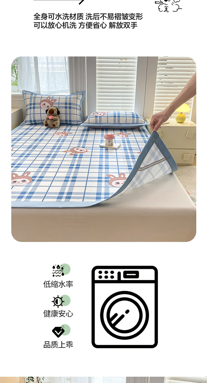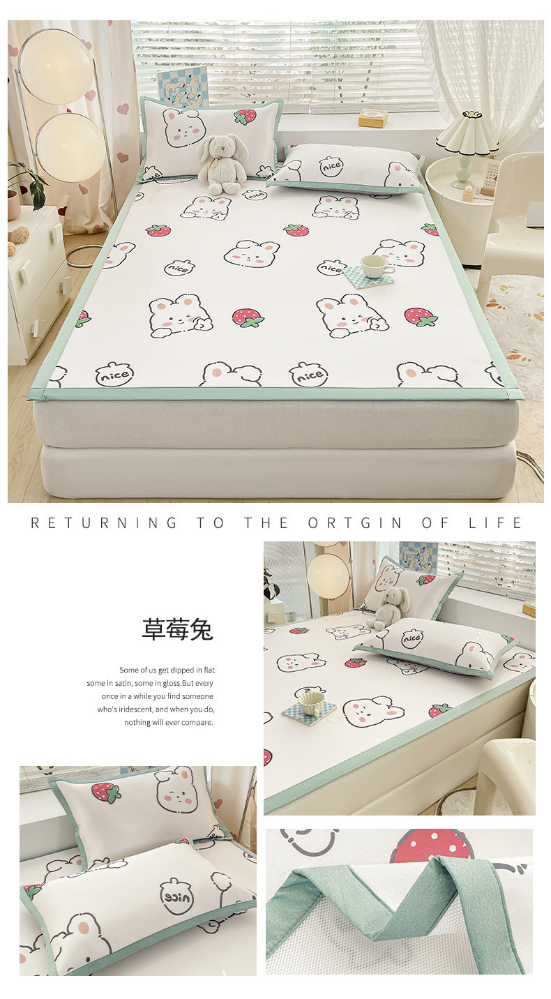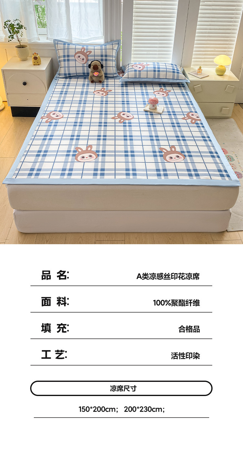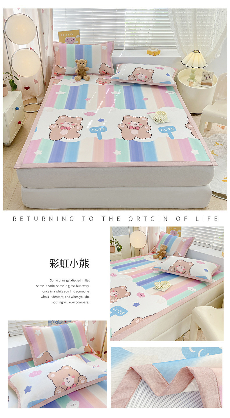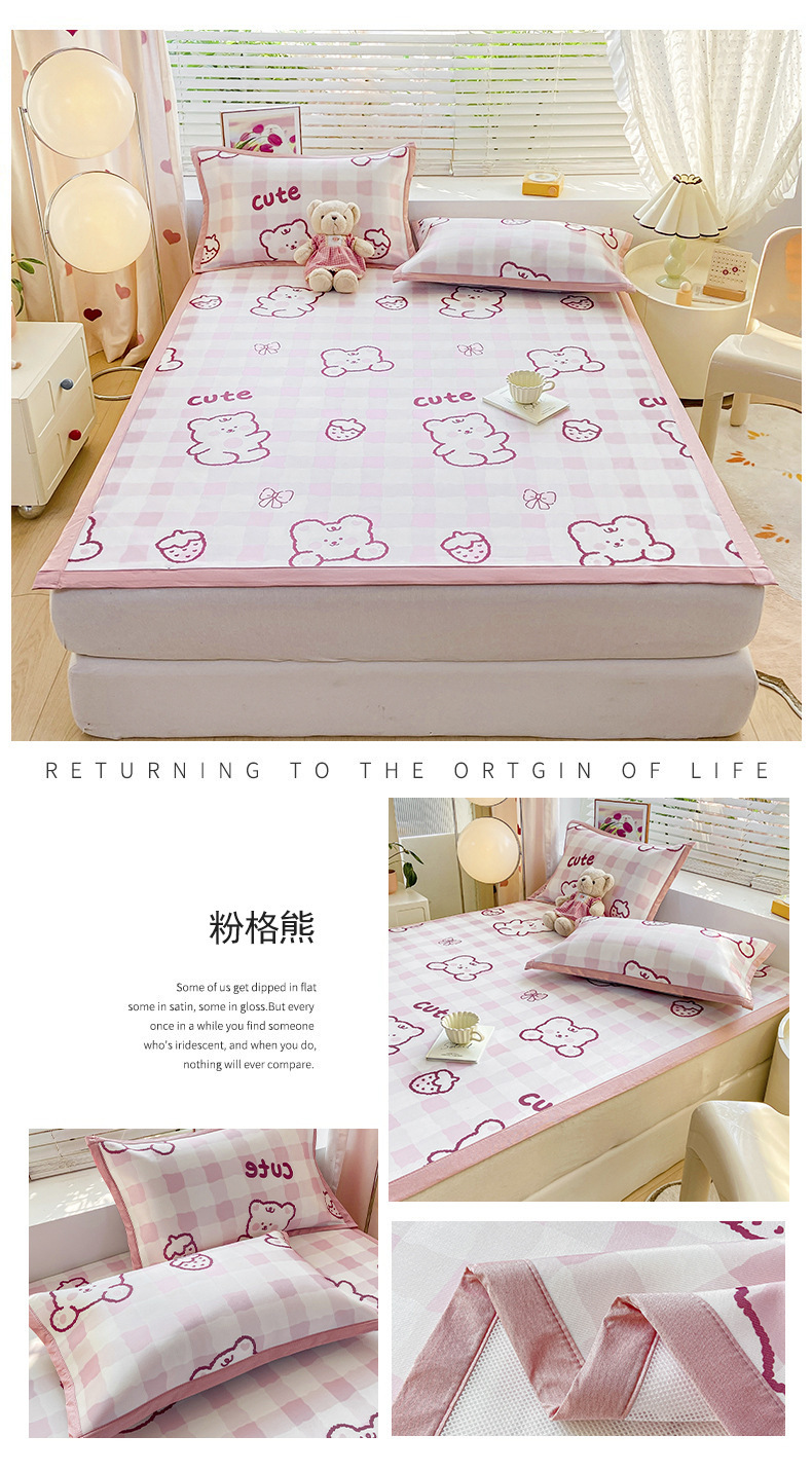 卡通ins风A类冰丝凉席三件套夏季空调软席可机洗学生宿舍床单席子