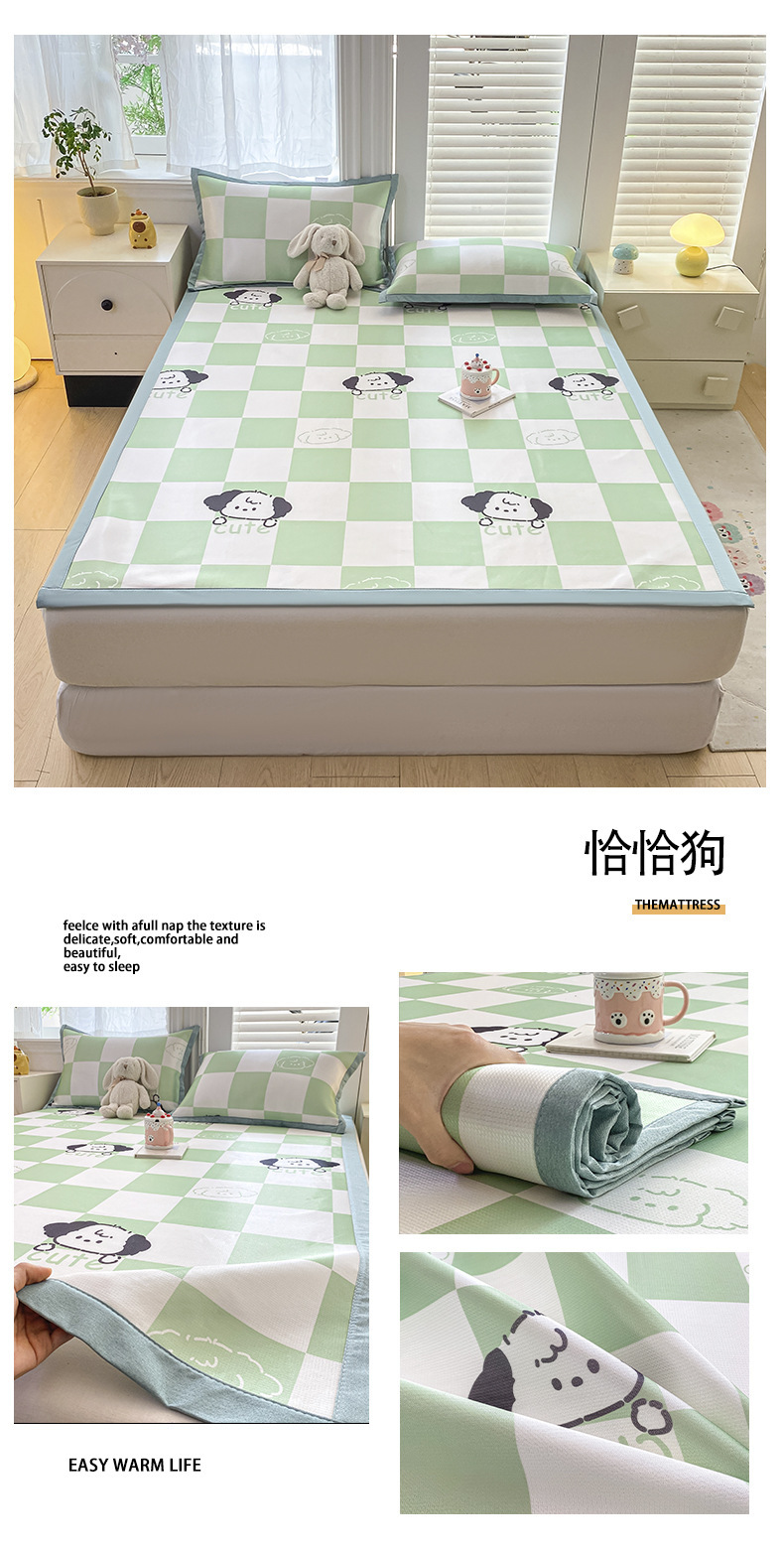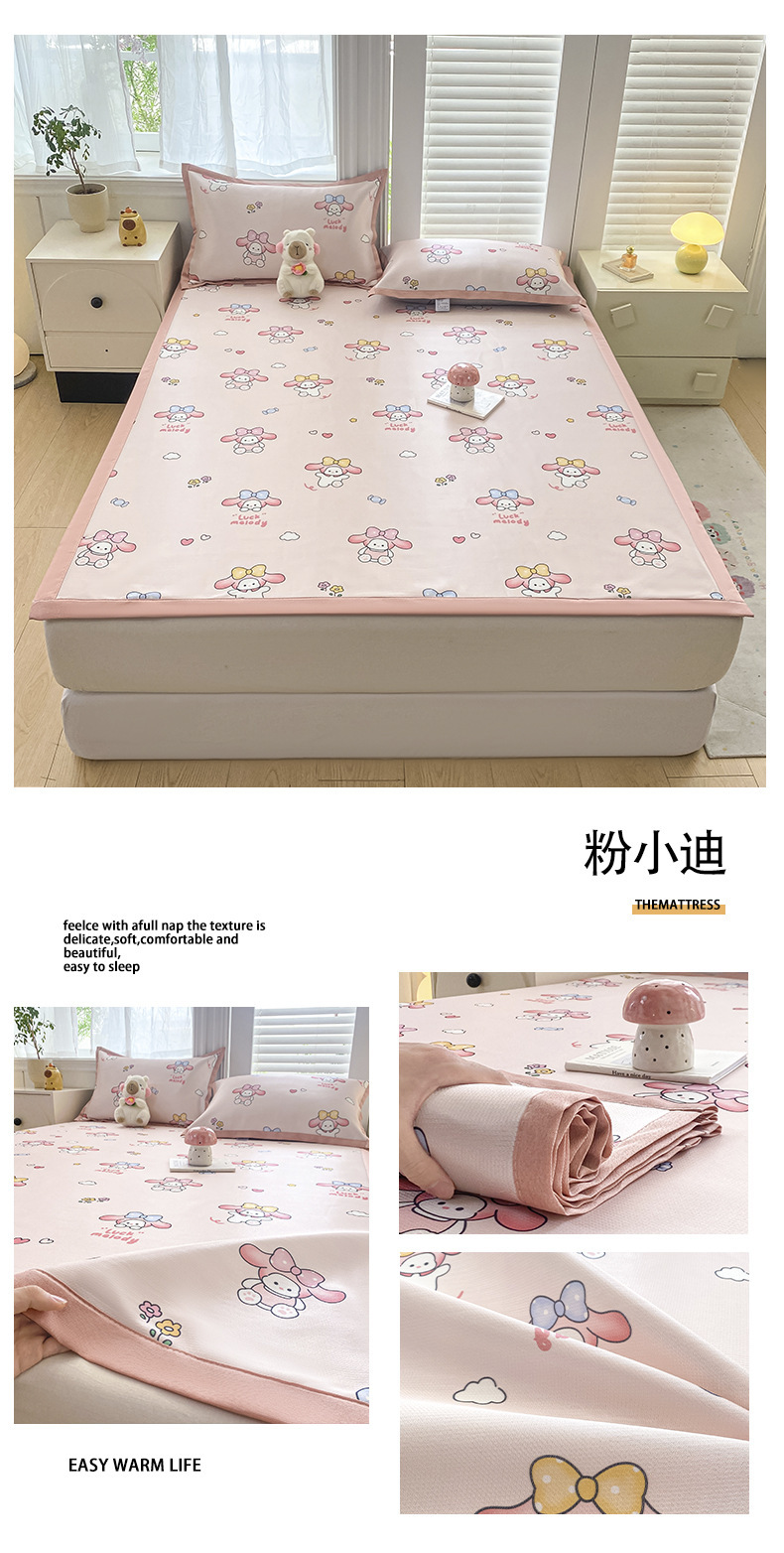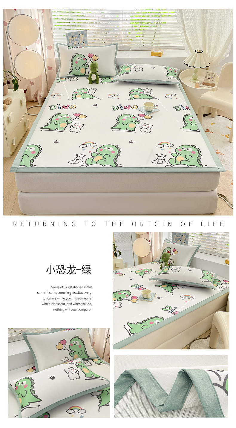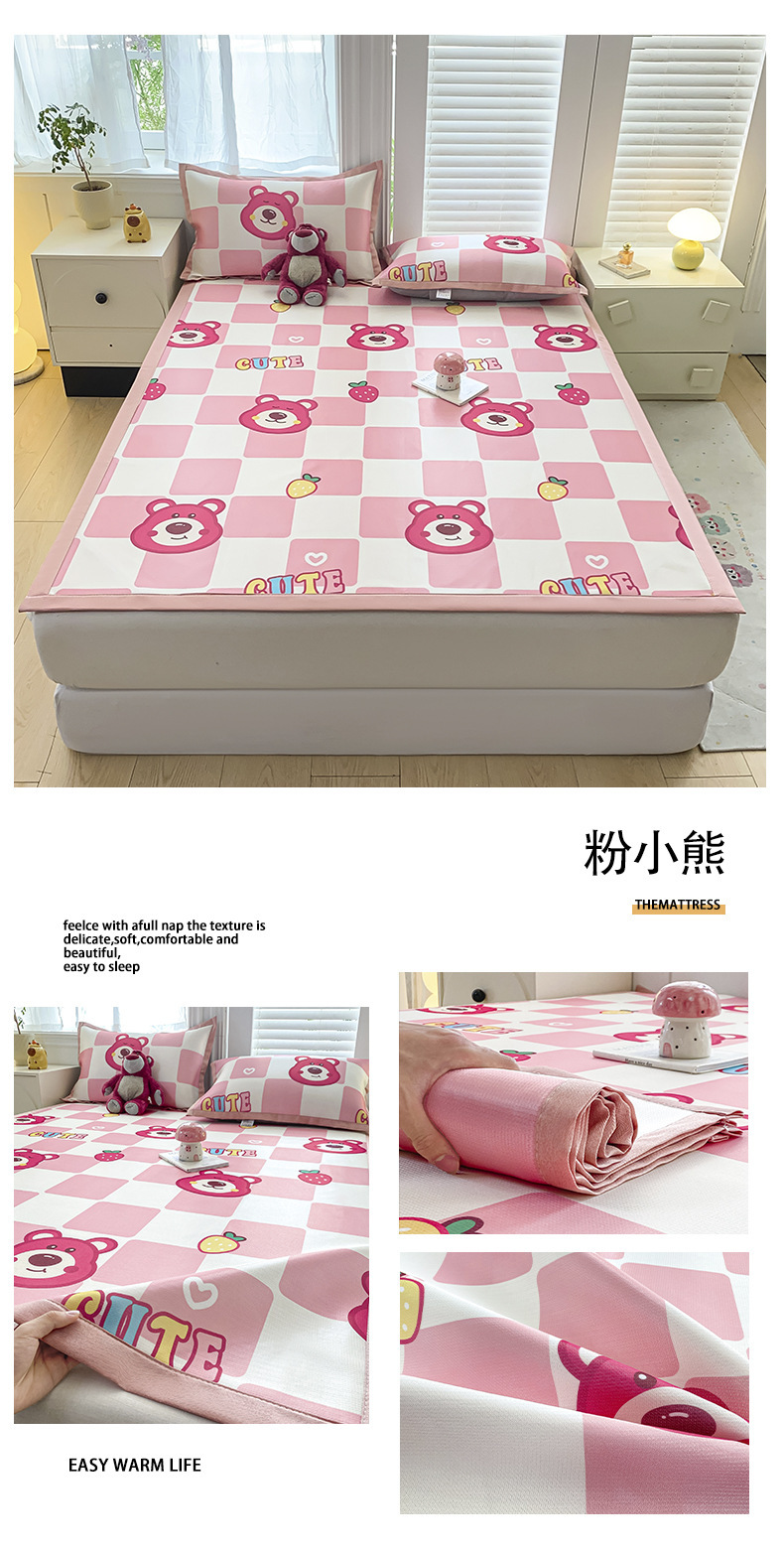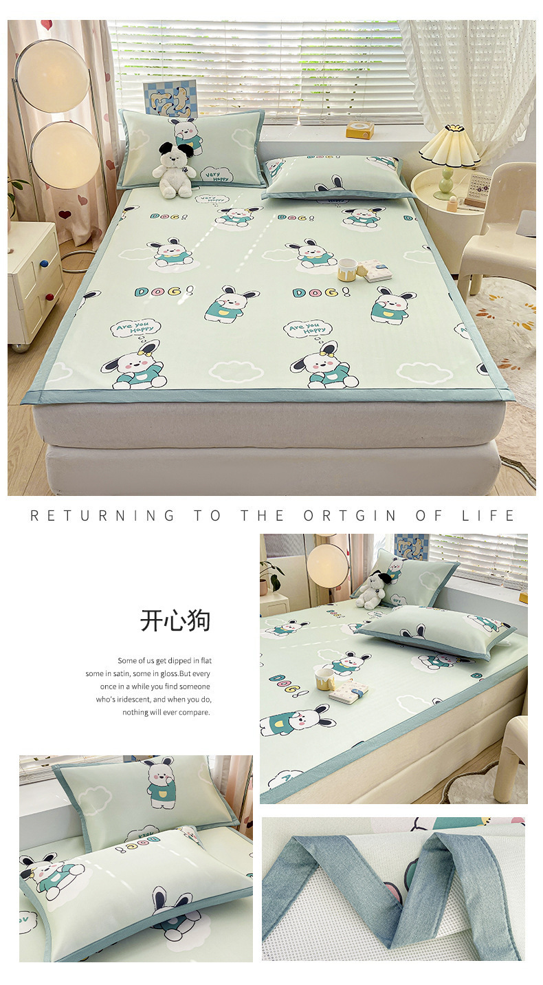 卡通ins风A类冰丝凉席三件套夏季空调软席可机洗学生宿舍床单席子