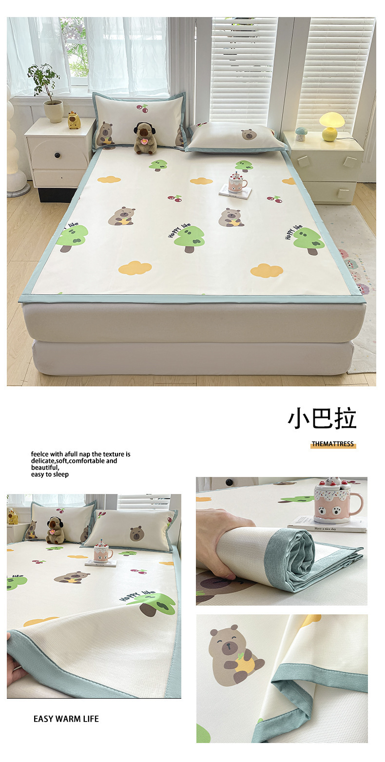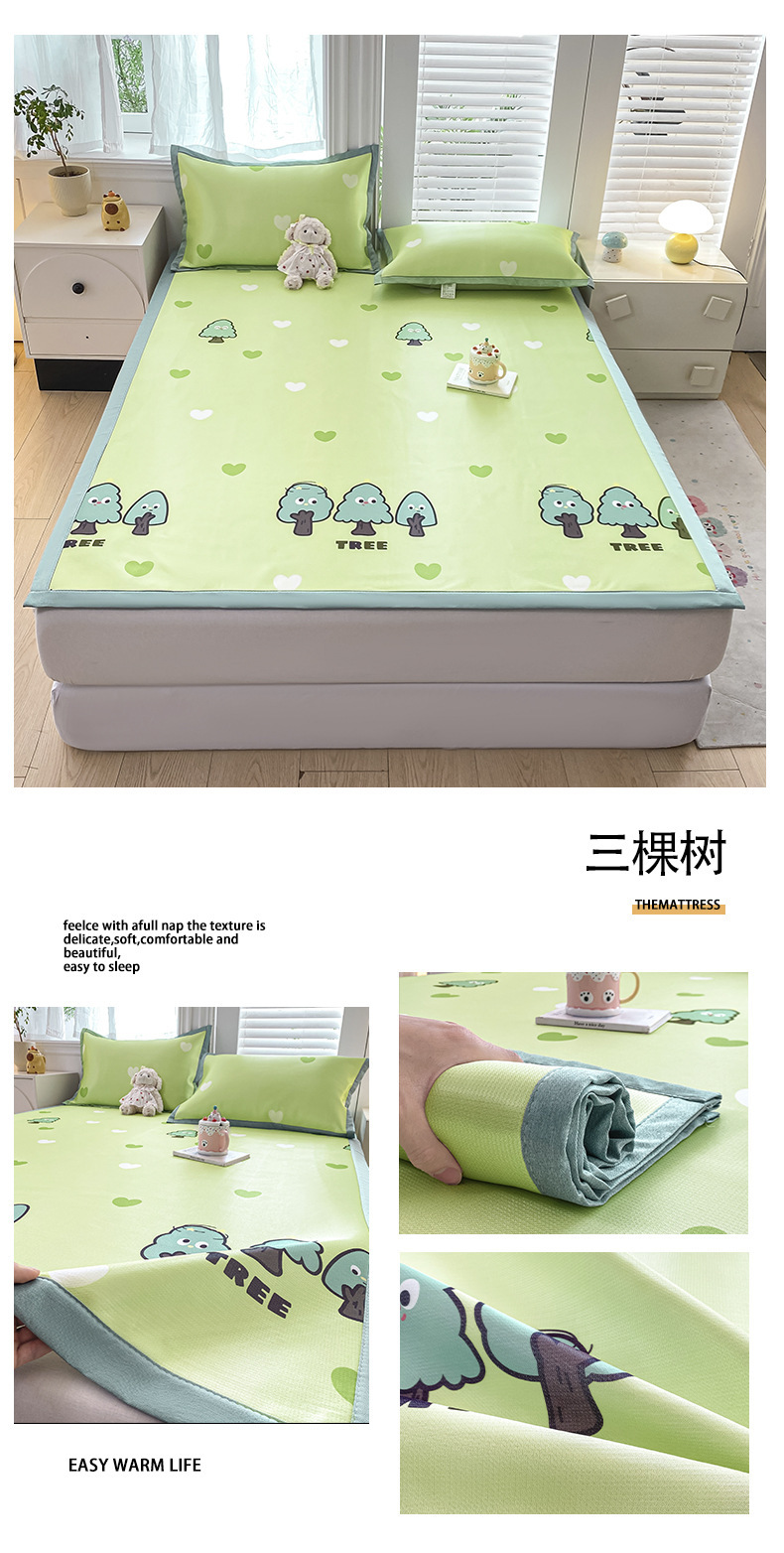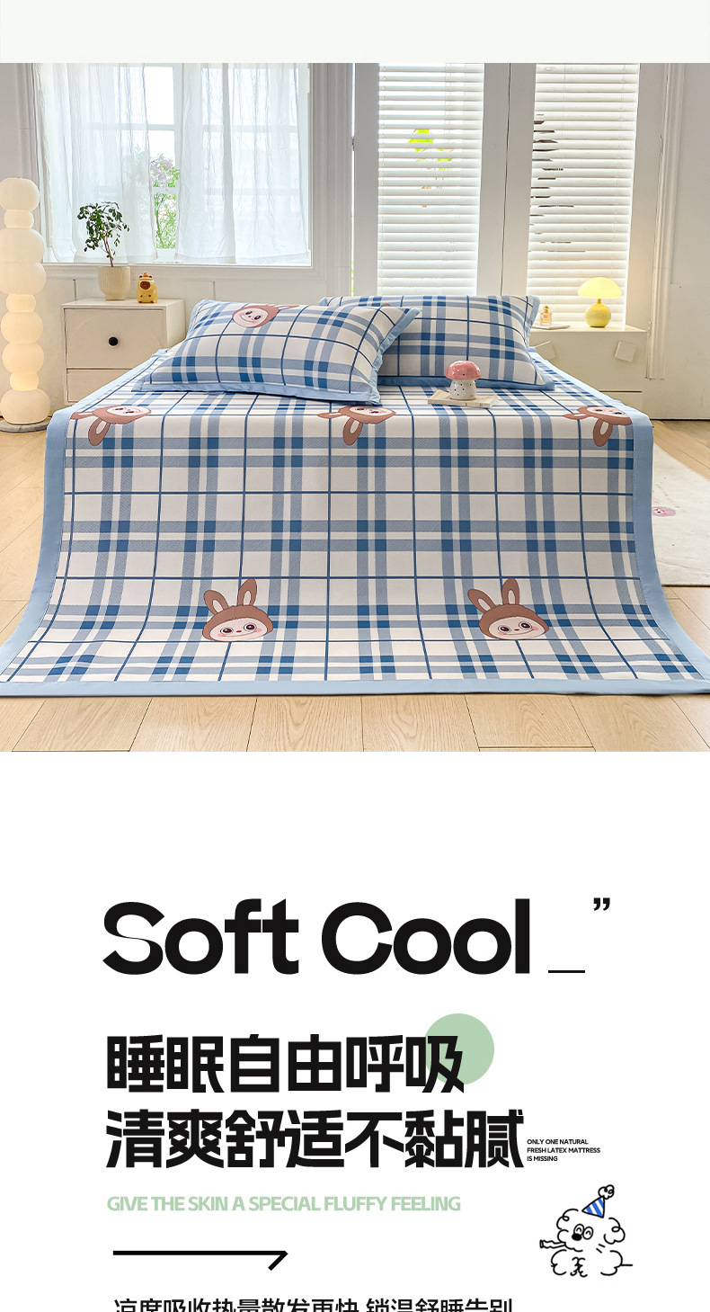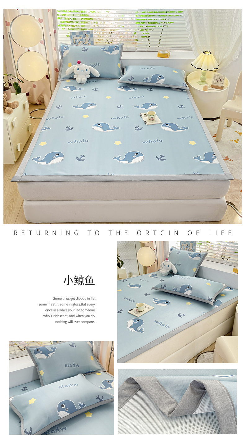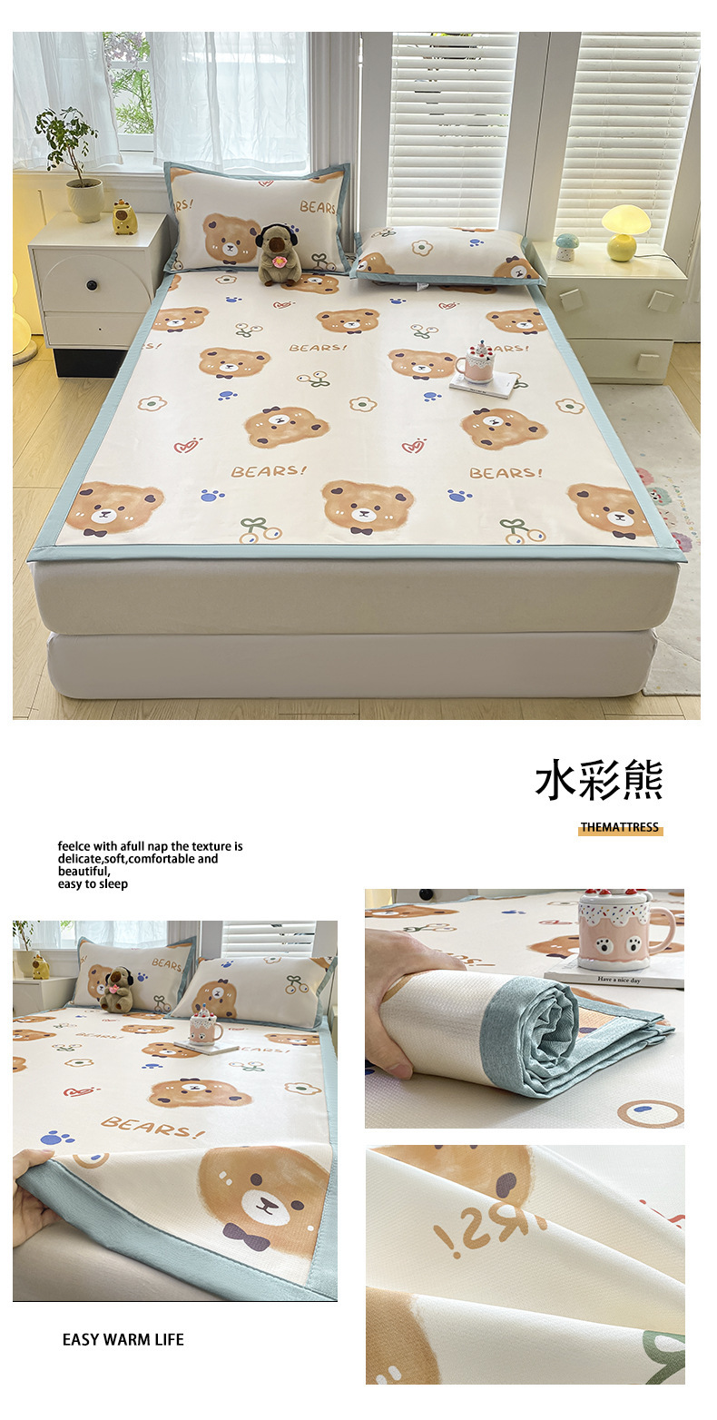 卡通ins风A类冰丝凉席三件套夏季空调软席可机洗学生宿舍床单席子