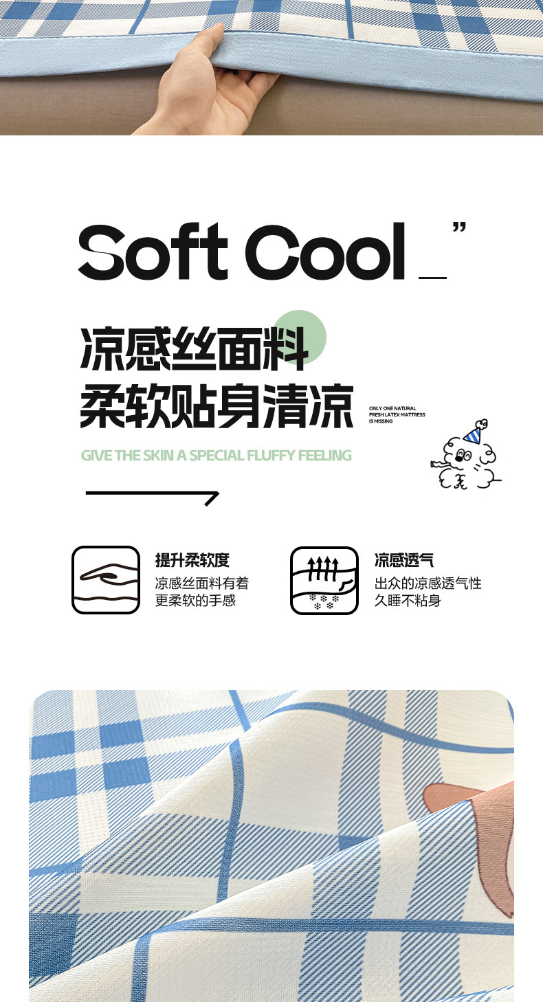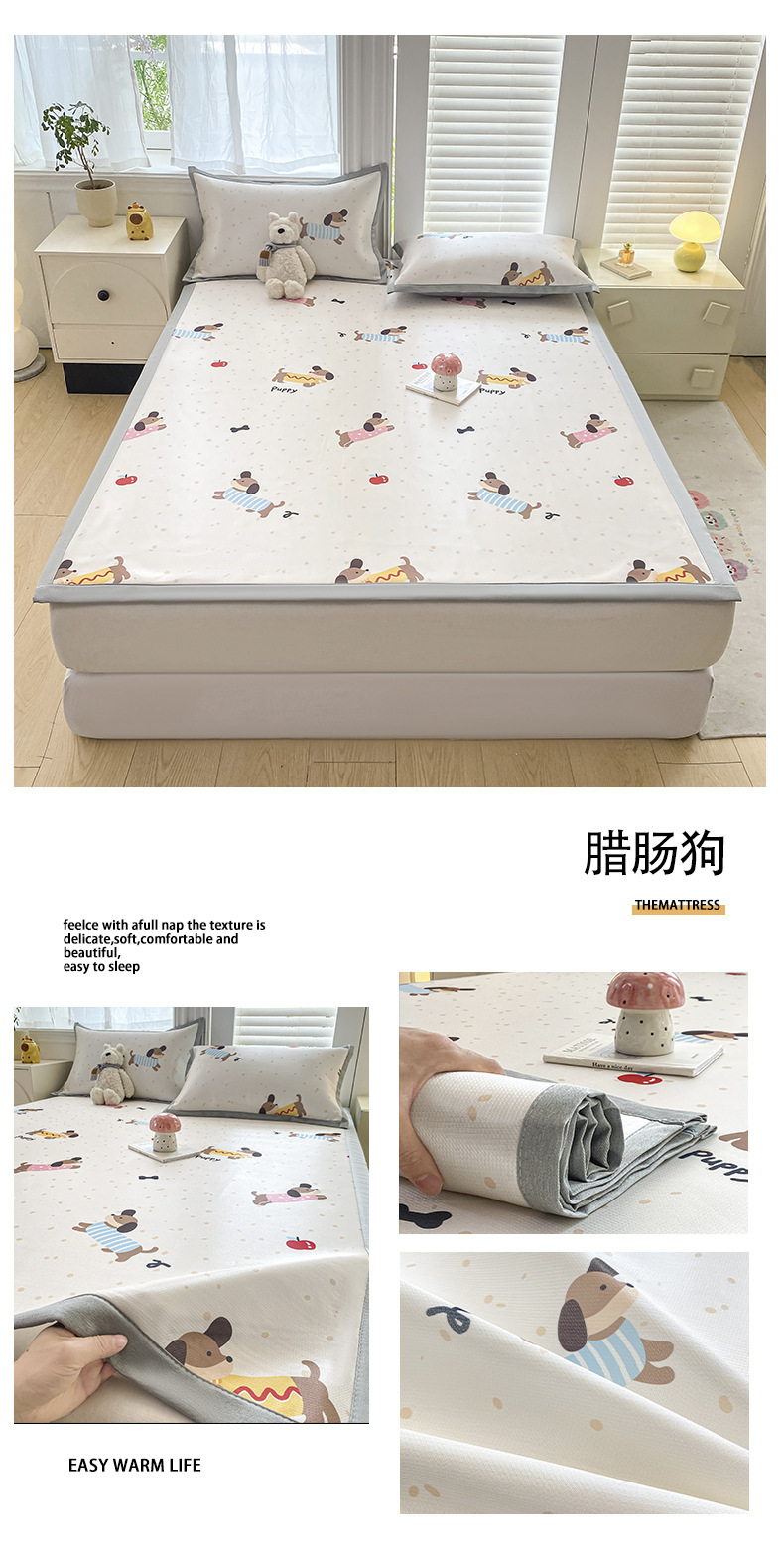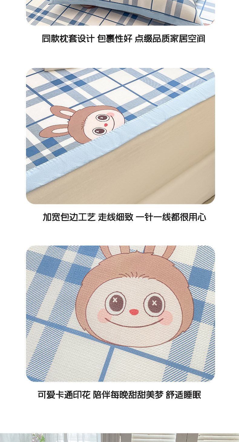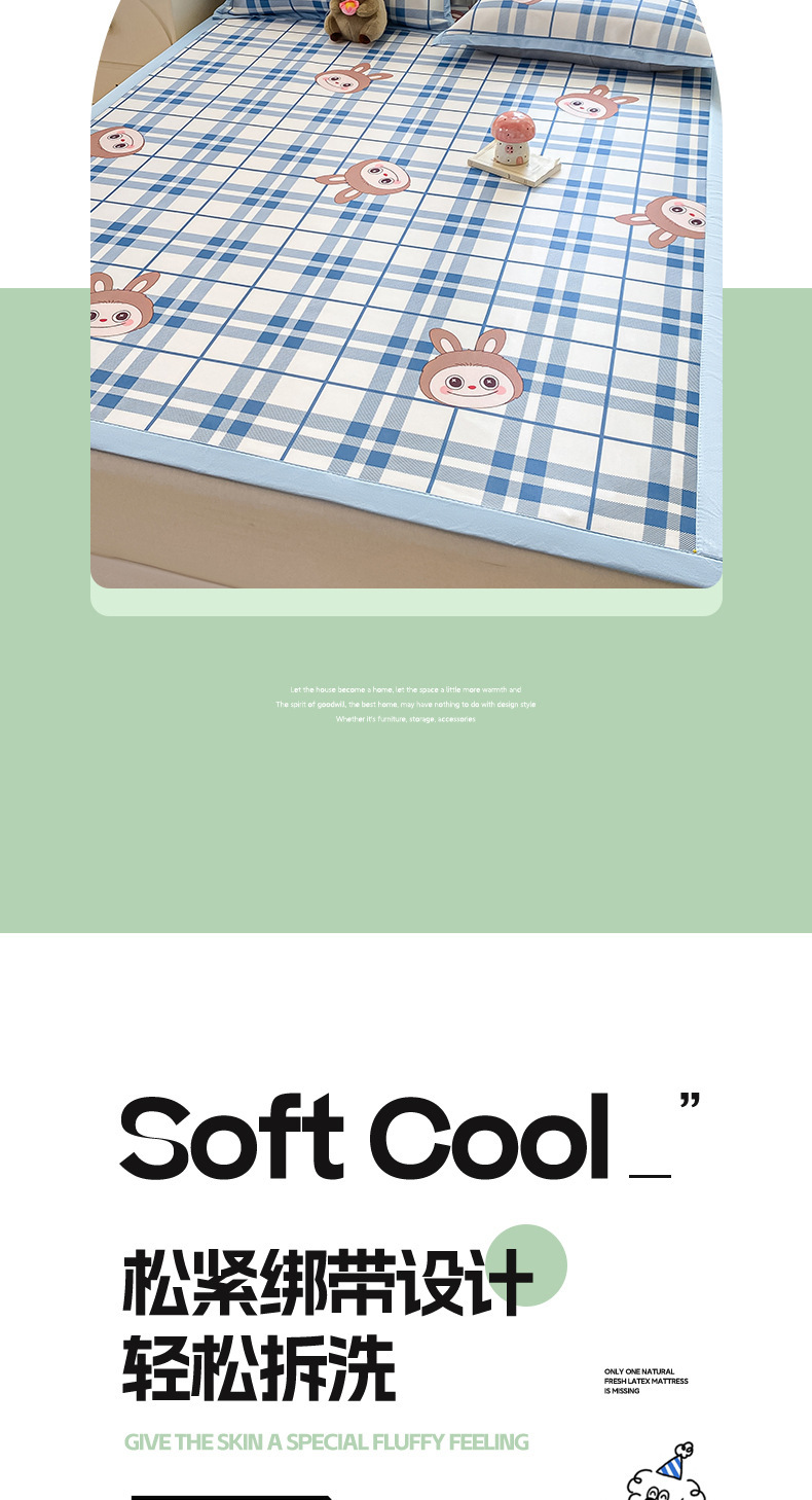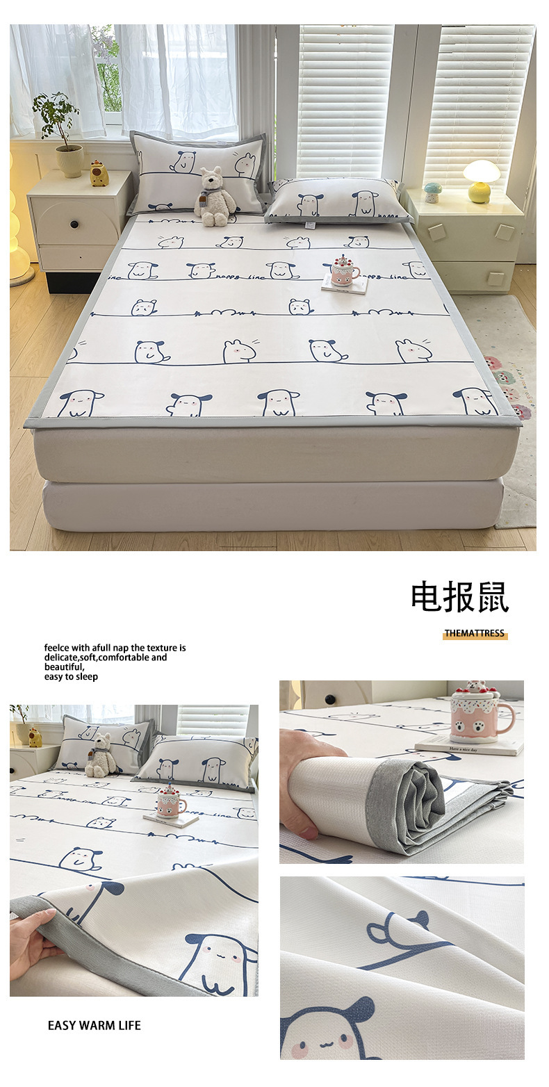 卡通ins风A类冰丝凉席三件套夏季空调软席可机洗学生宿舍床单席子