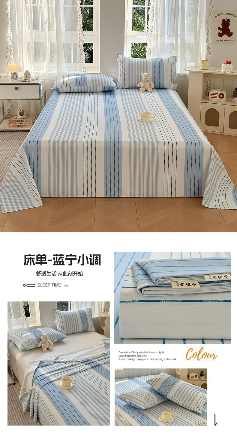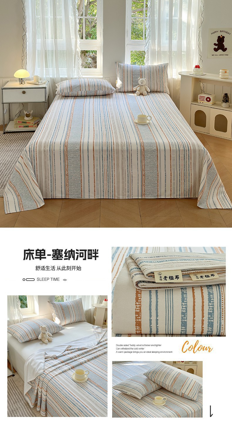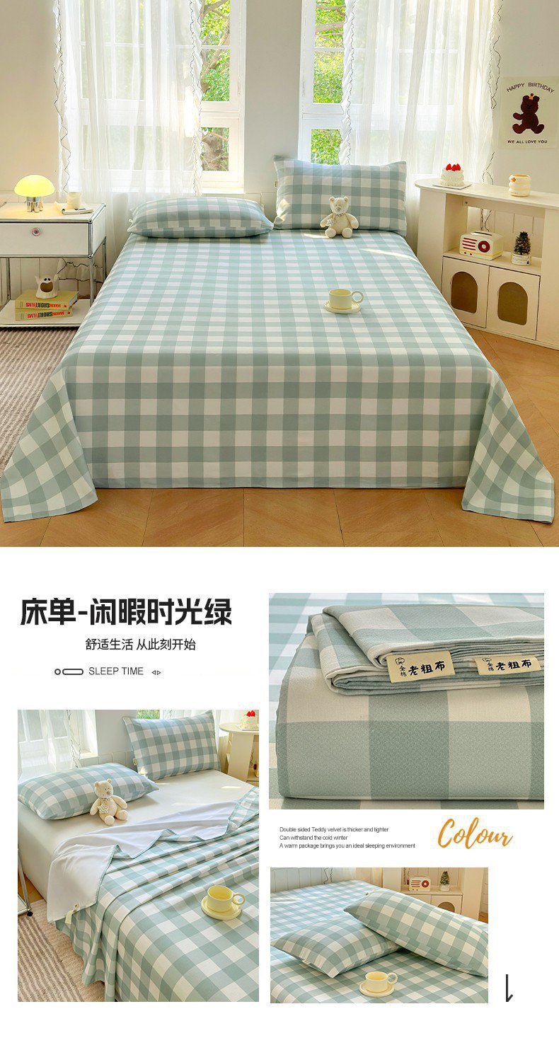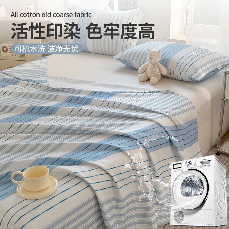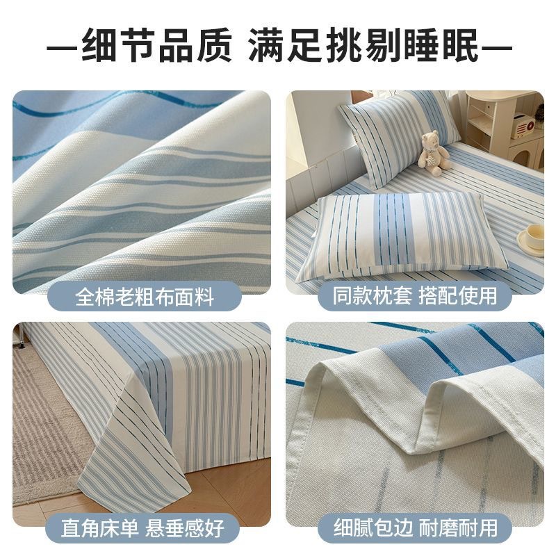 100%纯棉老粗布床单a类凉席夏季全棉加厚亚麻宿舍单人三件套炕单2