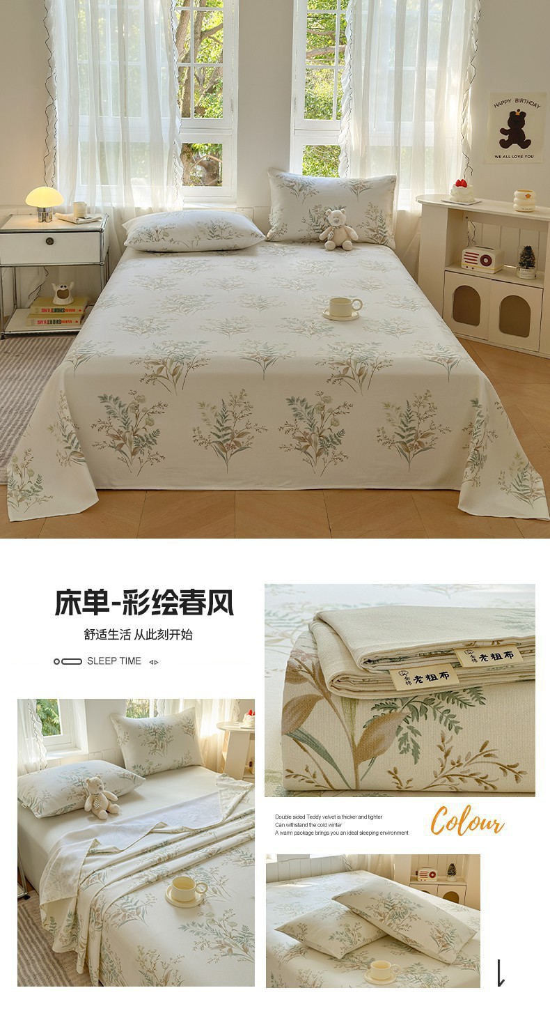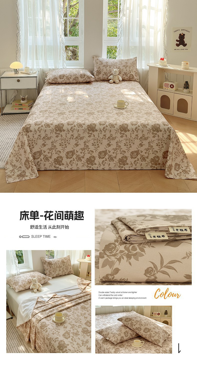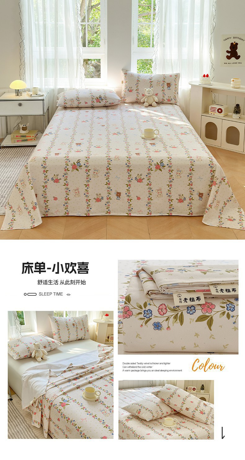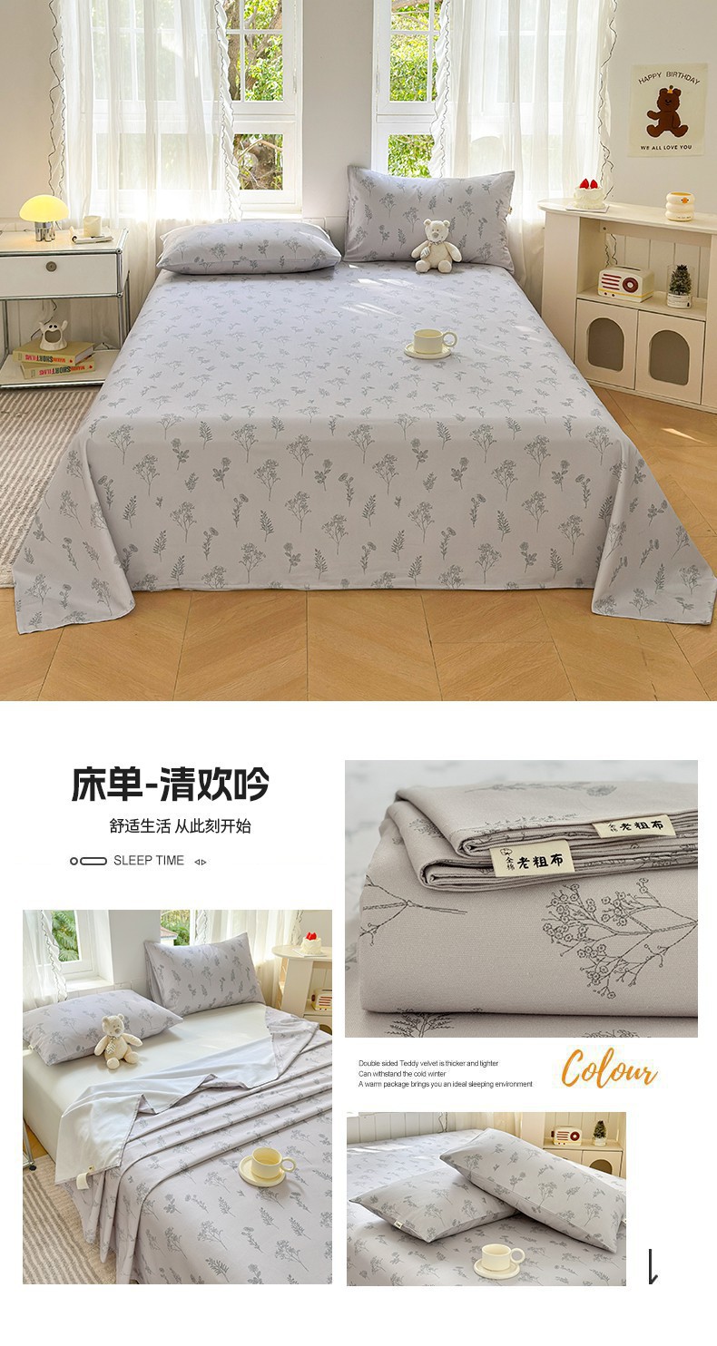 100%纯棉老粗布床单a类凉席夏季全棉加厚亚麻宿舍单人三件套炕单2
