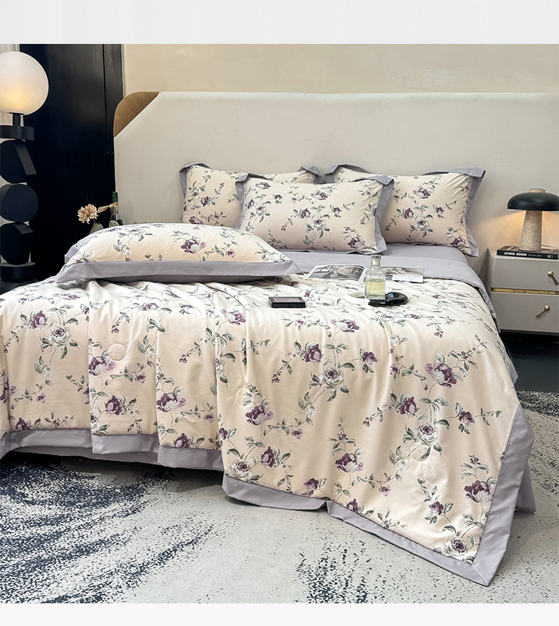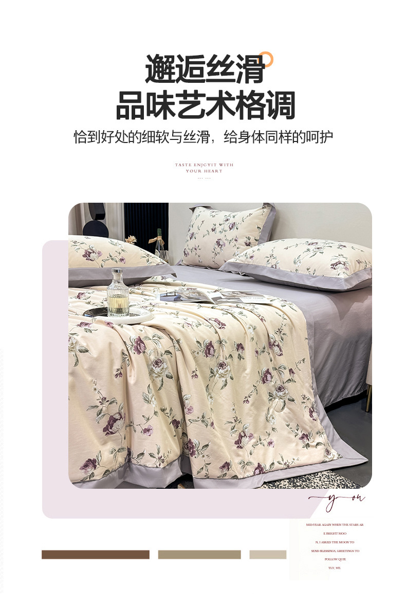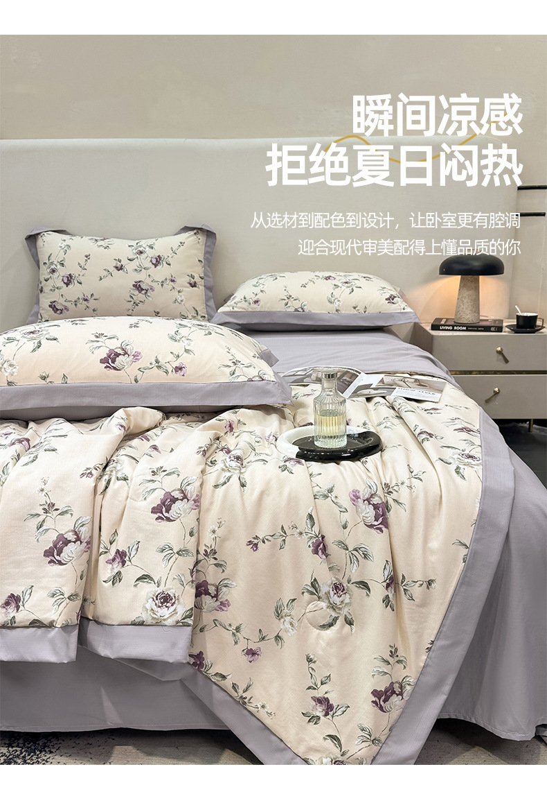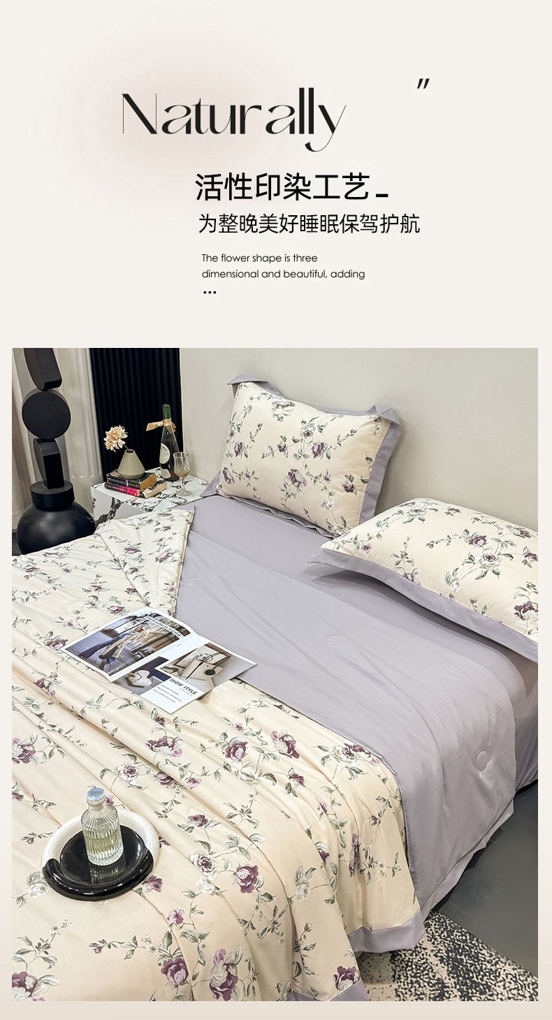 夏季凉感天丝棉印花夏凉被空调被夏被四件套学生宿舍可机洗薄被子