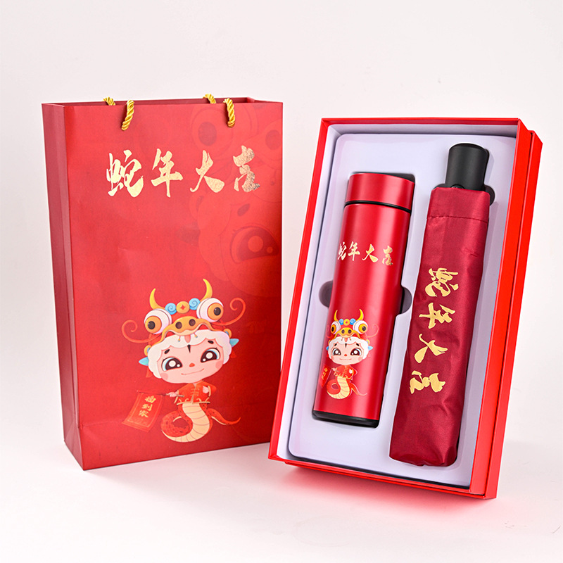 蛇年大吉企业年会保温杯雨伞套装公司开业活动商务礼品伴手礼logo