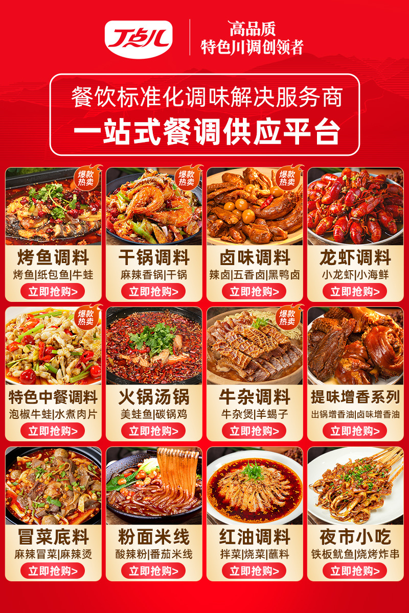 丁点儿开店商用调味料试用装合集干锅酱料卤料烤鱼酱料水煮底料