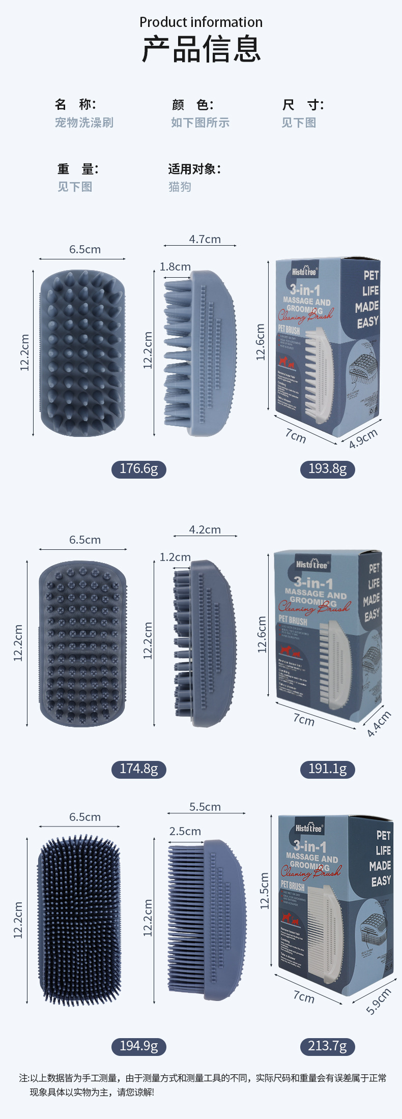 跨境宠物洗澡刷狗狗洗澡刷子大型犬专用猫咪洗澡按摩除毛刷沐浴刷