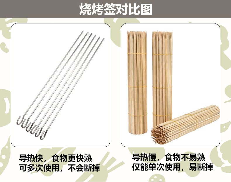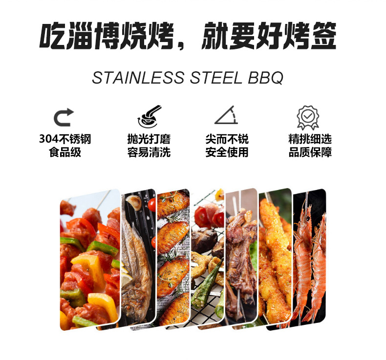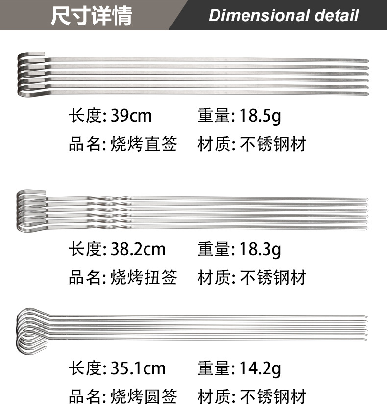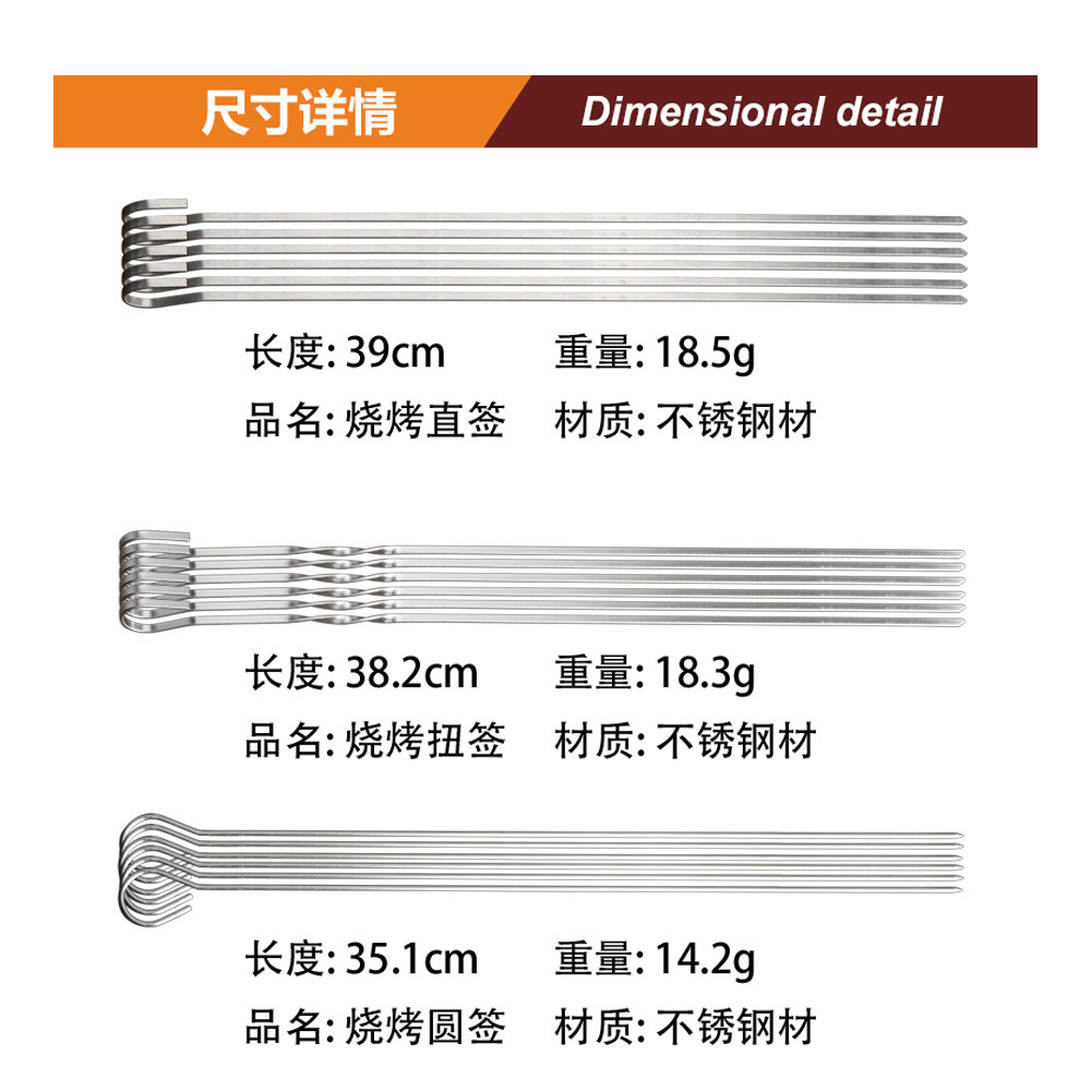 烧烤工具批发烧烤签子烤肉叉不锈钢加厚烤肉钢签铁签子圆签扁签针