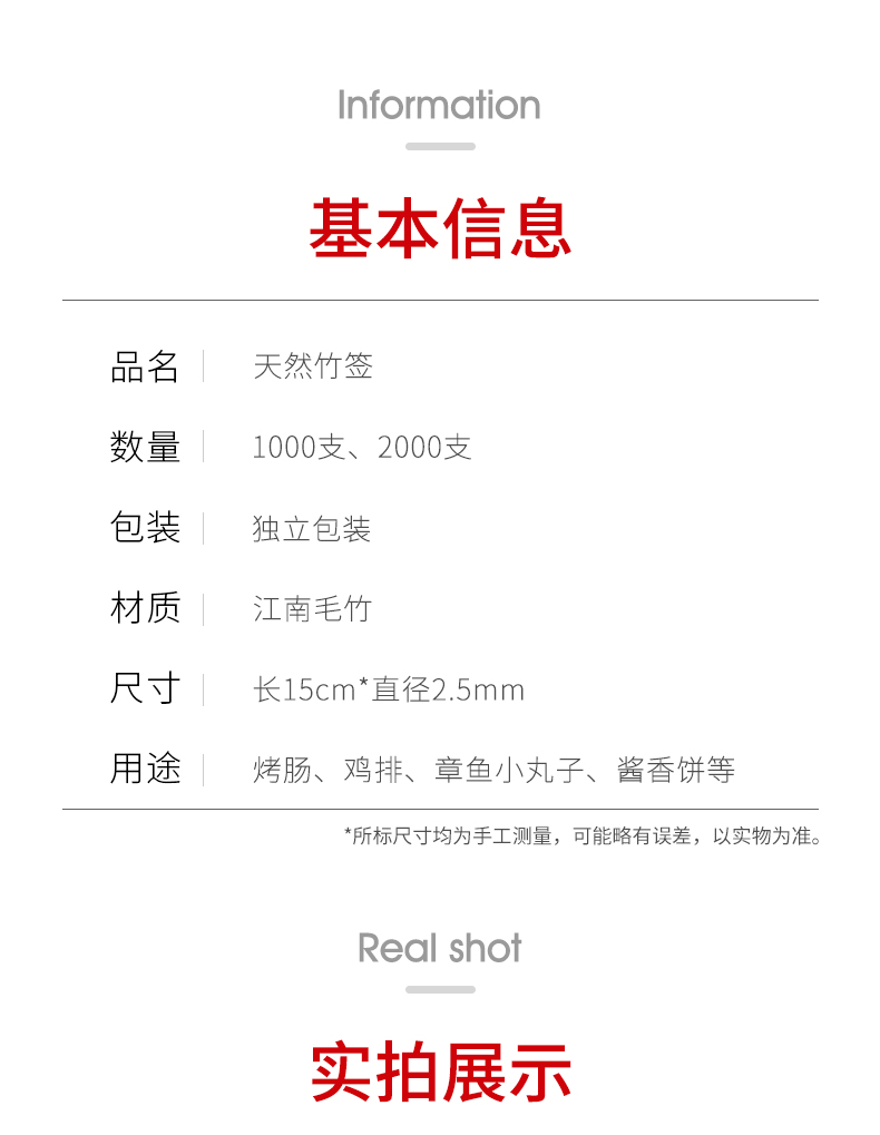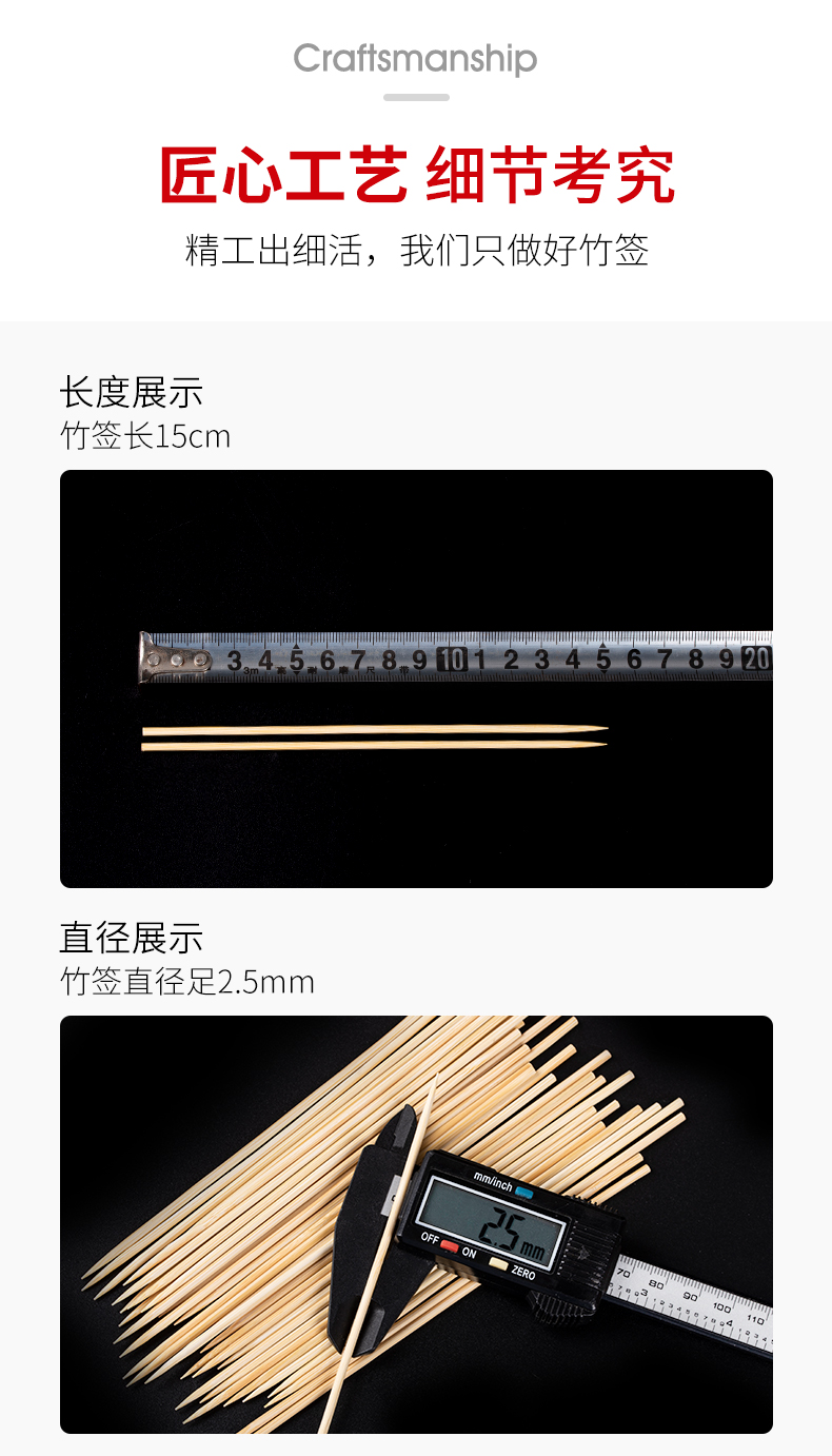 烤肠热狗鸡排短竹签子15cm一次性钵仔糕关东煮油炸串小吃用小竹签