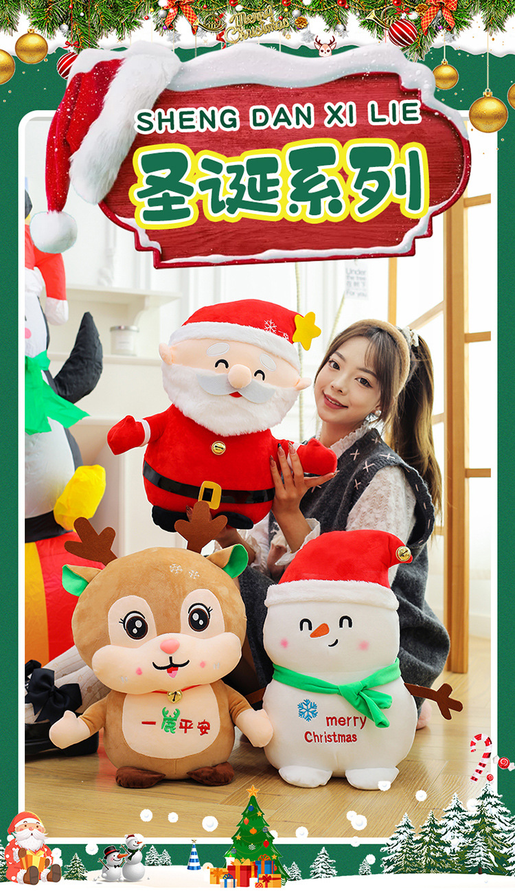 外贸圣诞老人圣诞节毛绒玩具公仔玩偶卡通抱枕儿童礼物雪人小鹿批
