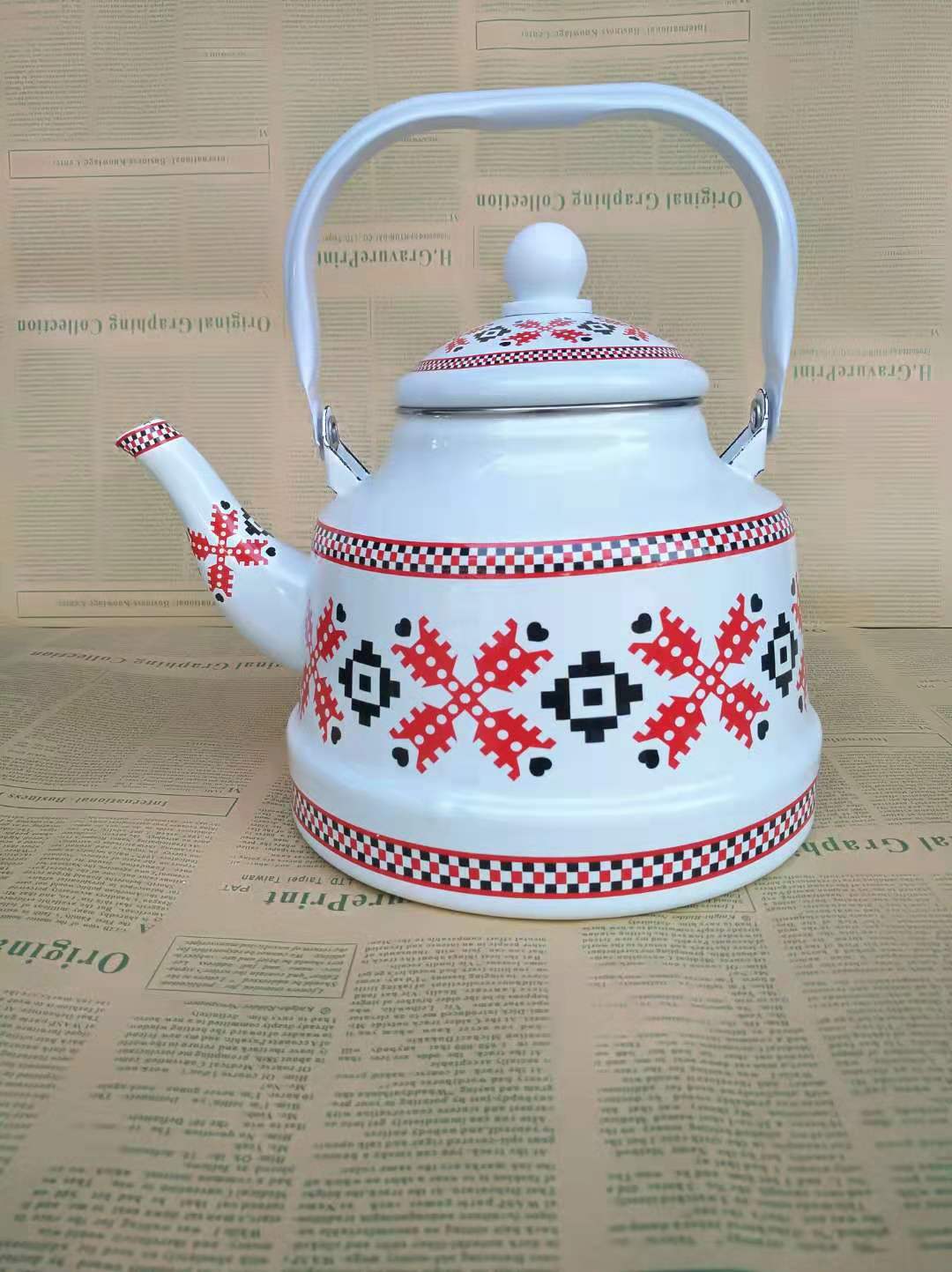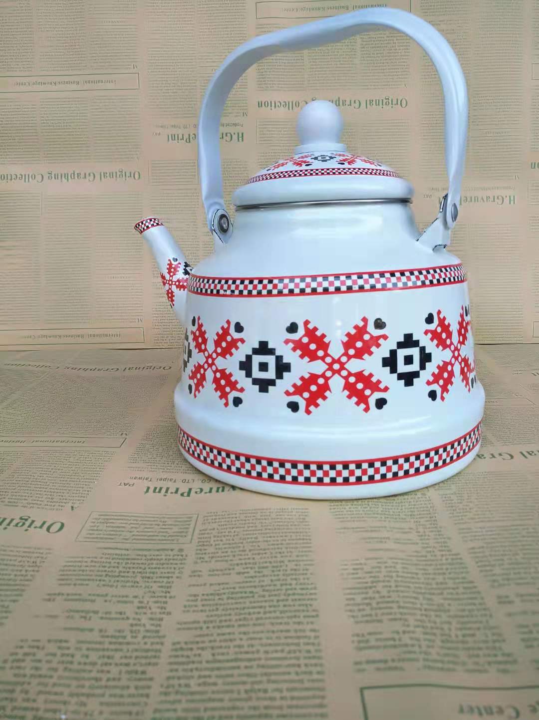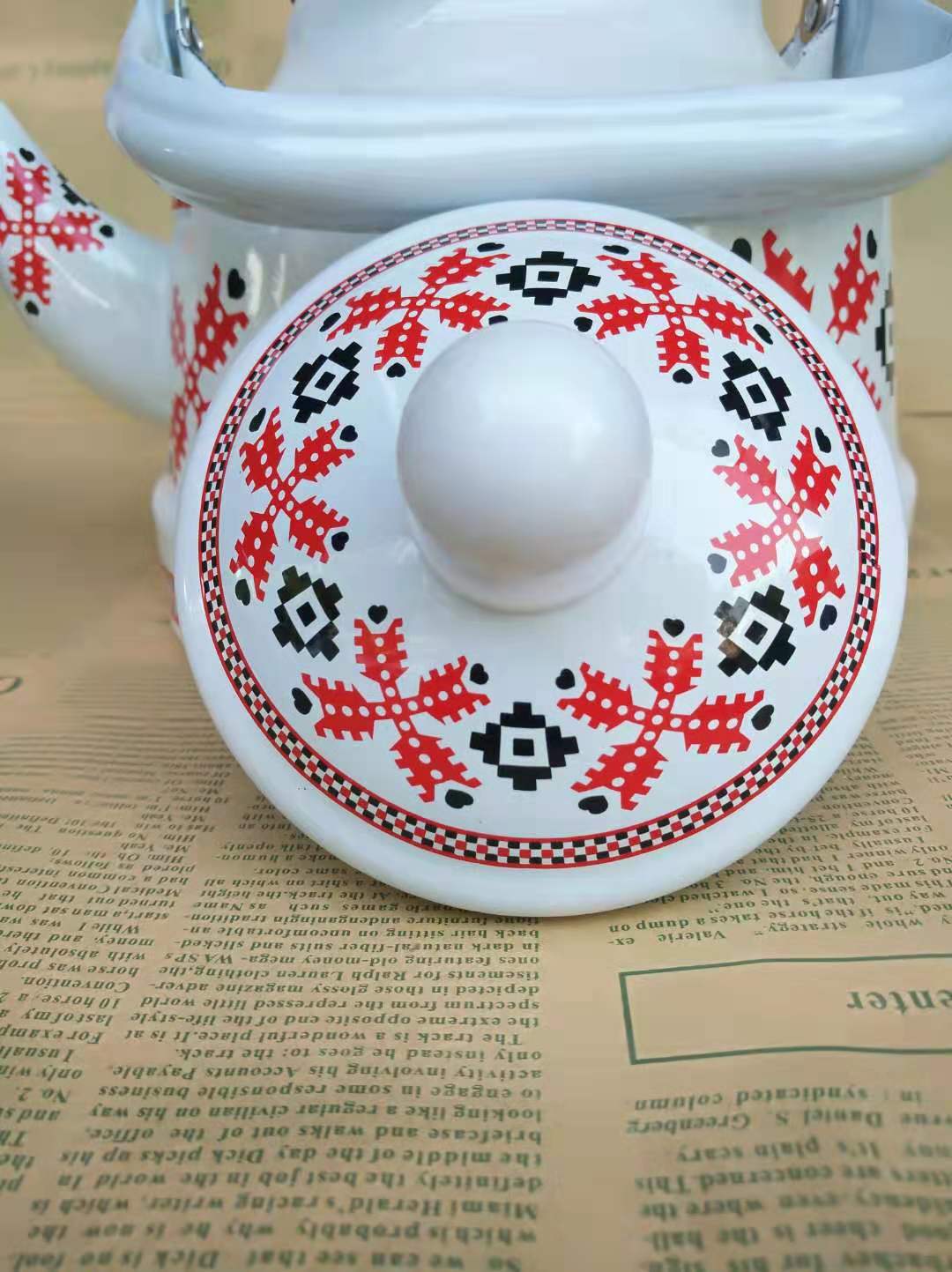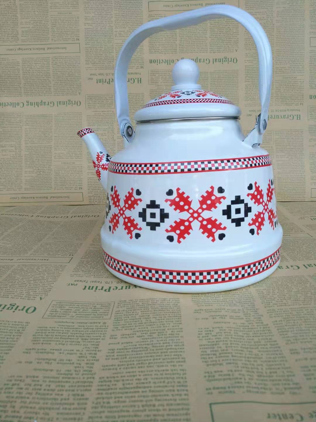 供应藏族民族搪瓷壶彩绘凉水壶烧水壶2.5升黑红格子酥油茶壶批发