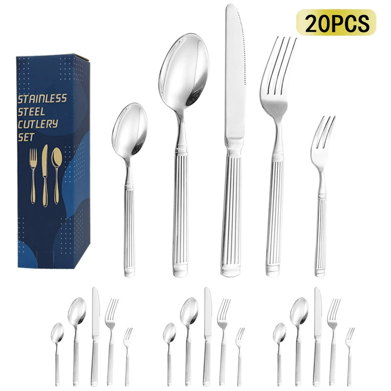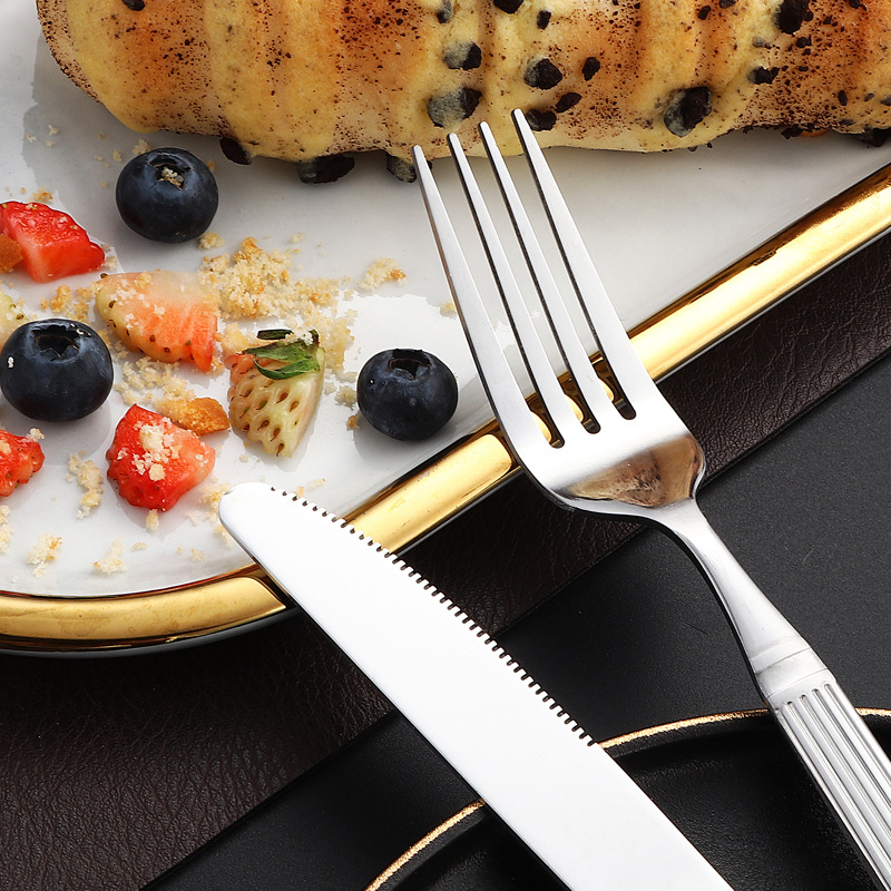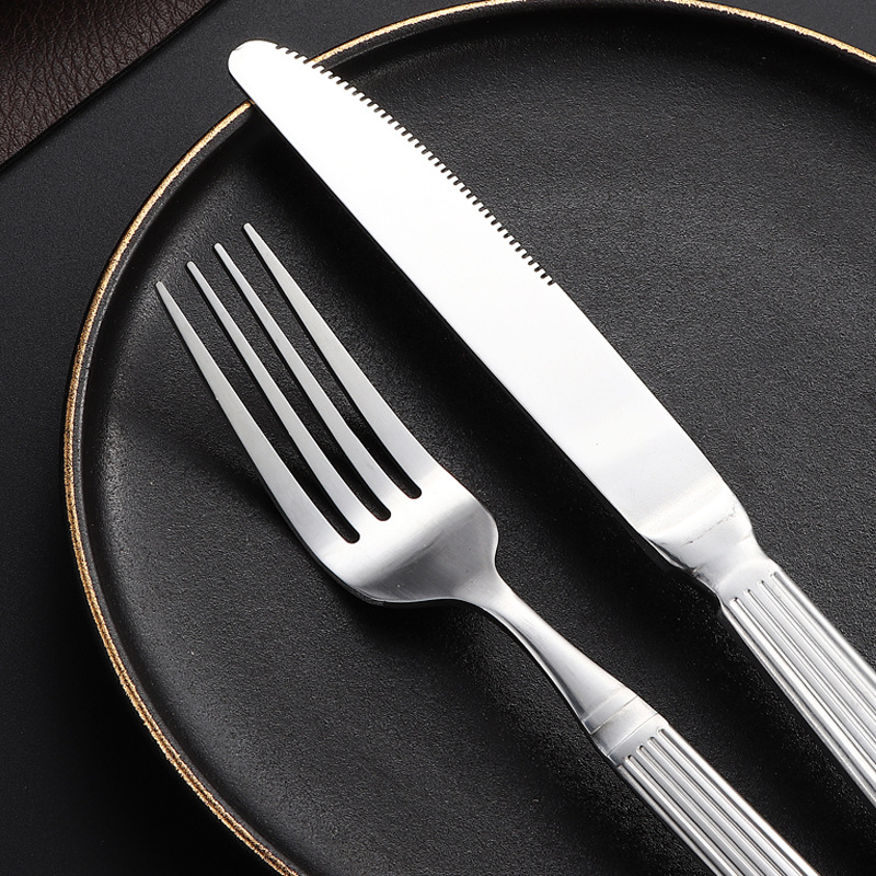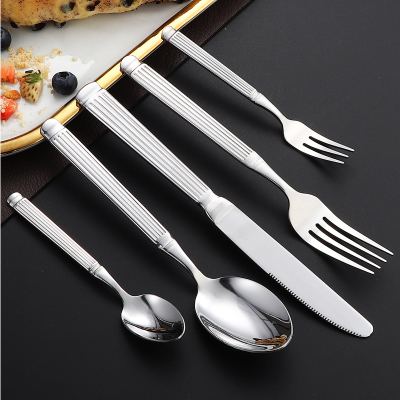 跨境不锈钢刀叉勺罗马柱套装家用咖啡甜品勺西餐具酒店牛排刀叉