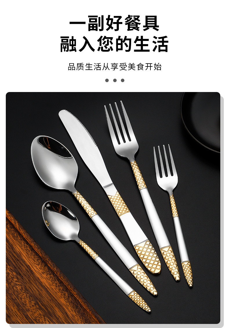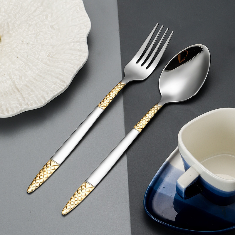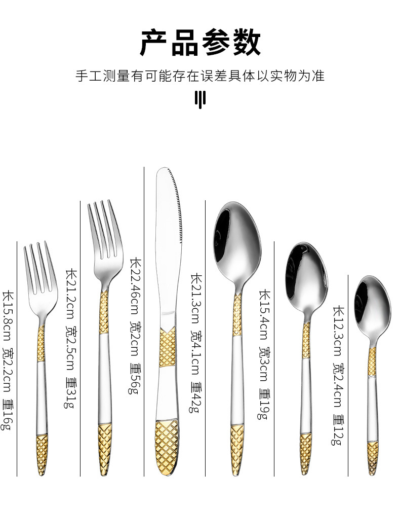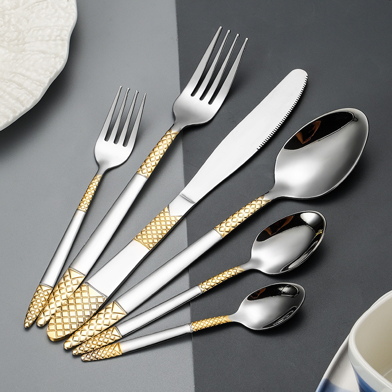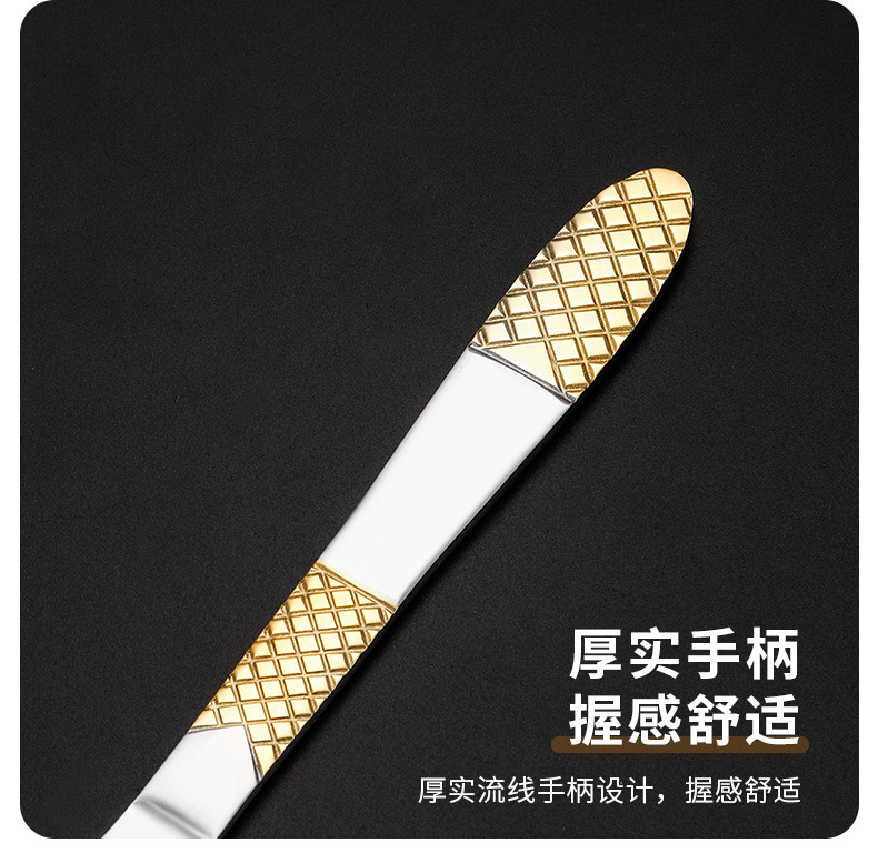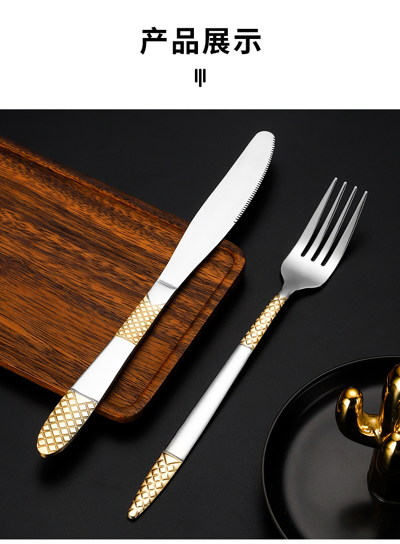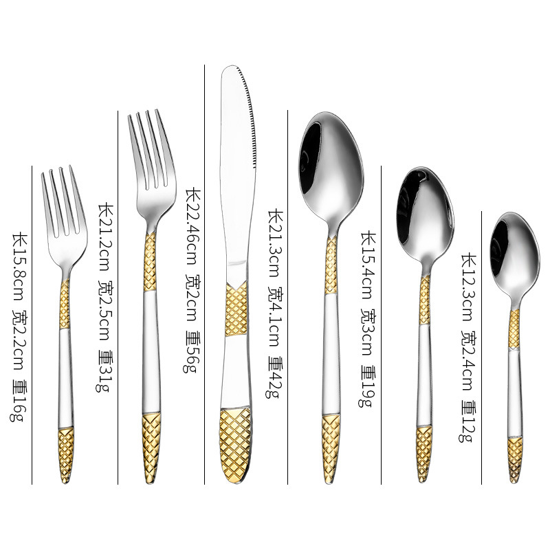 跨境外贸新款不锈钢刀叉勺餐具六件套镀金欧式餐具牛排刀叉甜品勺