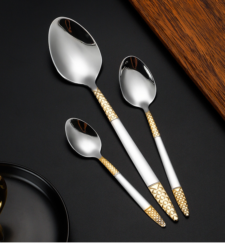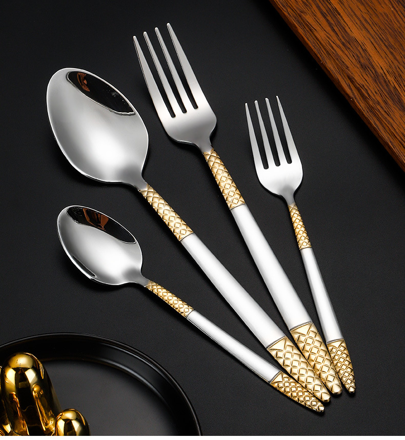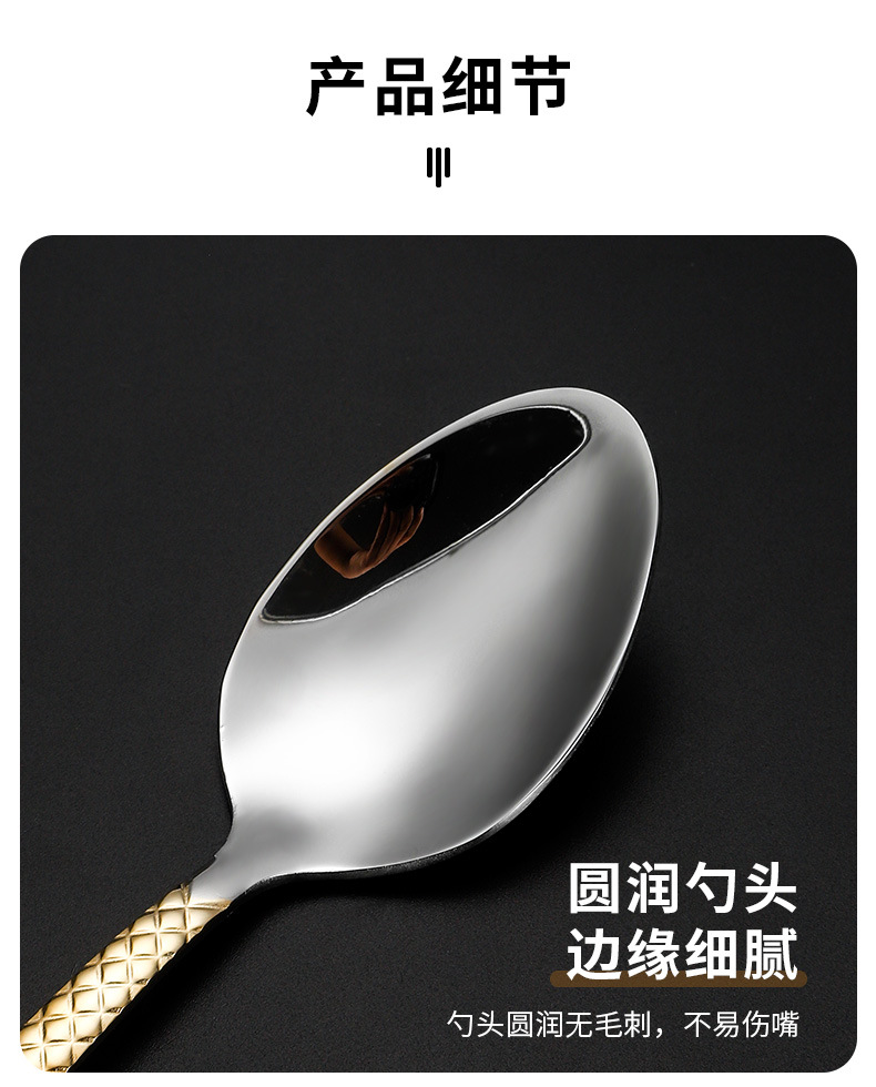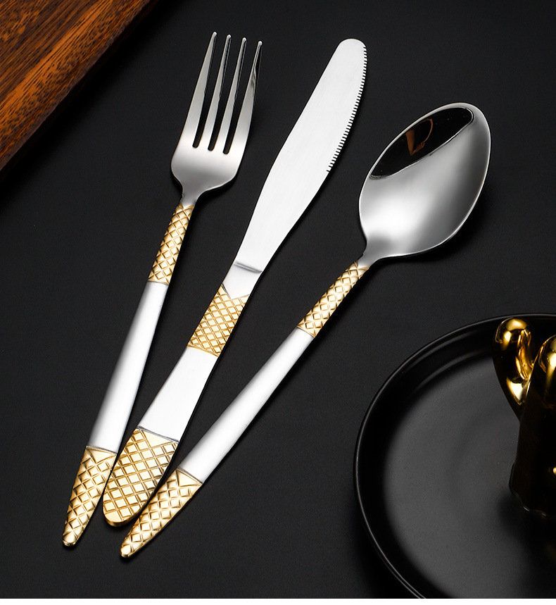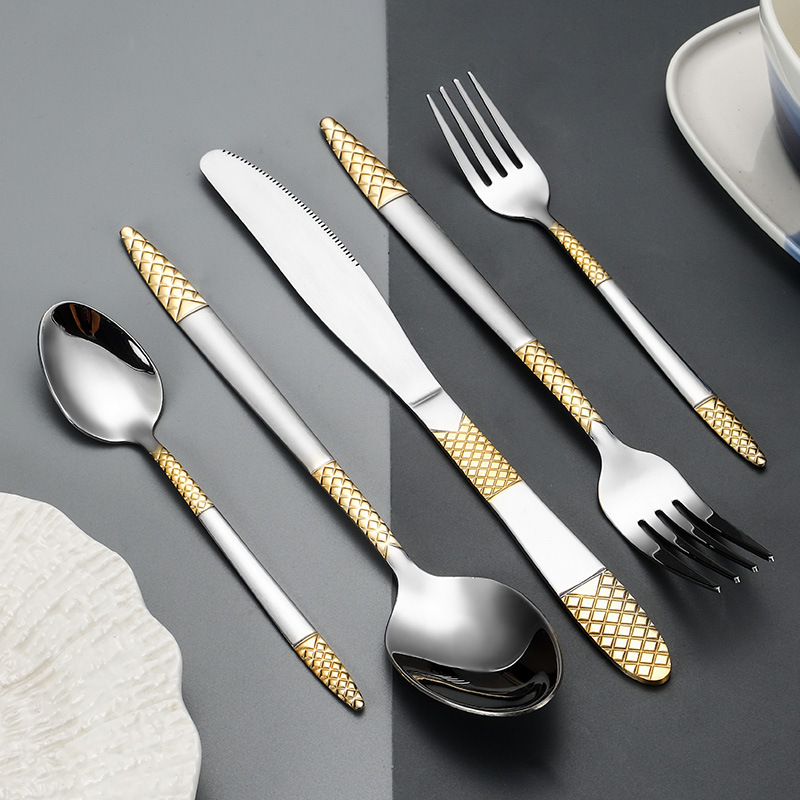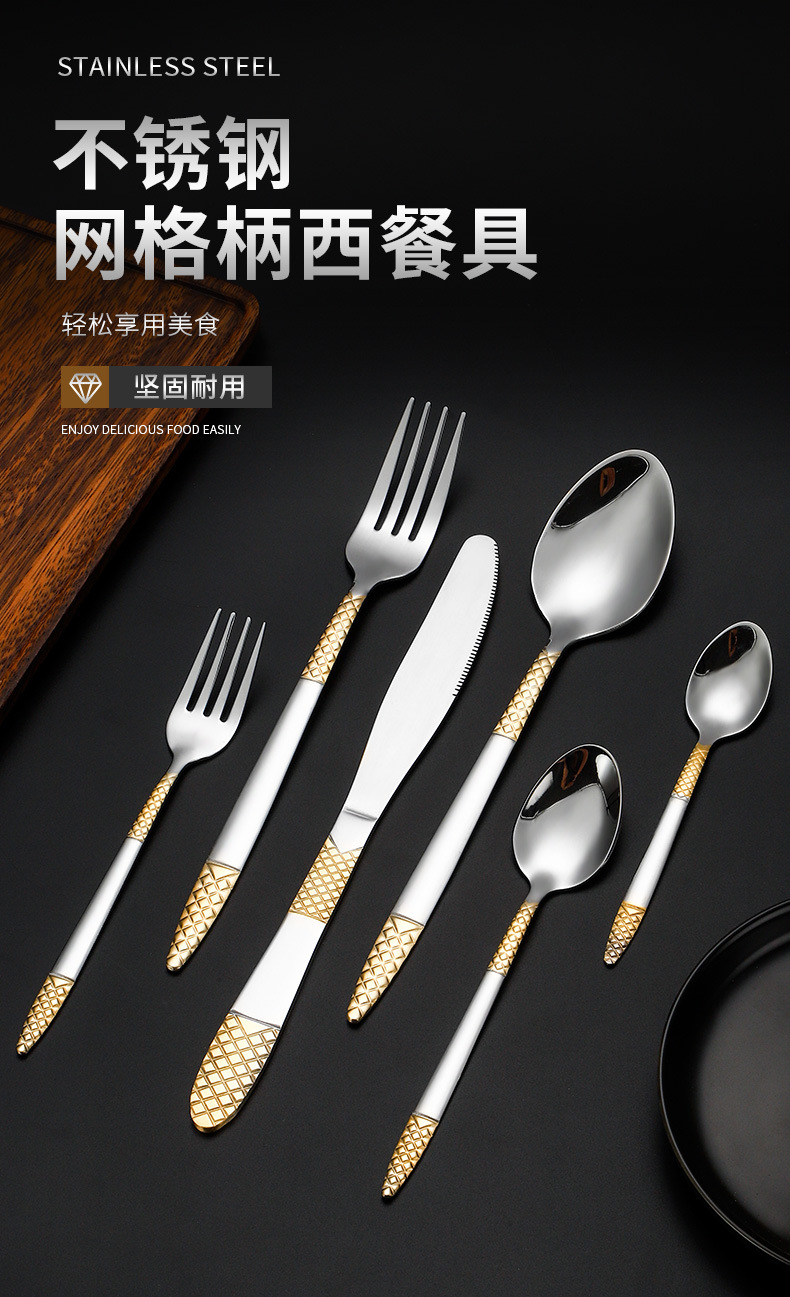 跨境外贸新款不锈钢刀叉勺餐具六件套镀金欧式餐具牛排刀叉甜品勺