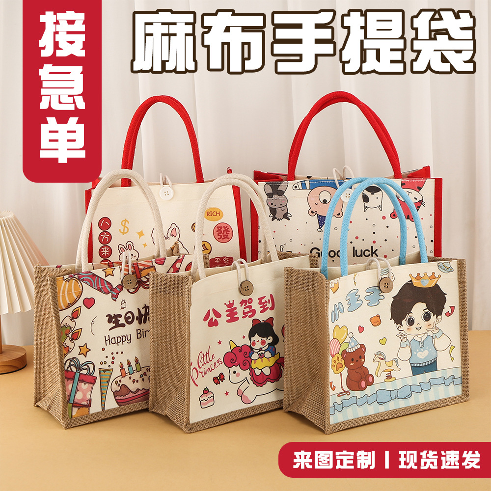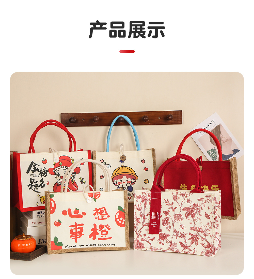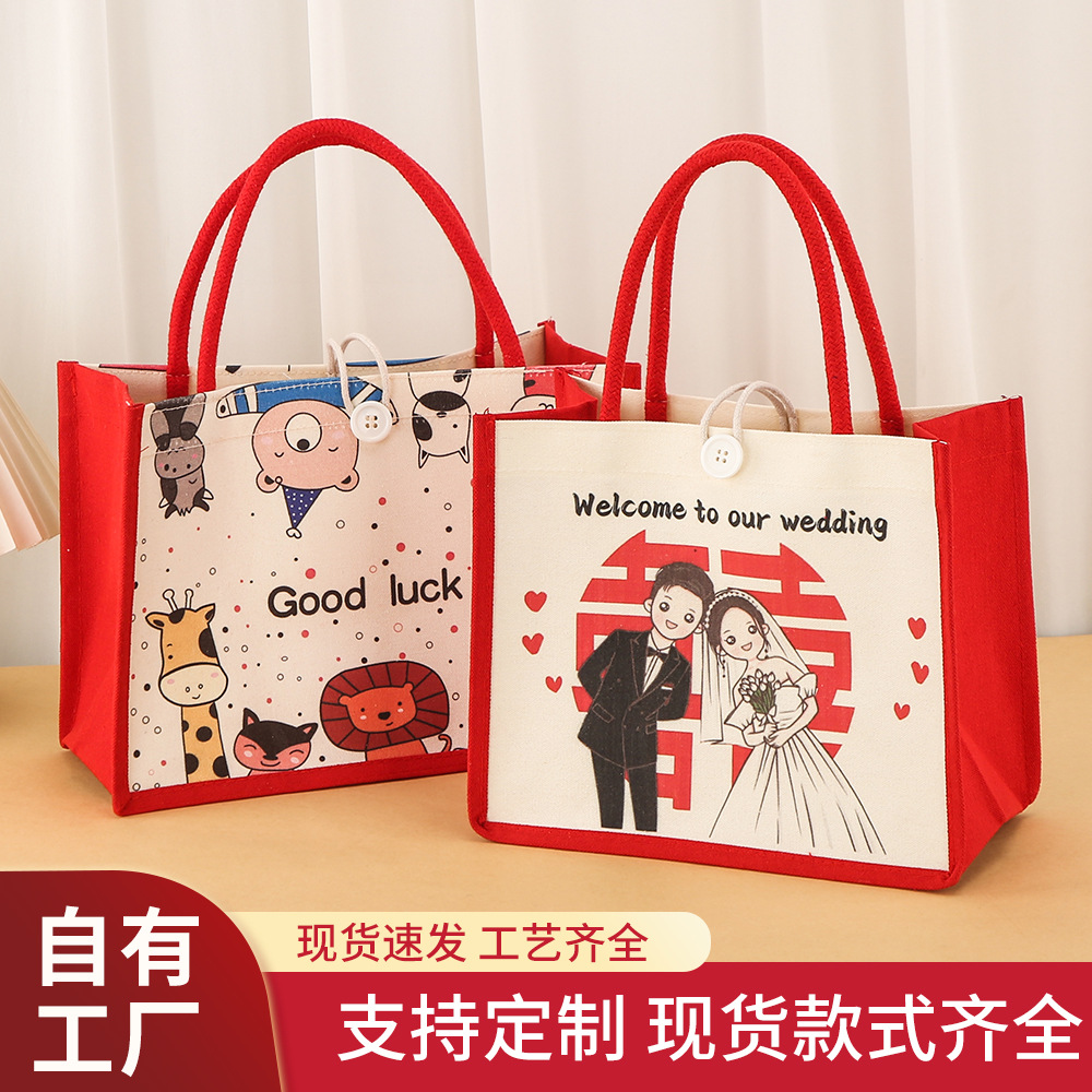 结婚伴手礼袋子麻布手提袋定制乔迁之喜麻布袋宝宝生日满月礼品袋