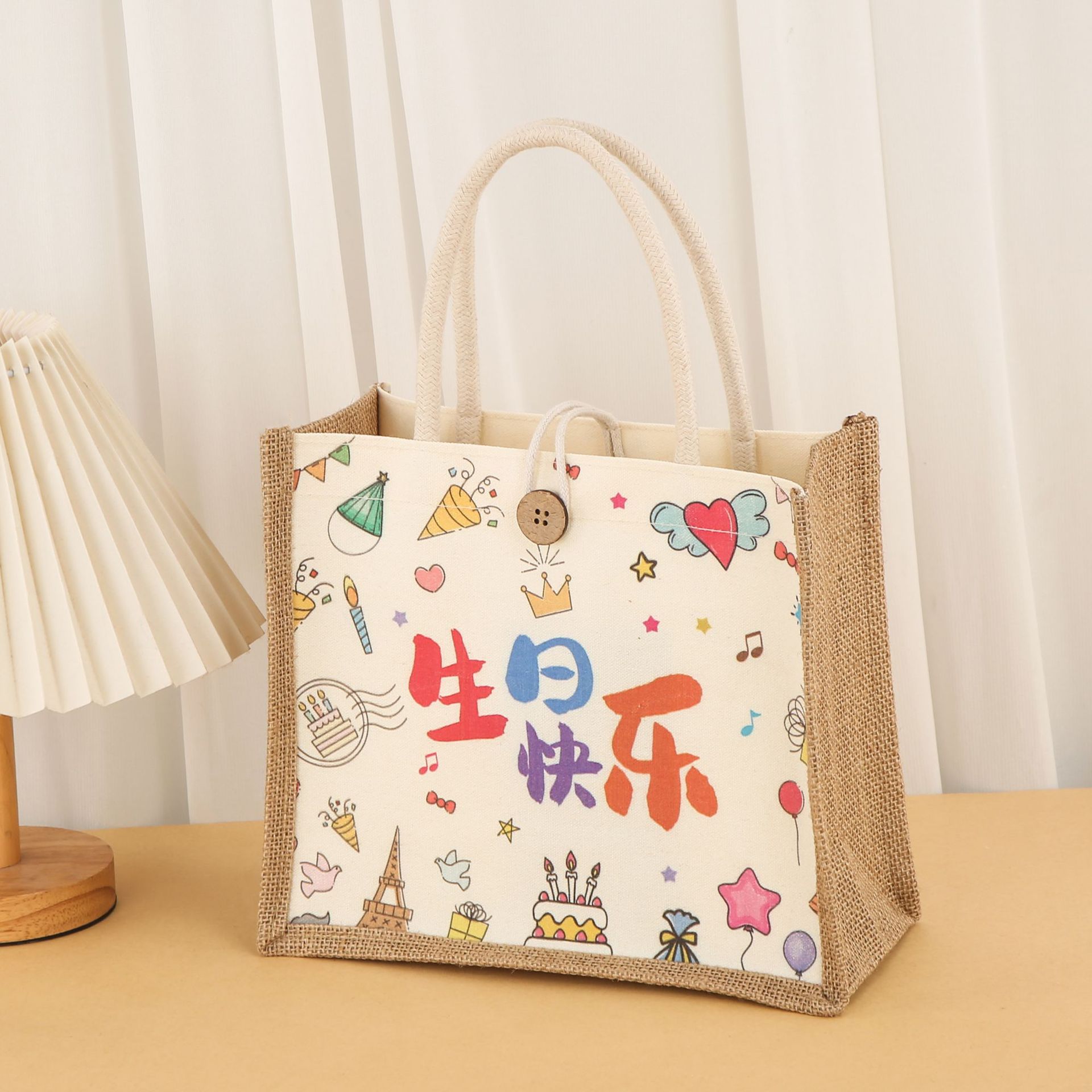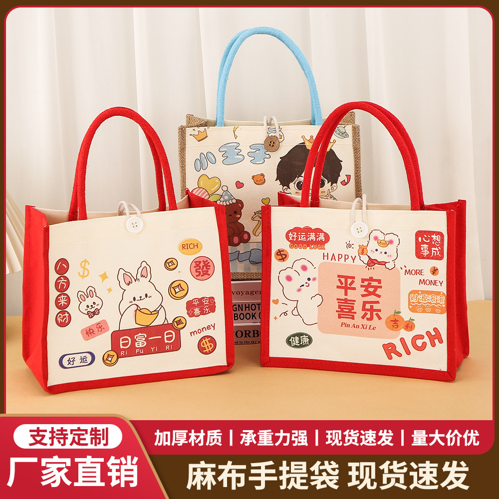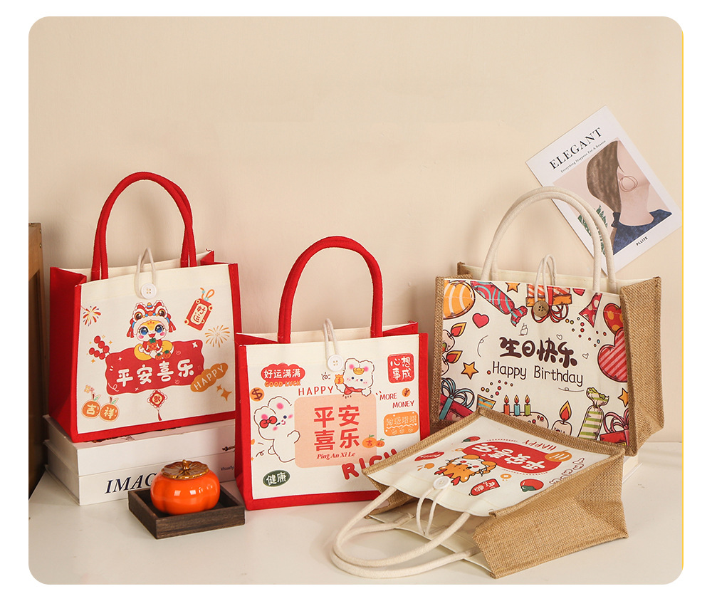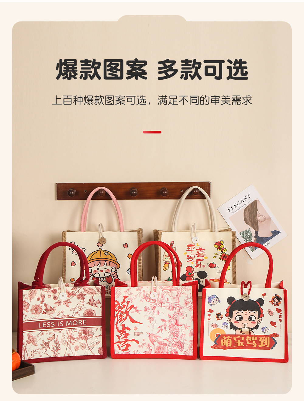 结婚伴手礼袋子麻布手提袋定制乔迁之喜麻布袋宝宝生日满月礼品袋